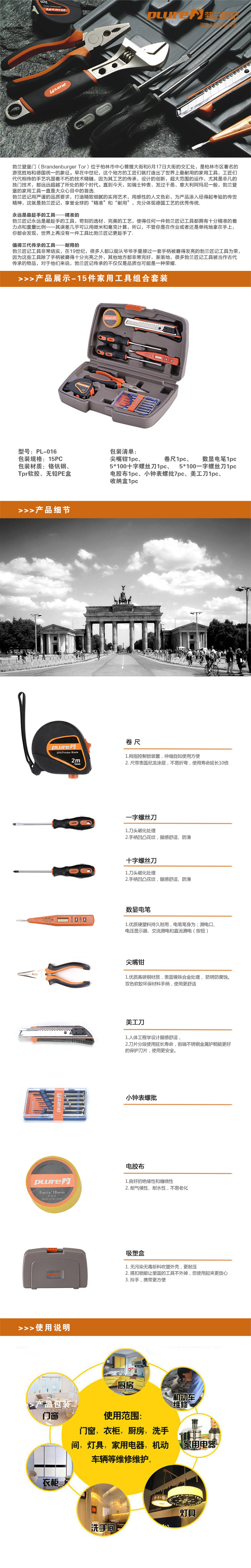 勃兰匠记plure15件家用工具组合PL-016
