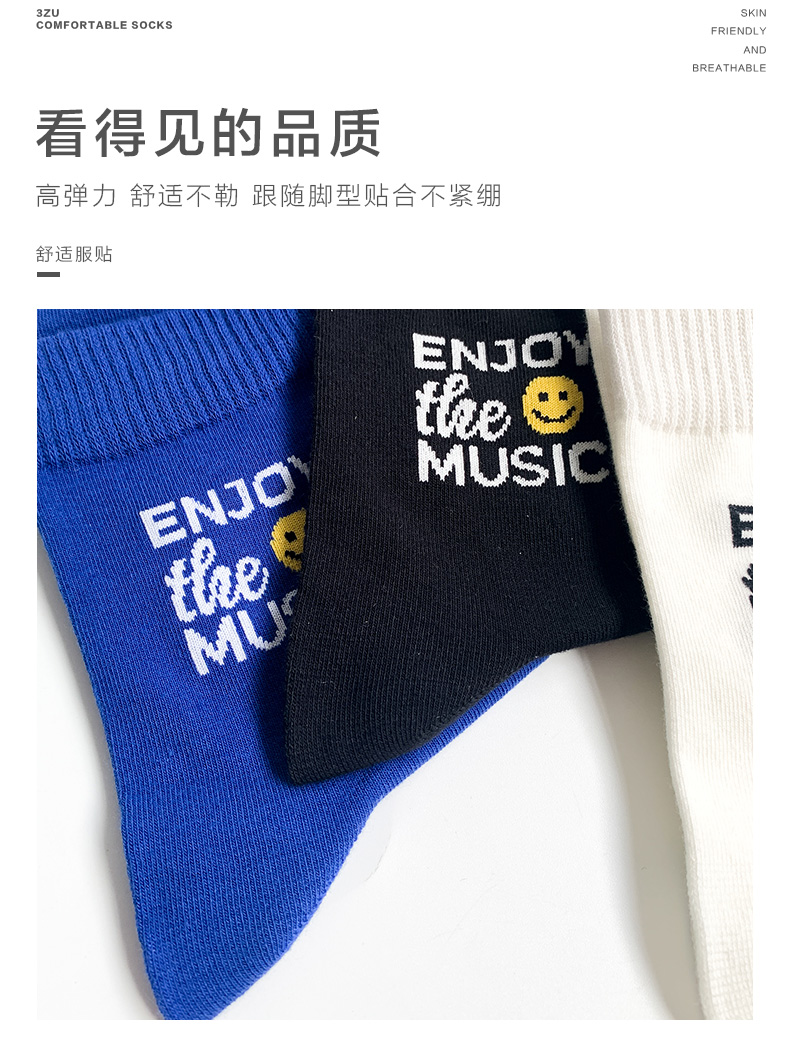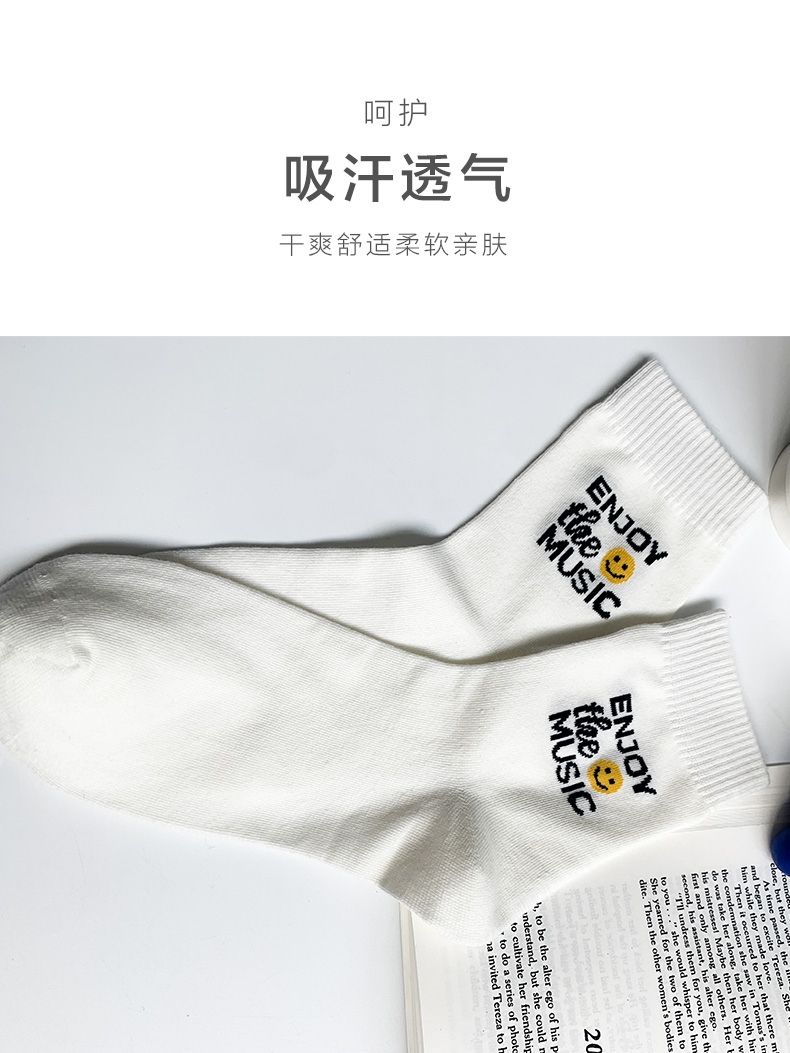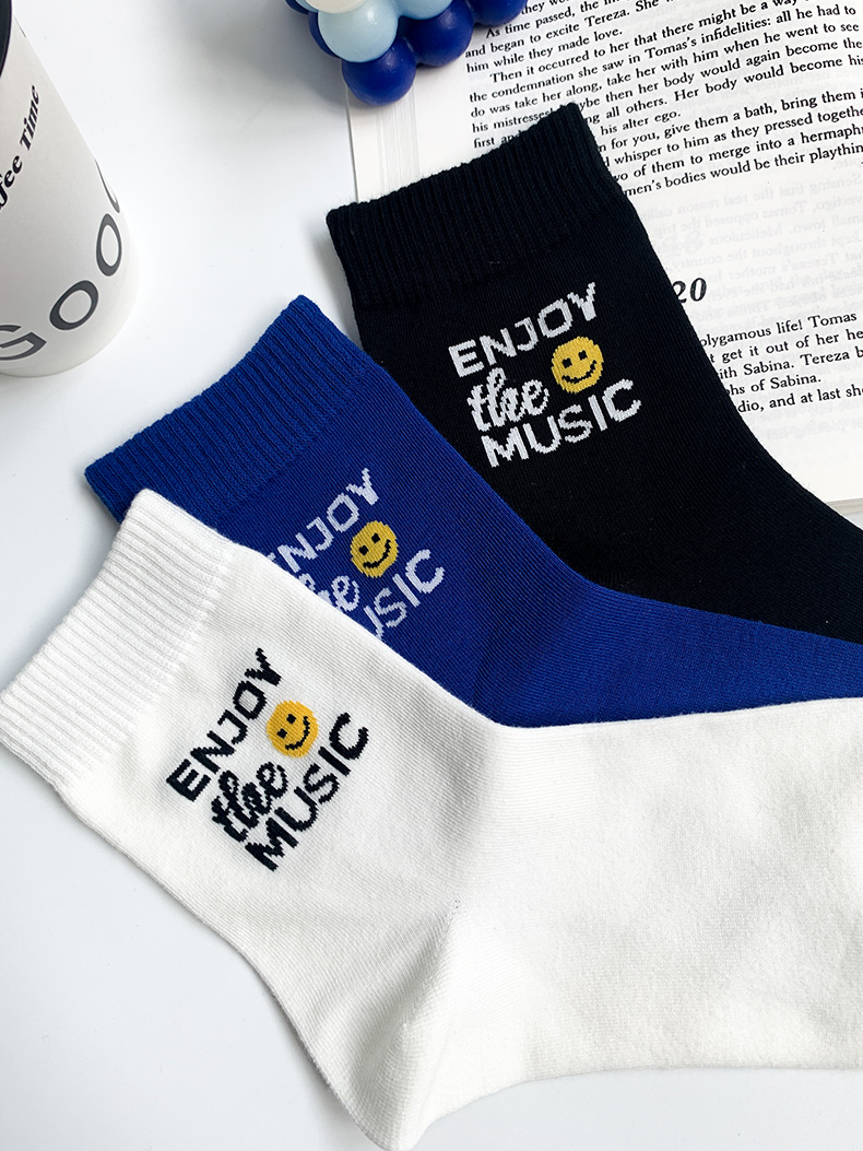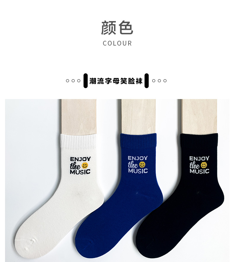 【任选6双99.5】秋冬学院风潮流秋冬精梳棉手工缝合字母笑脸提花运动潮流女袜