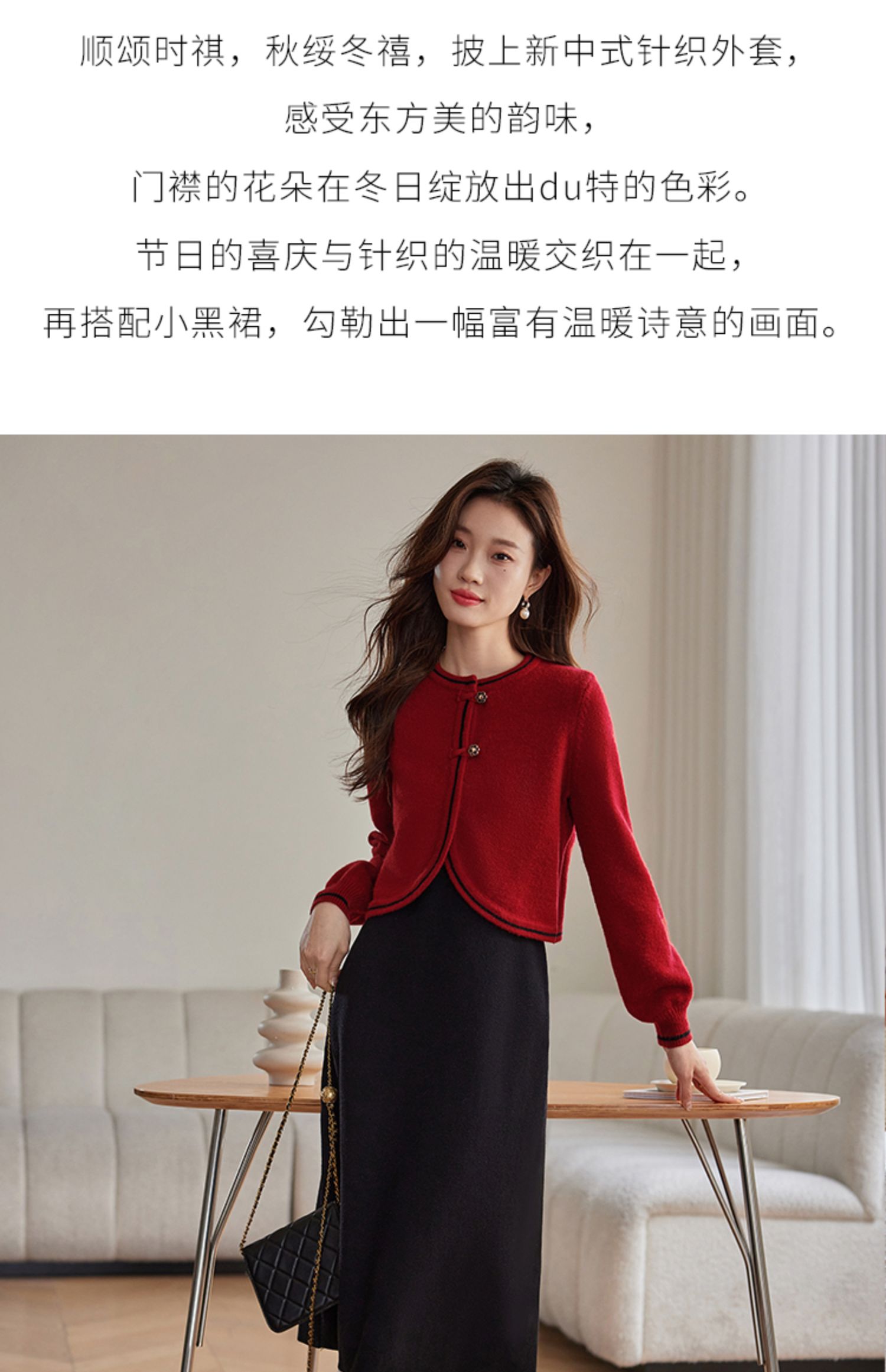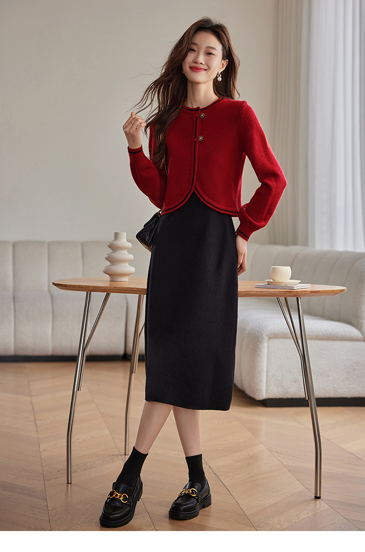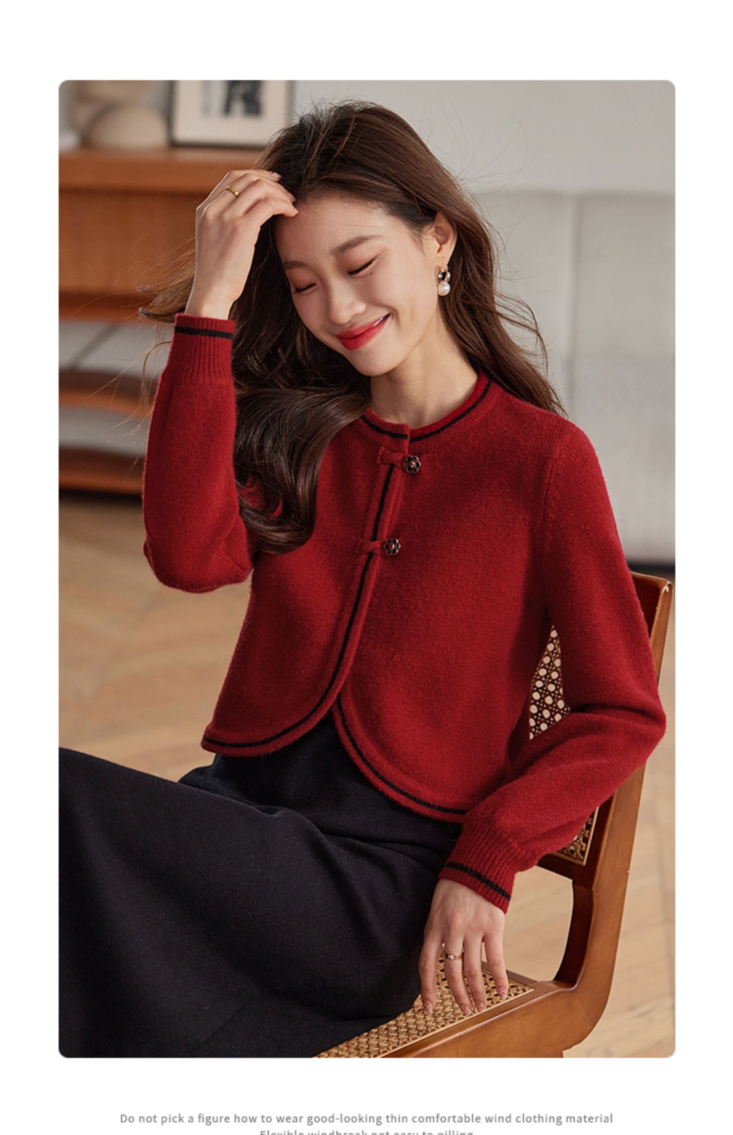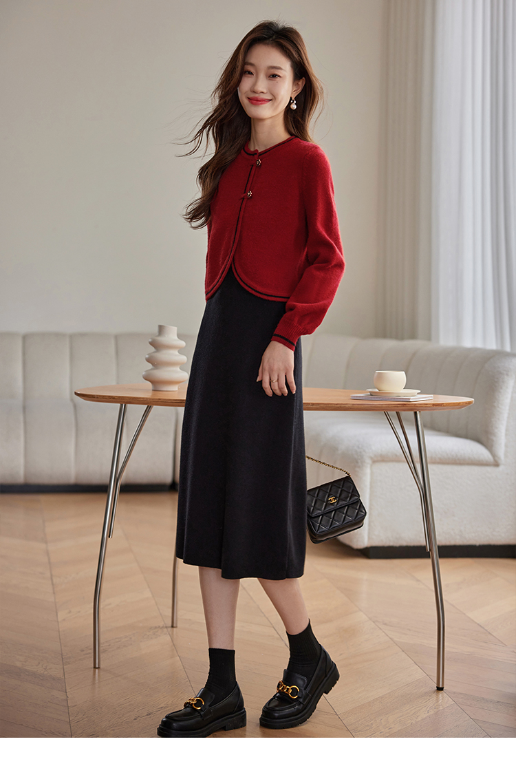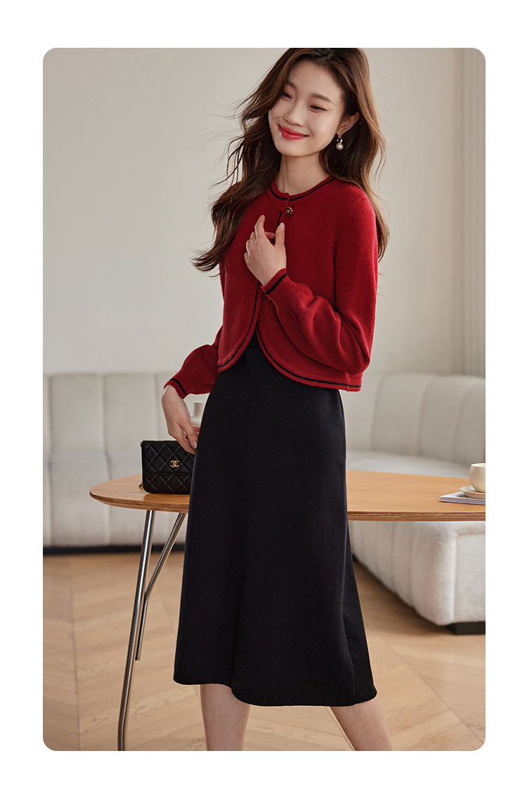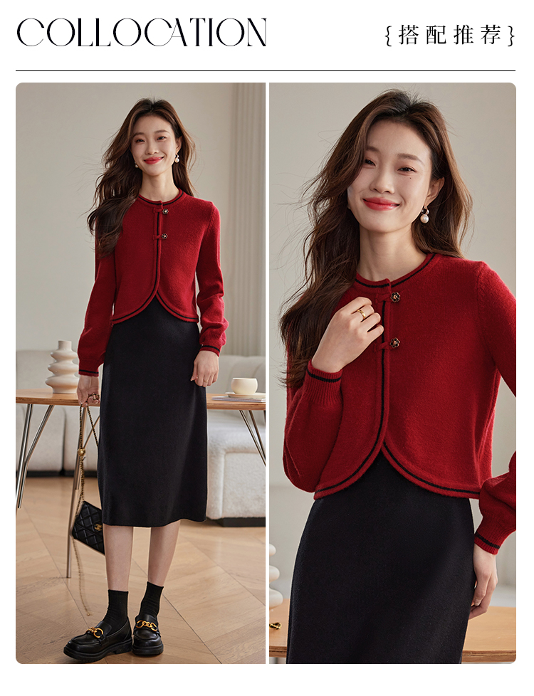 【专属特价】熙世界红色毛衣开衫女短外套新中式轻国风针织衫秋冬