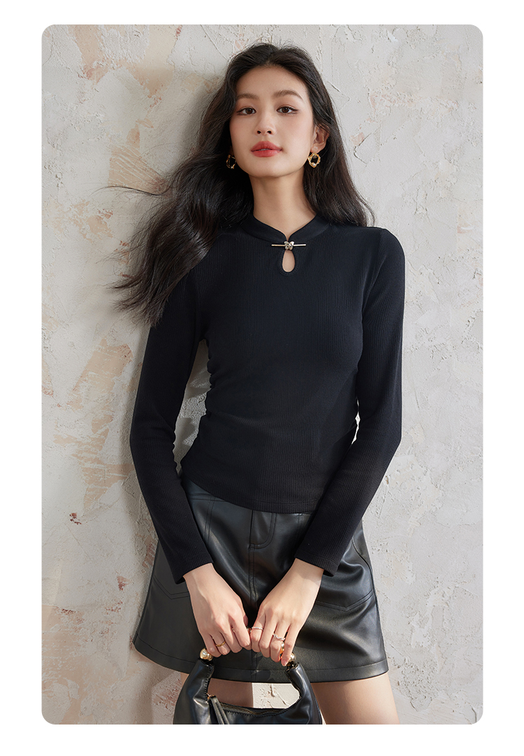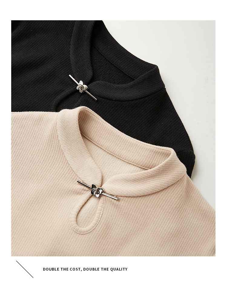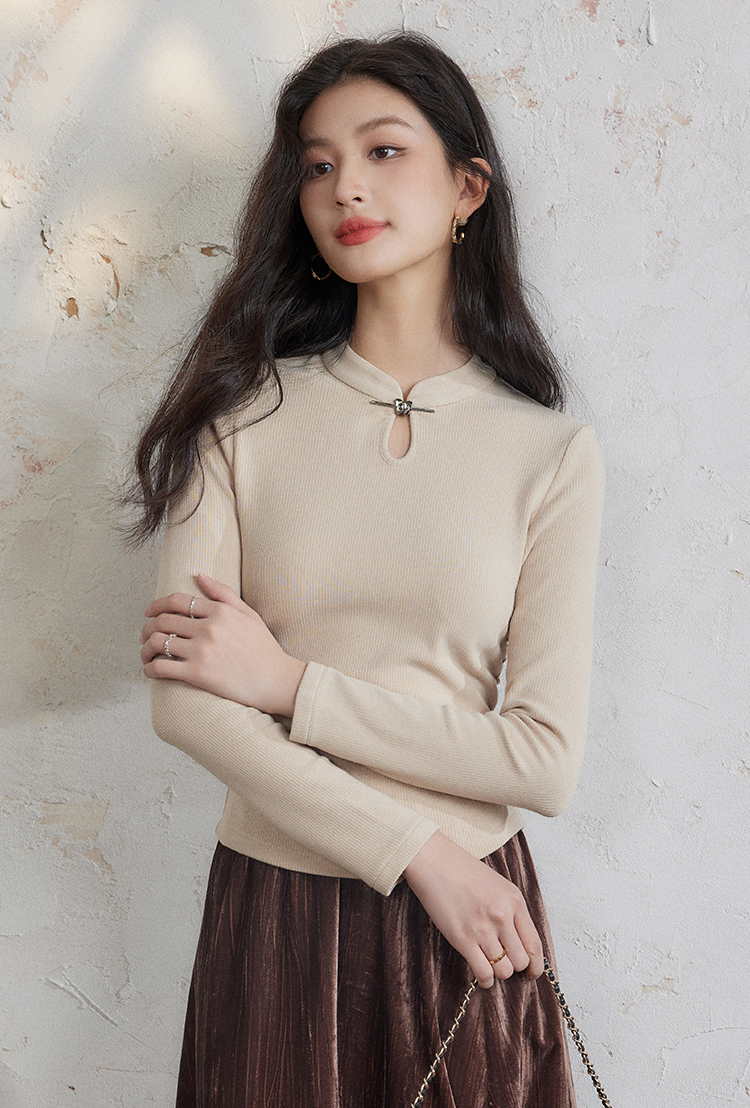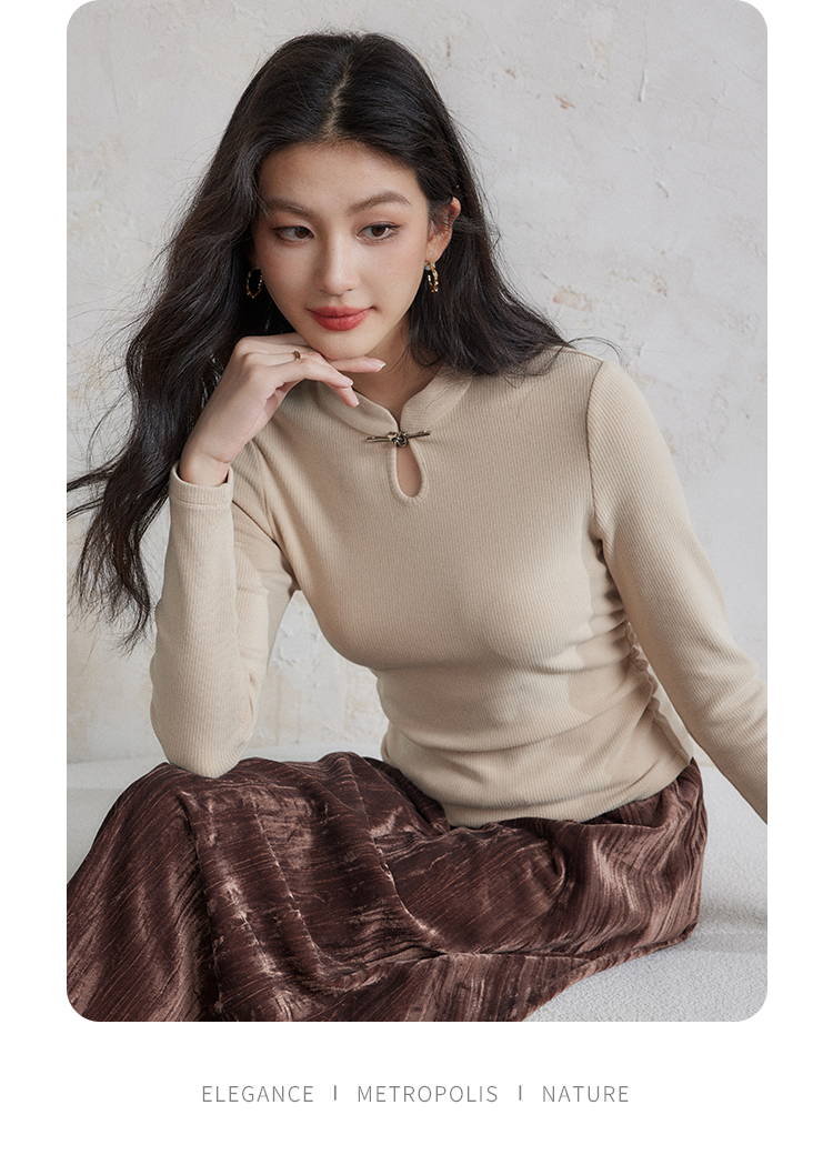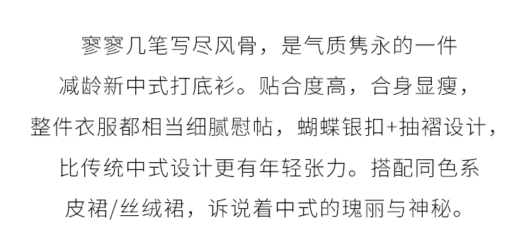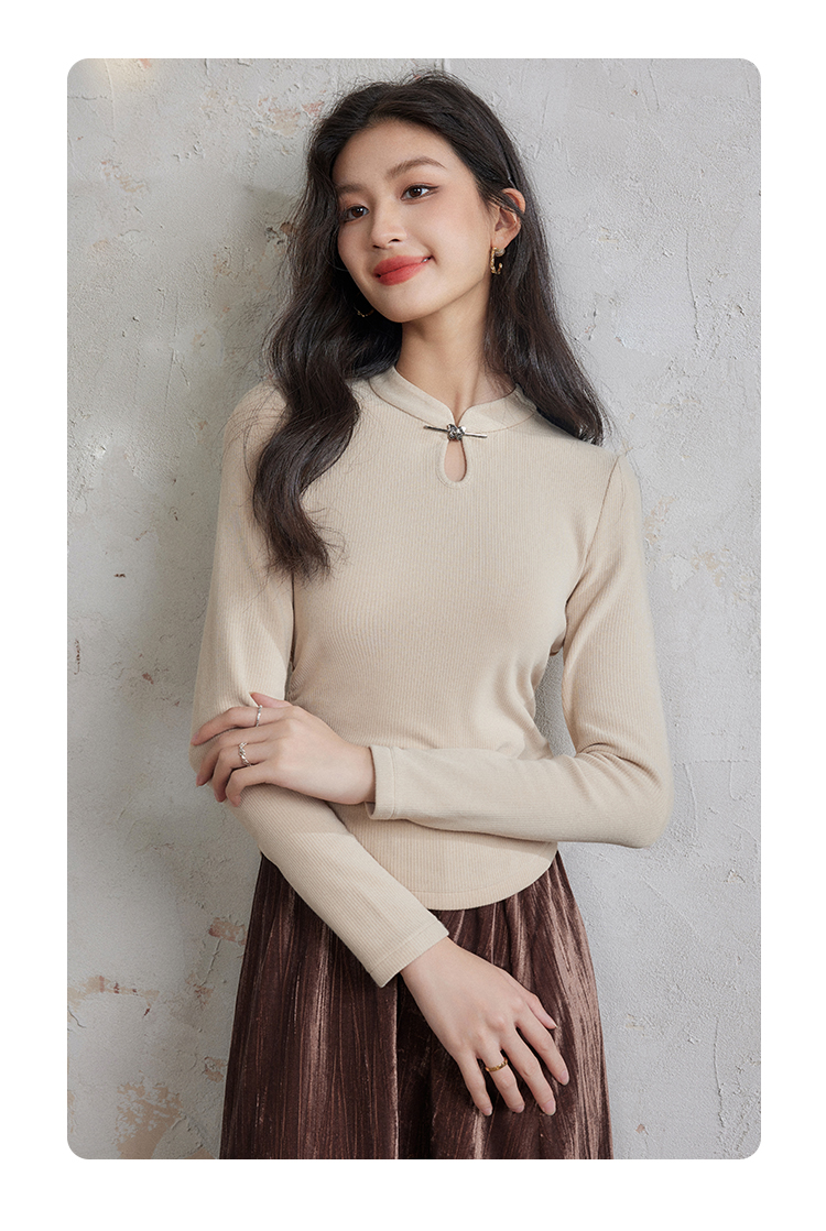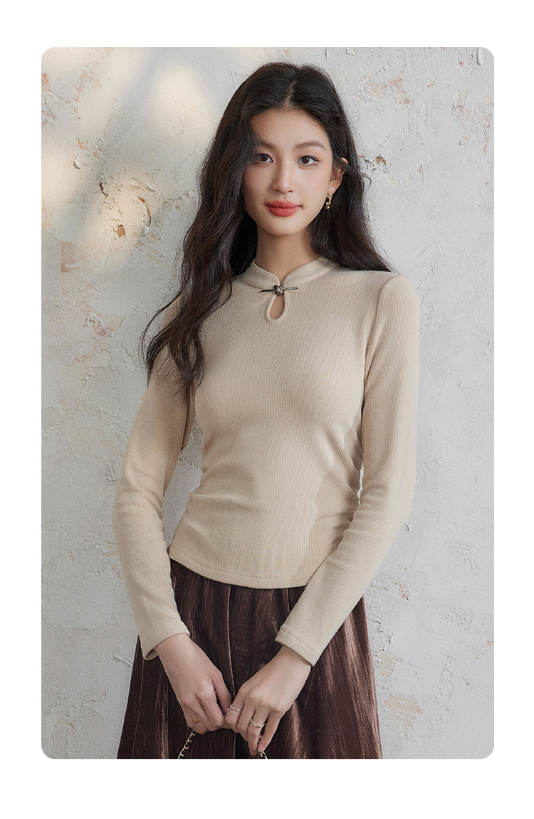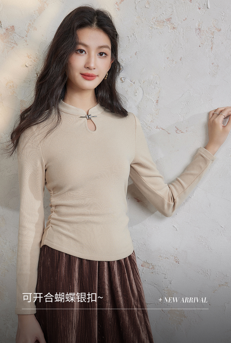 【年终特卖】熙世界新中式蝴蝶银扣磨绒针织打底衫女秋冬弹力内搭修身显瘦上衣