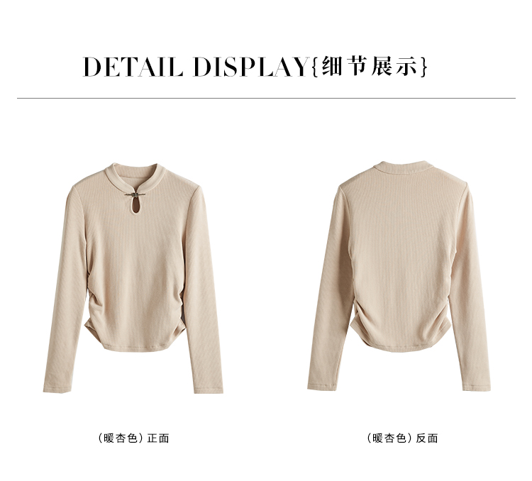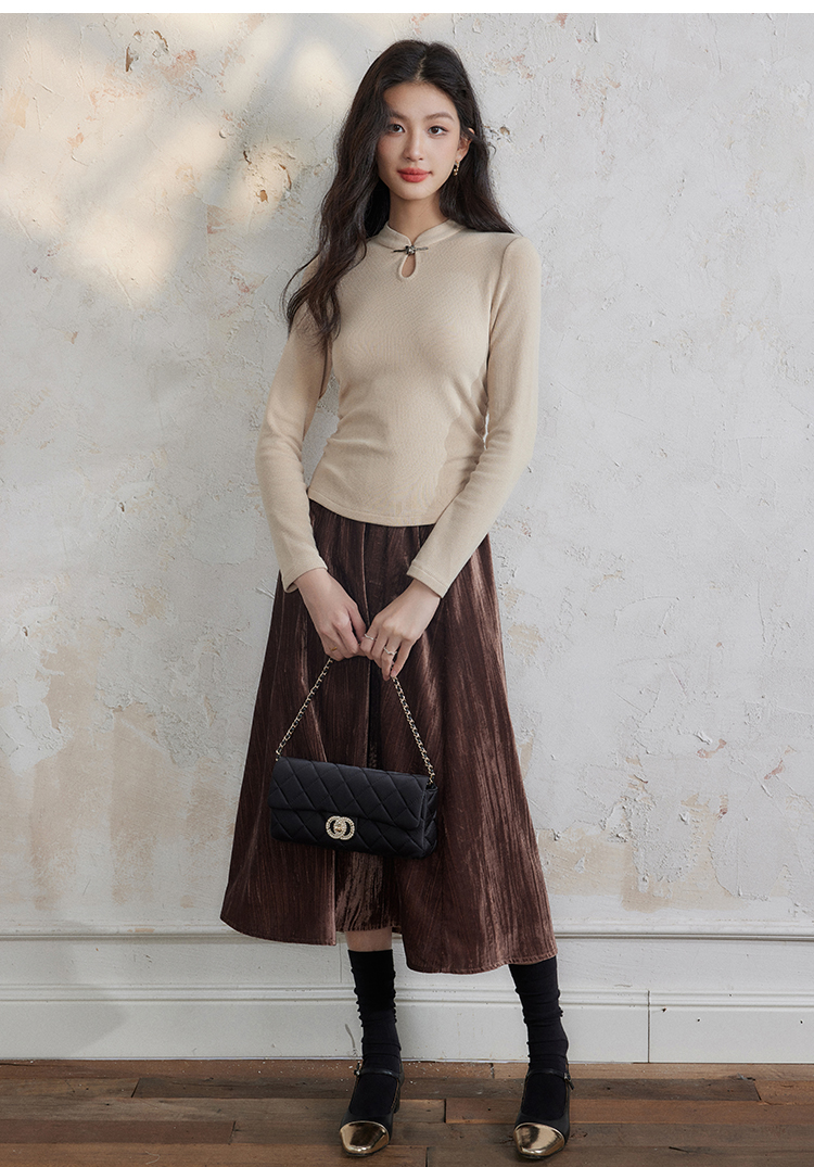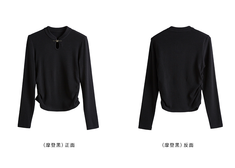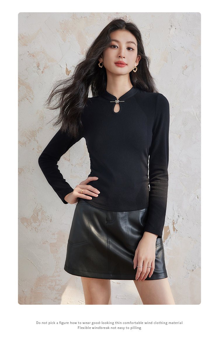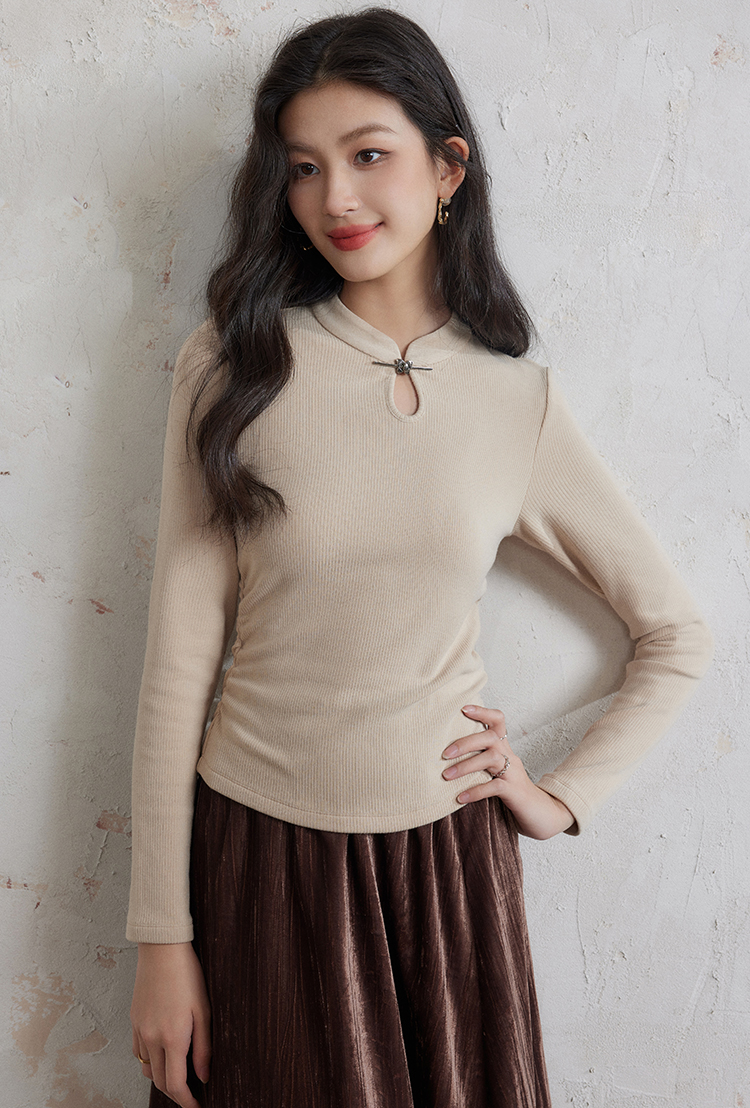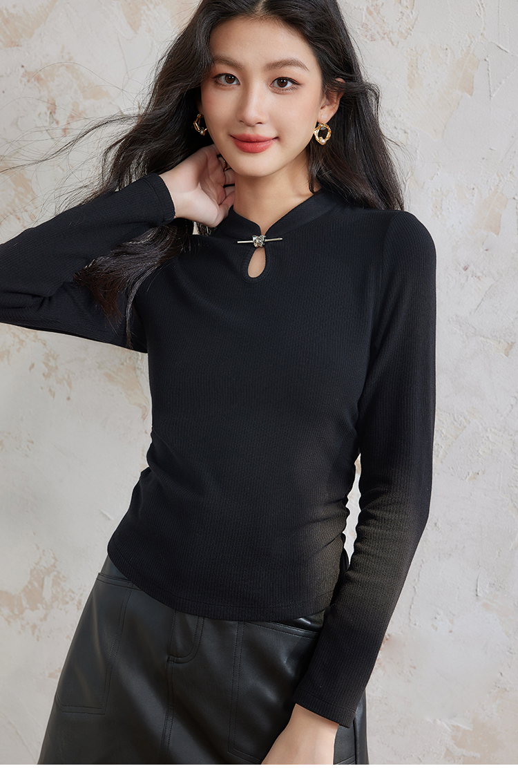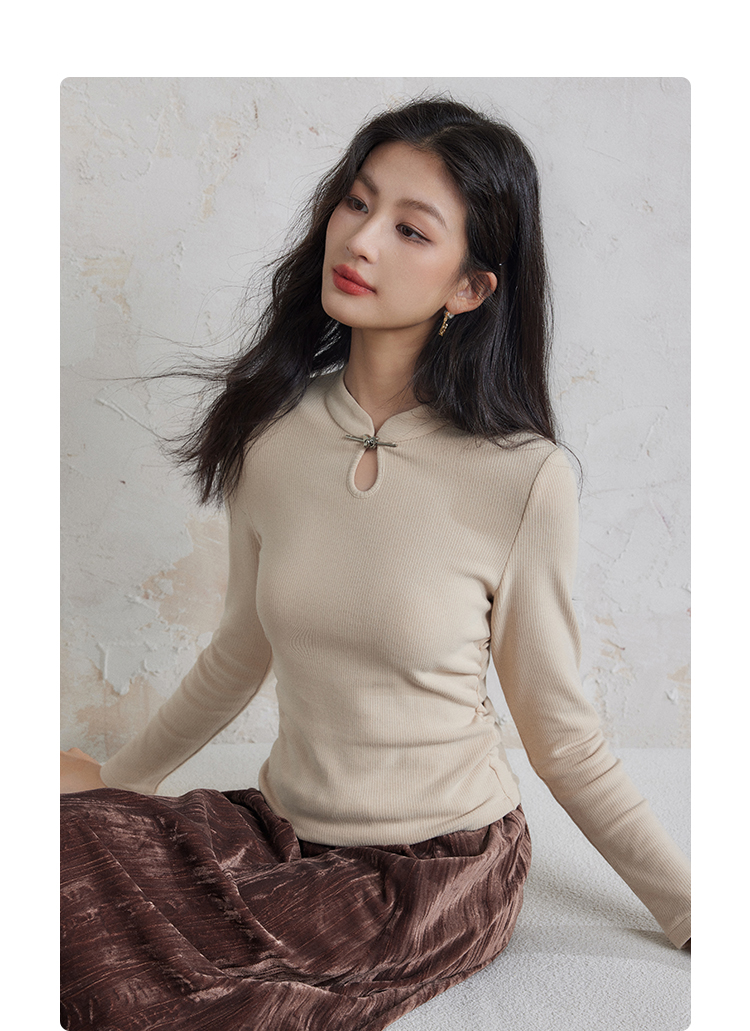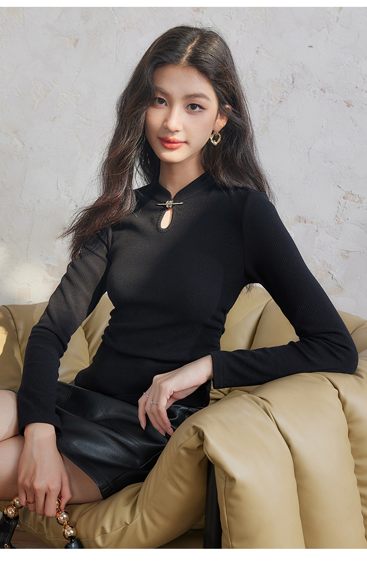【年终特卖】熙世界新中式蝴蝶银扣磨绒针织打底衫女秋冬弹力内搭修身显瘦上衣