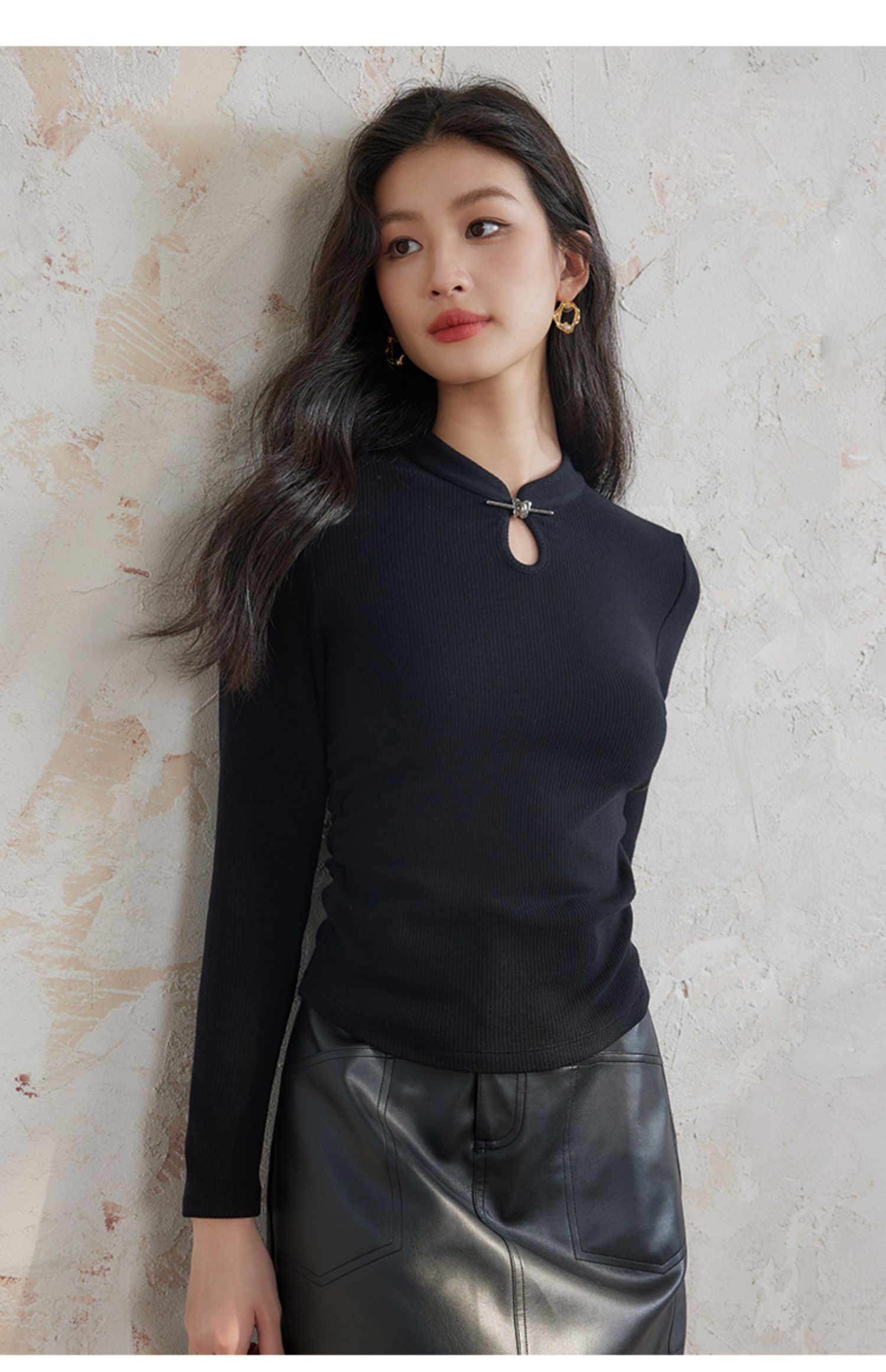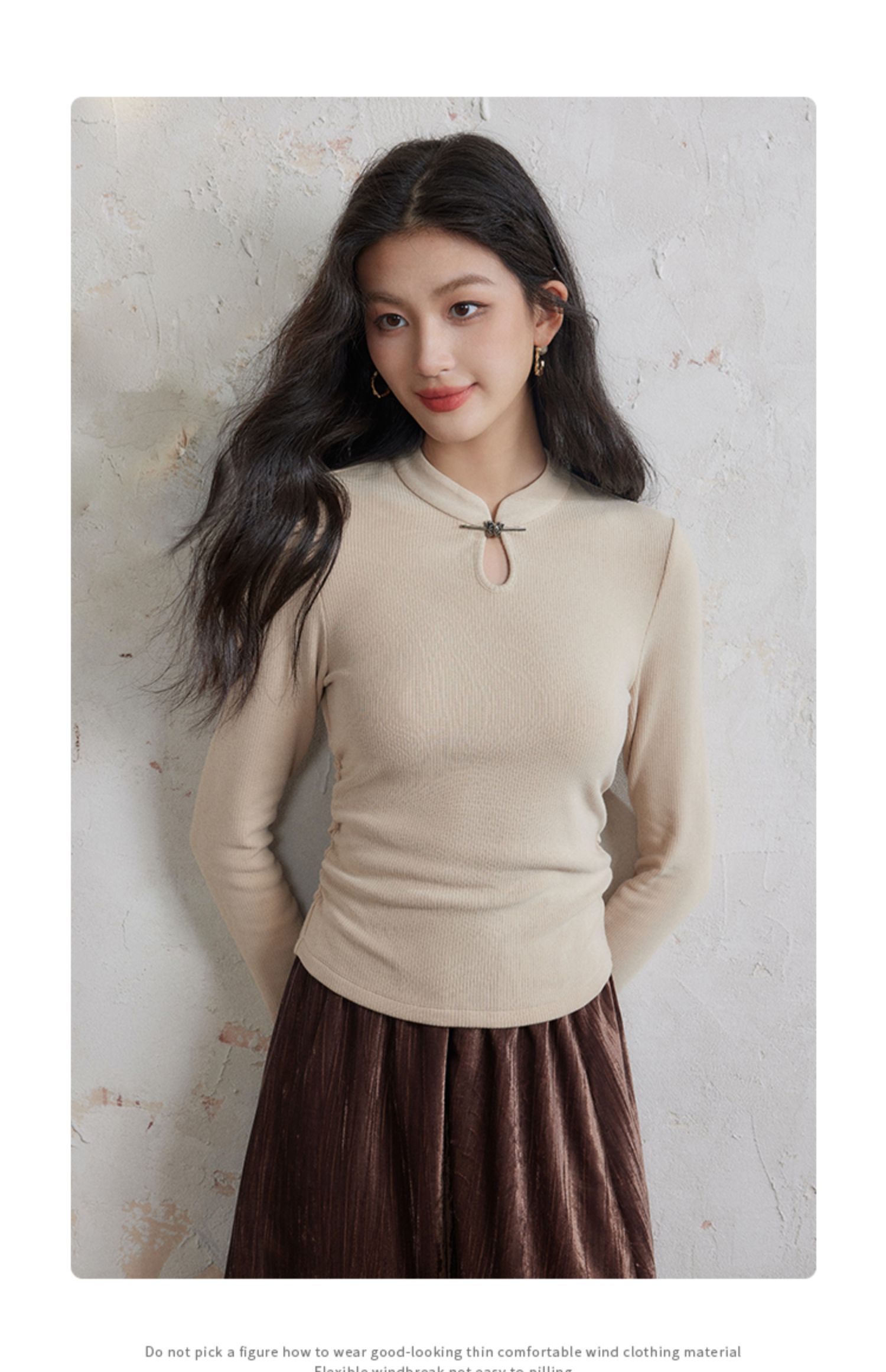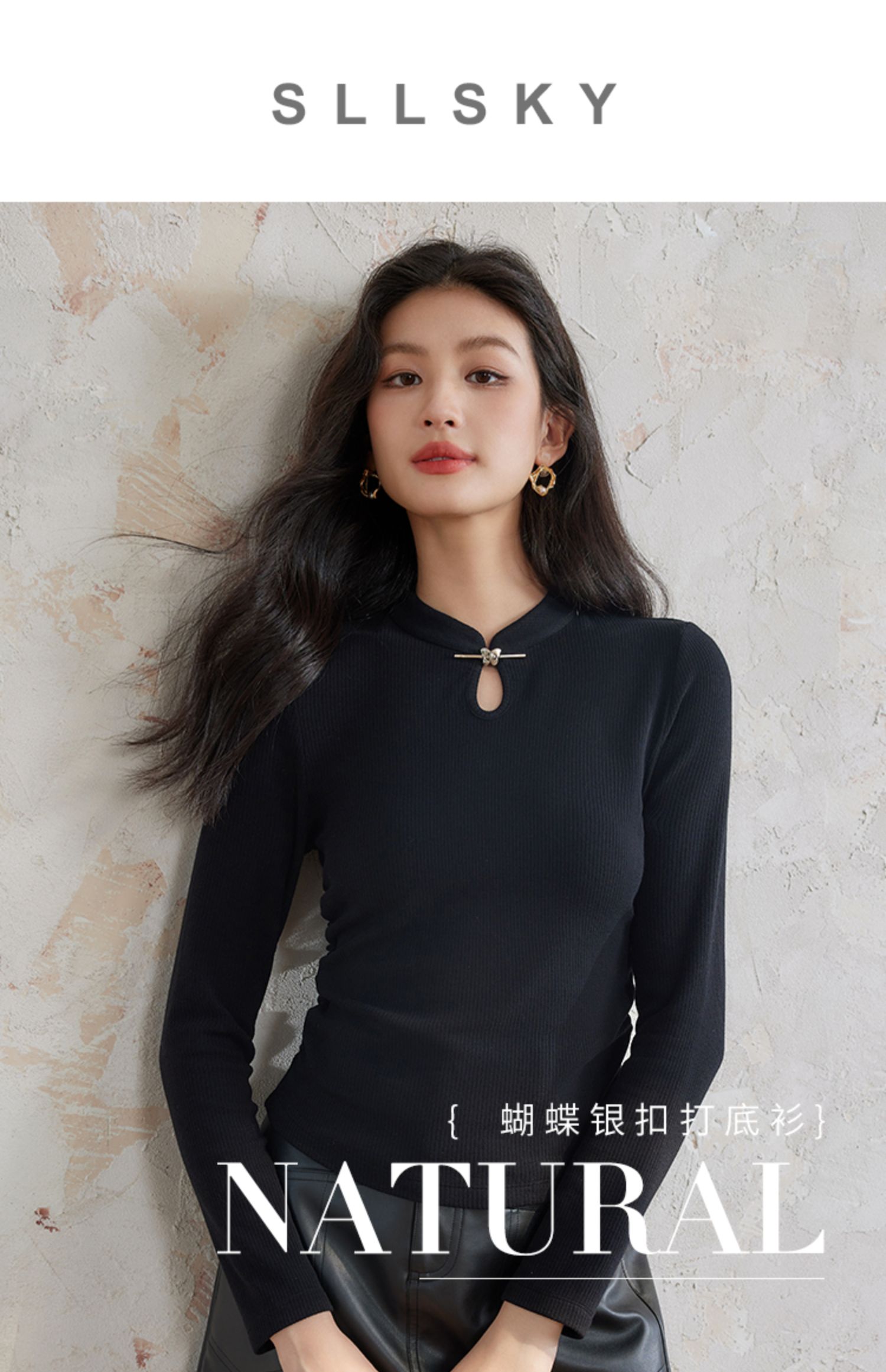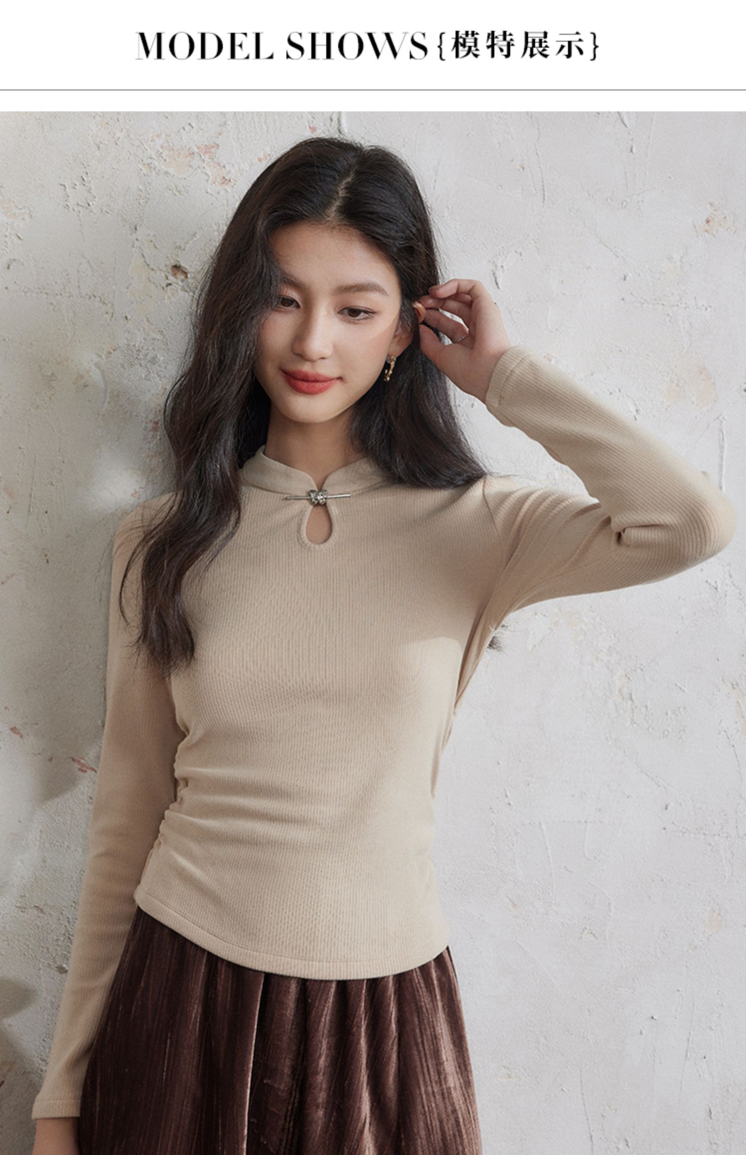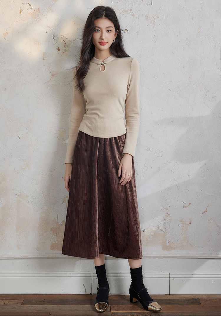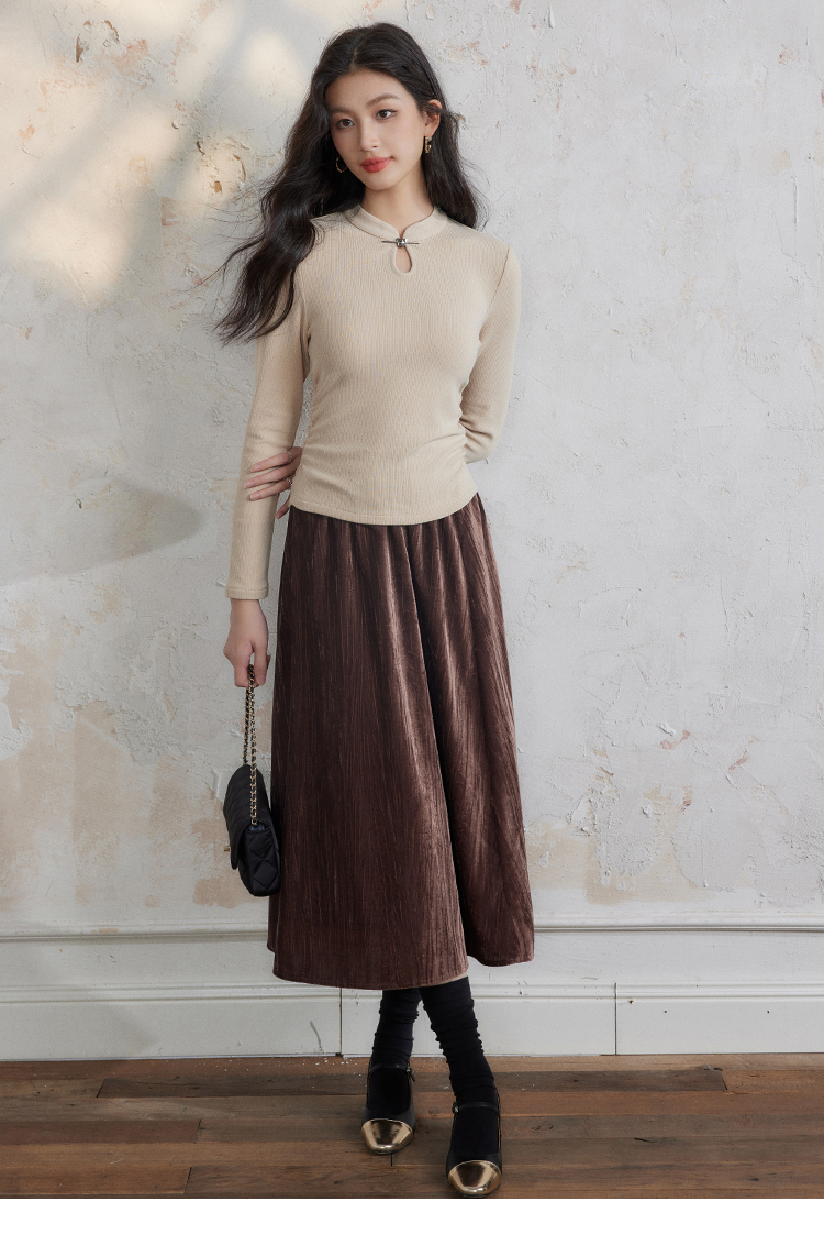 【年终特卖】熙世界新中式蝴蝶银扣磨绒针织打底衫女秋冬弹力内搭修身显瘦上衣