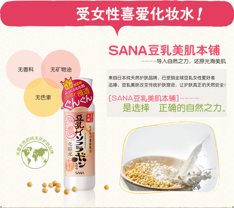 日本SANA/莎娜豆乳美肤浓润化妆水200ml爽肤水滋润保湿补水柔嫩