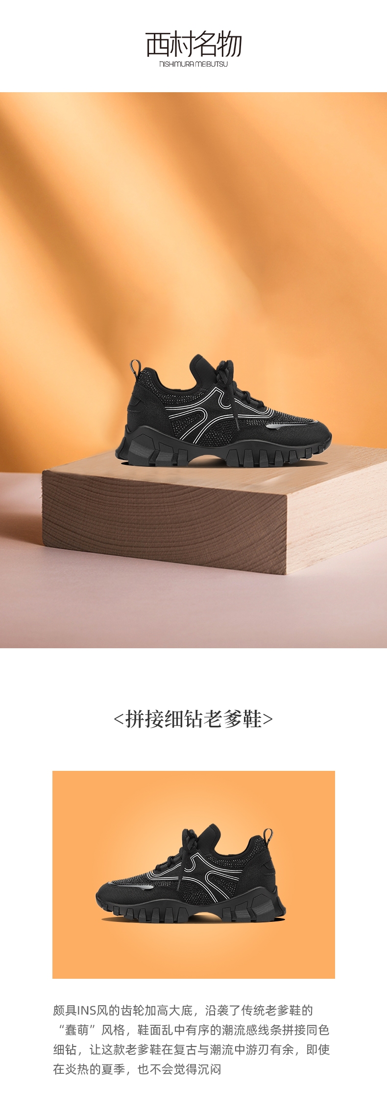 西村名物2021秋季新款时尚潮流运动风厚底老爹鞋女休闲鞋X21CM32971