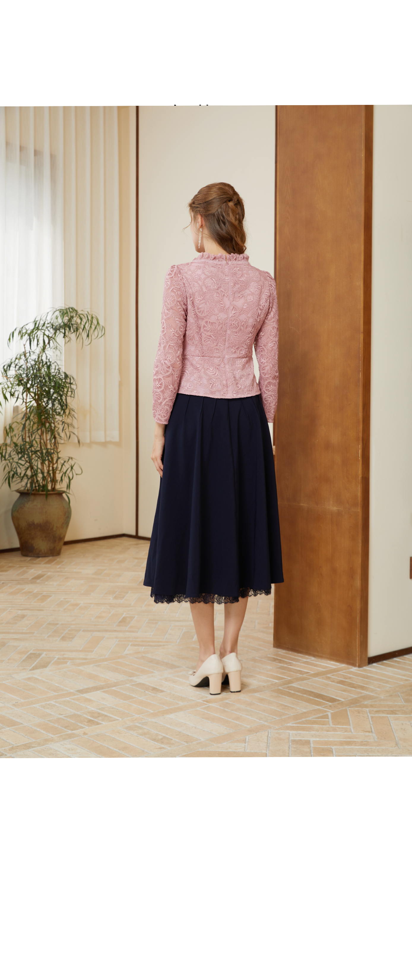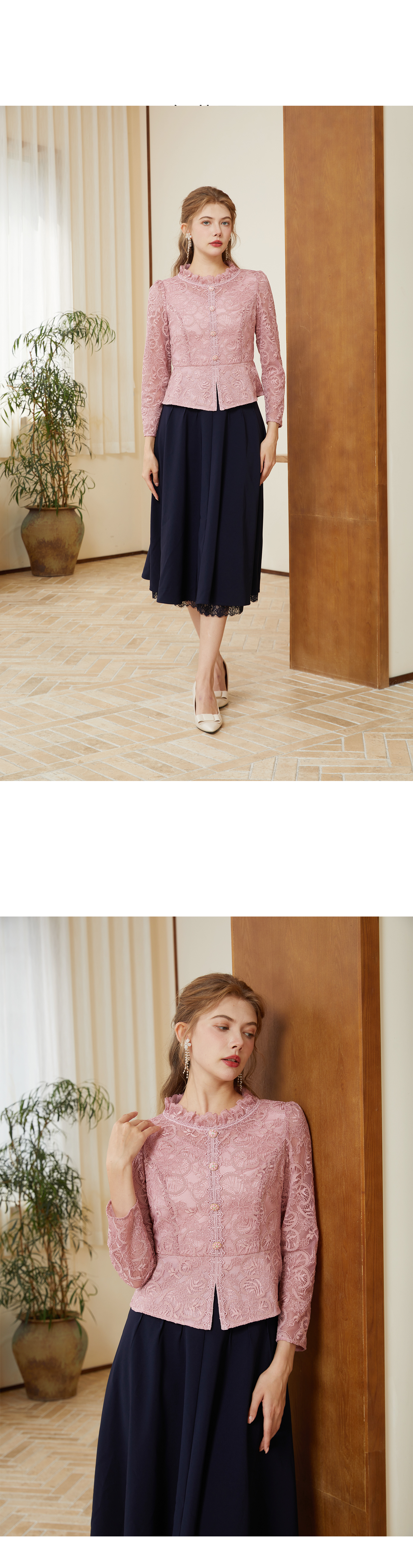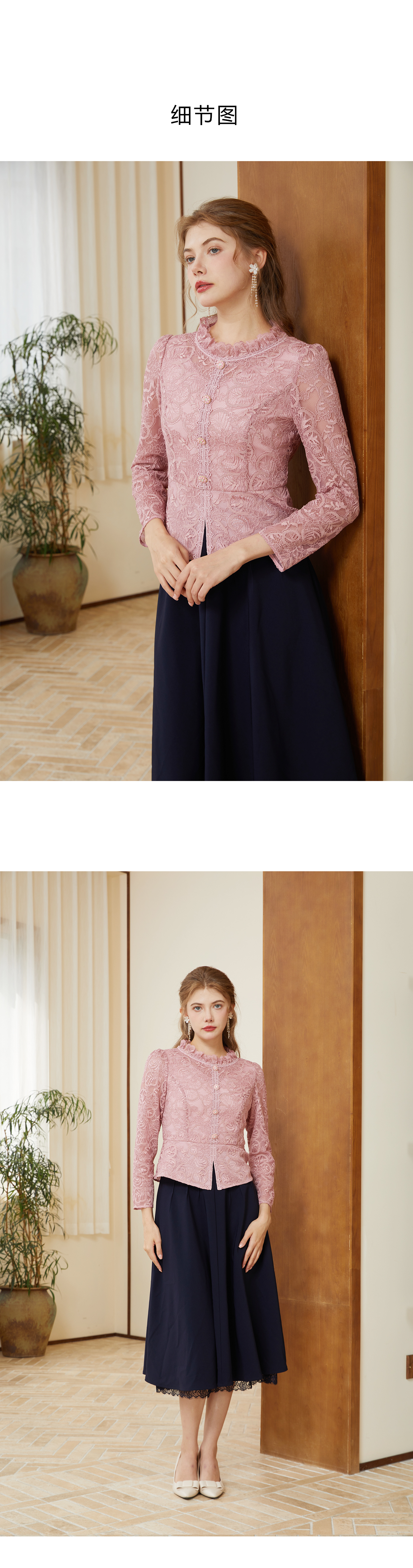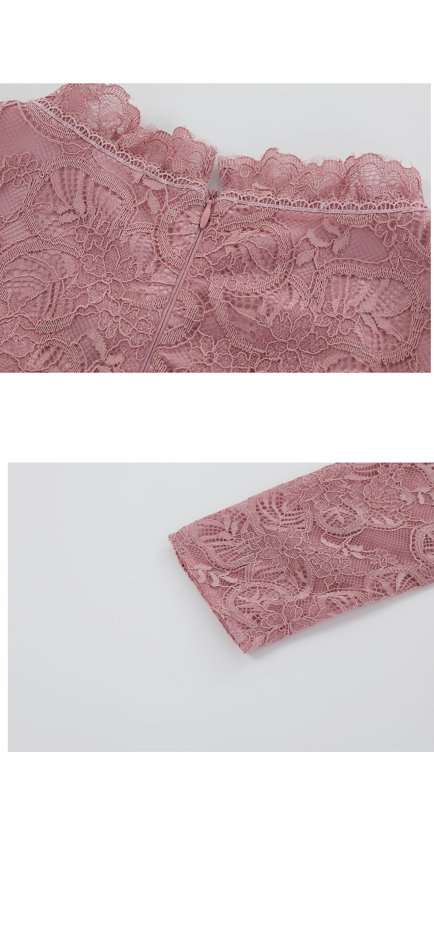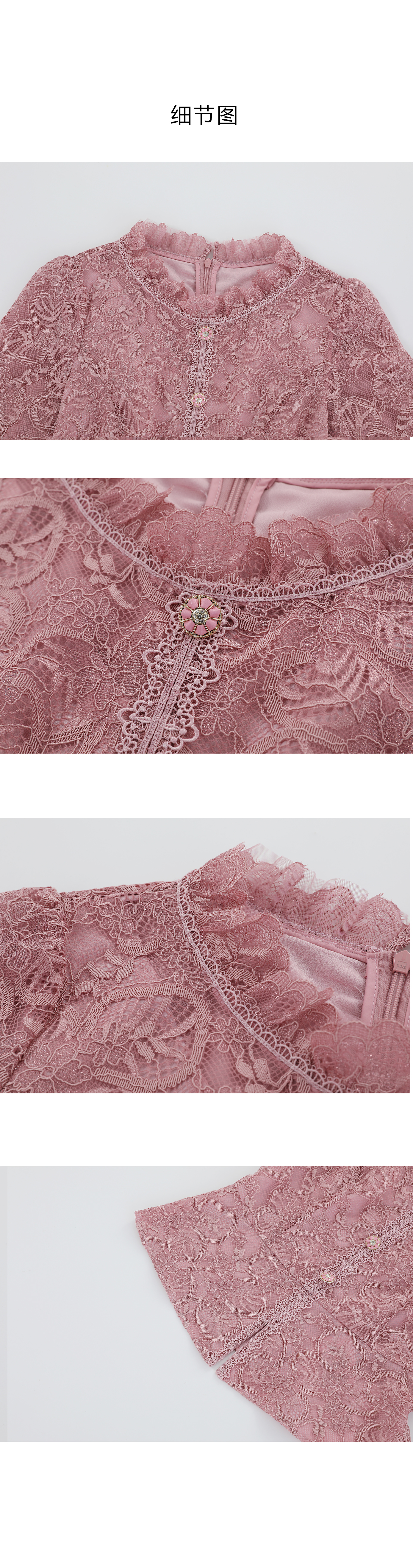 司歌刺绣连衣裙圆领网纱长袖弹力修身A881268