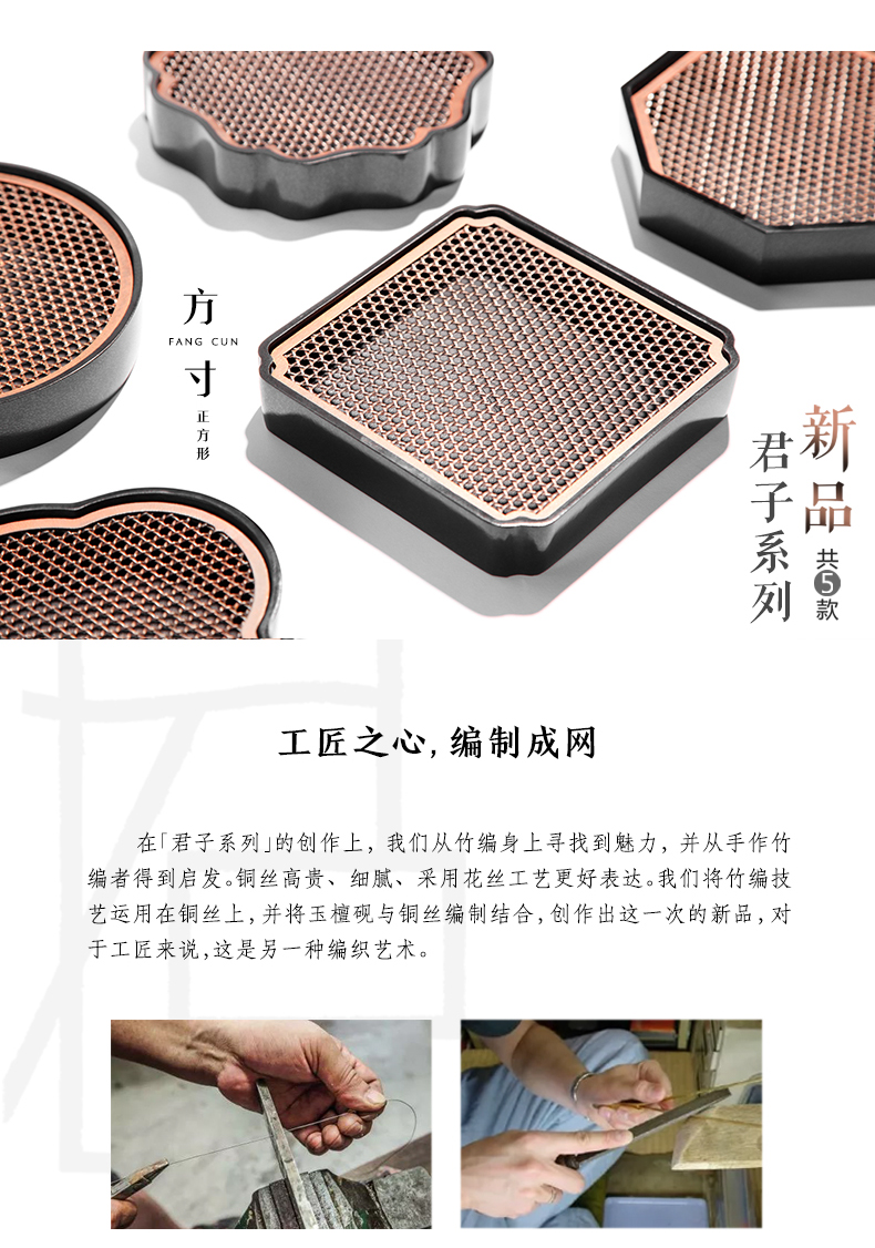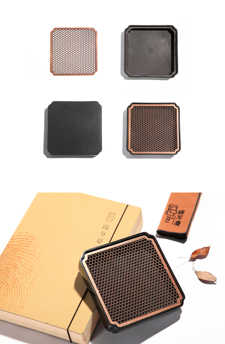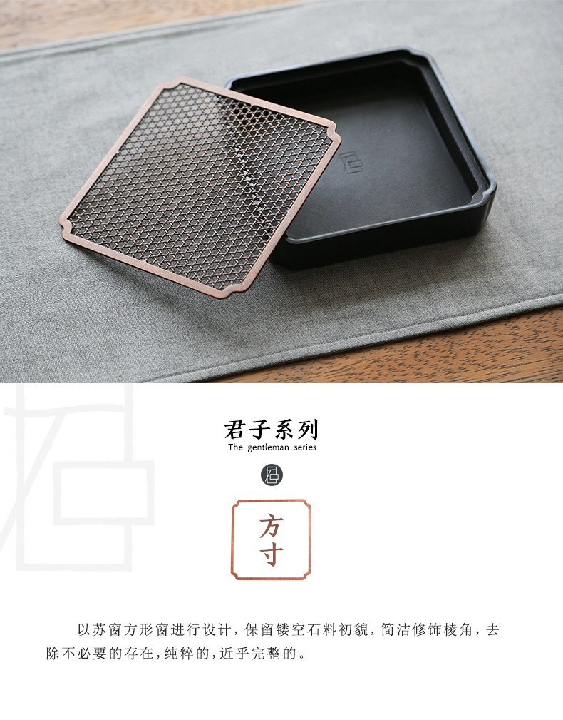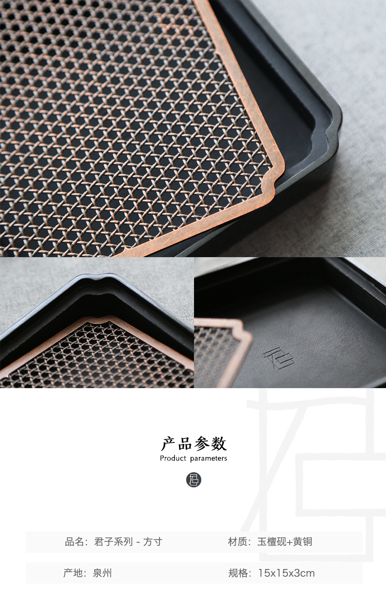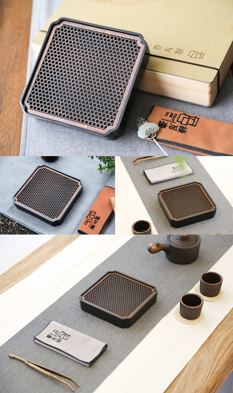 缘石台/君子系列/方寸 手编铜+玉檀砚 茶盘干泡台壶承