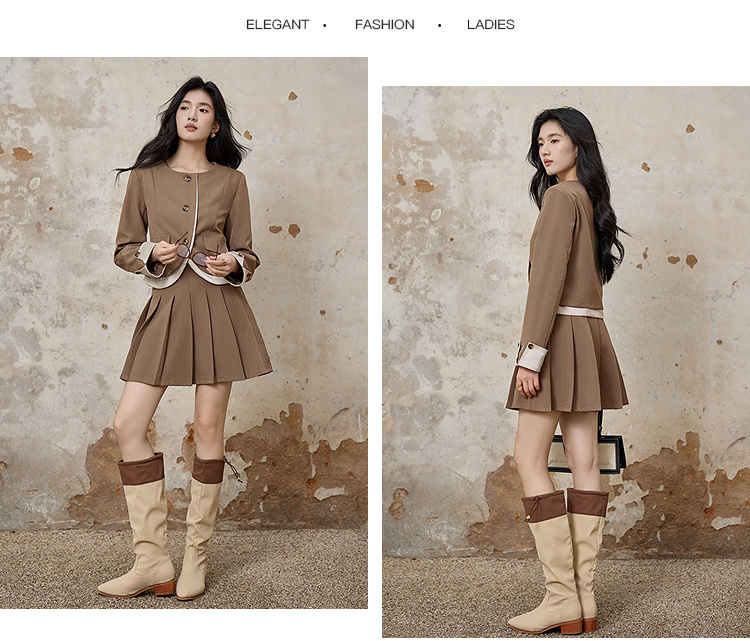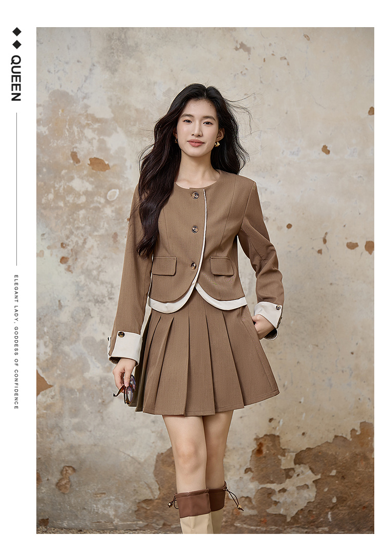 奢姿大码女装2025秋季时尚撞色边饰圆领两件套胖妹妹气质减龄套装9953935190AB