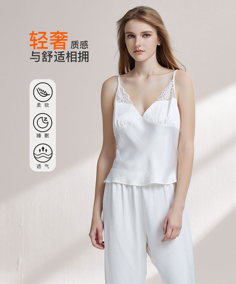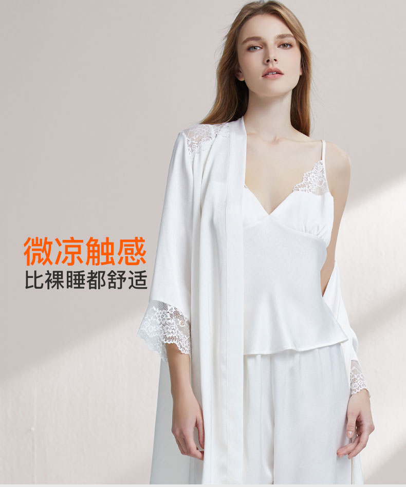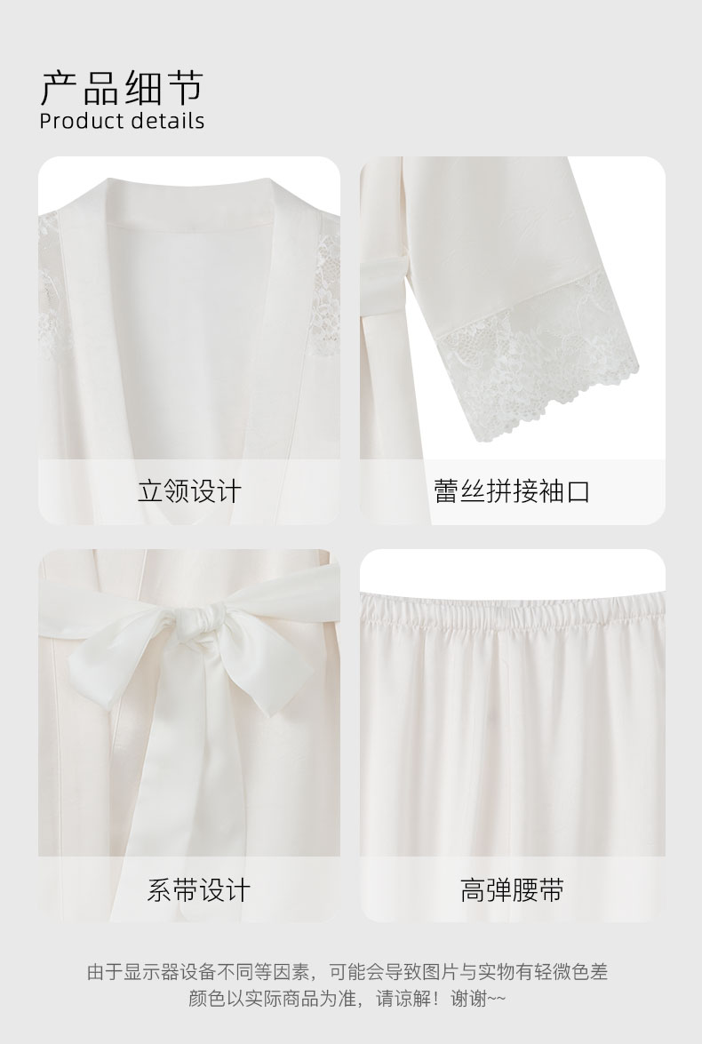 【7.5折限时特惠】【秀黛】女丝质长袖三件套装仿丝光泽花肌理蕾丝重工浪漫奢华女士春秋睡衣家居服W1551028T【门店同款】