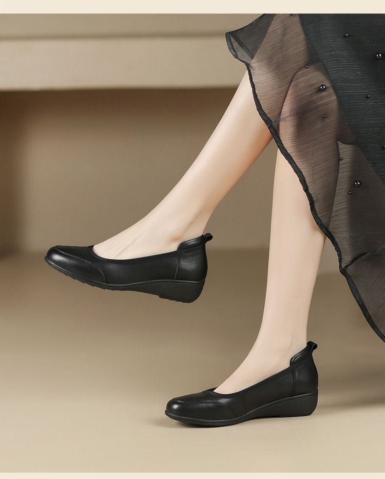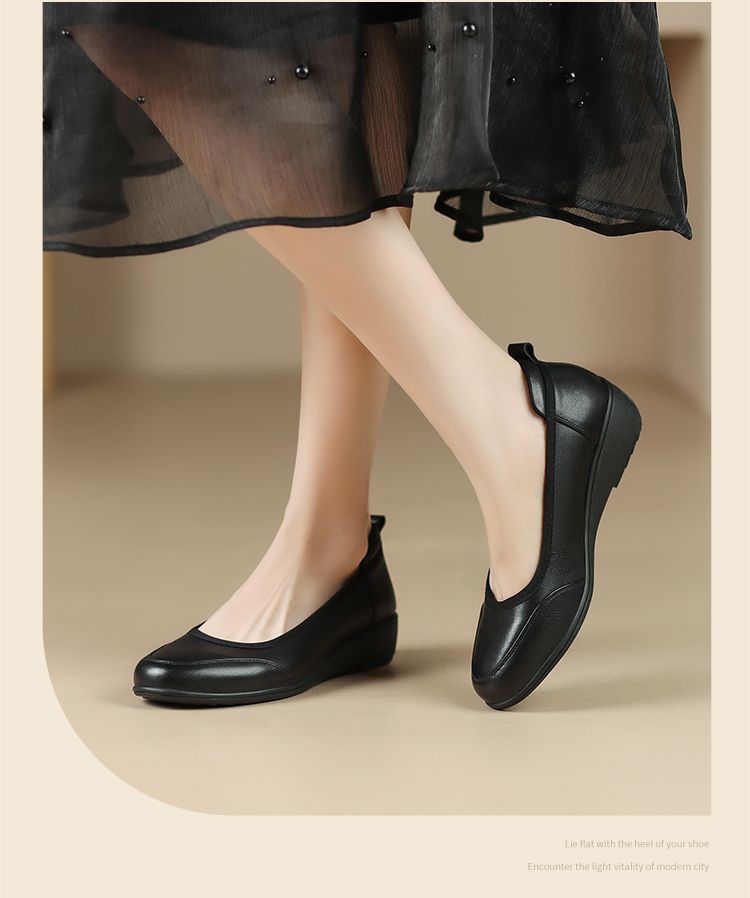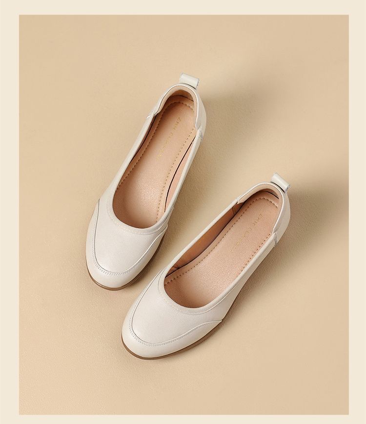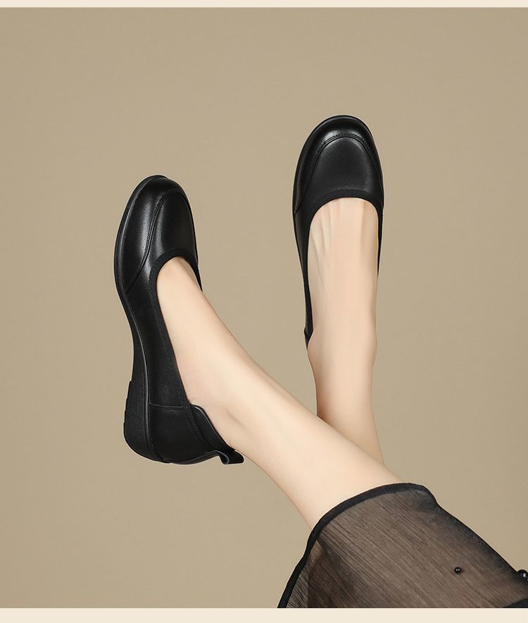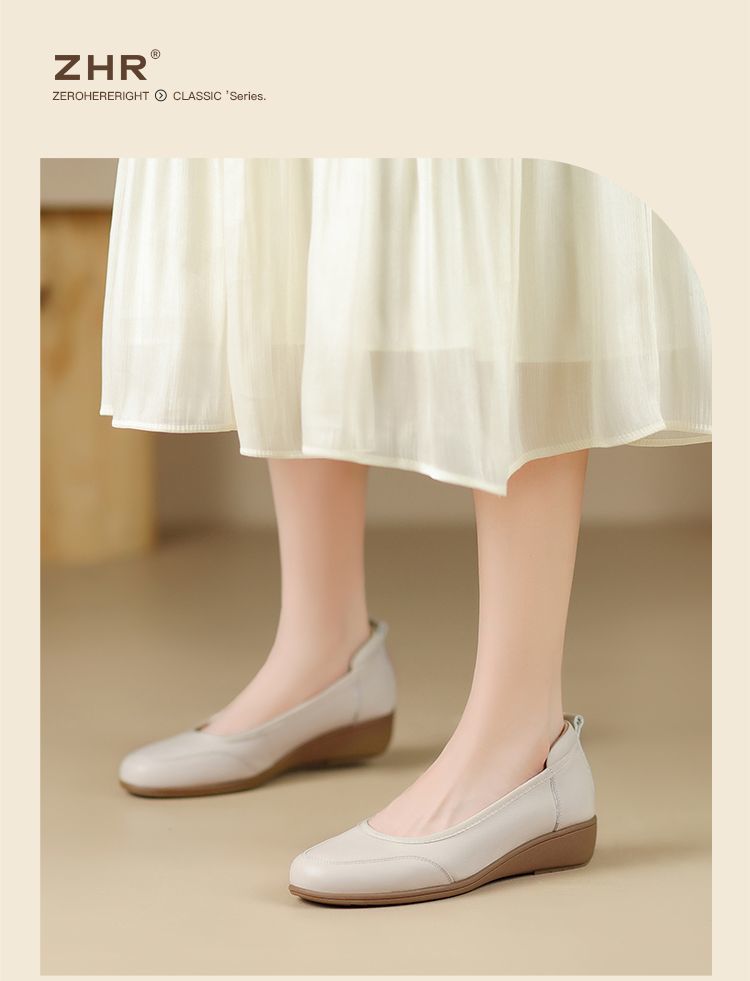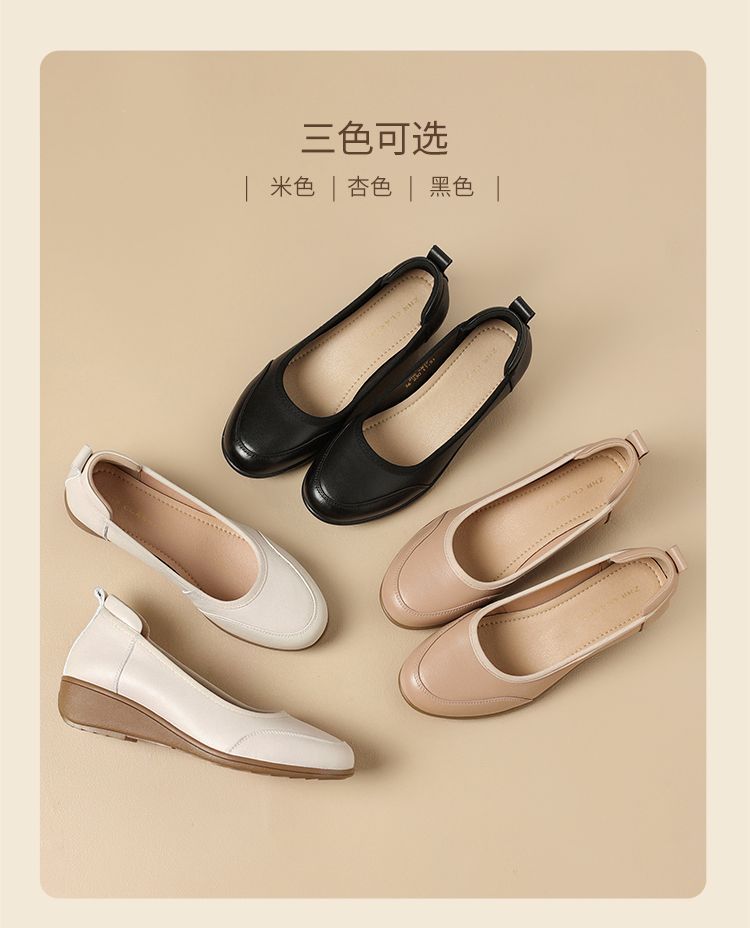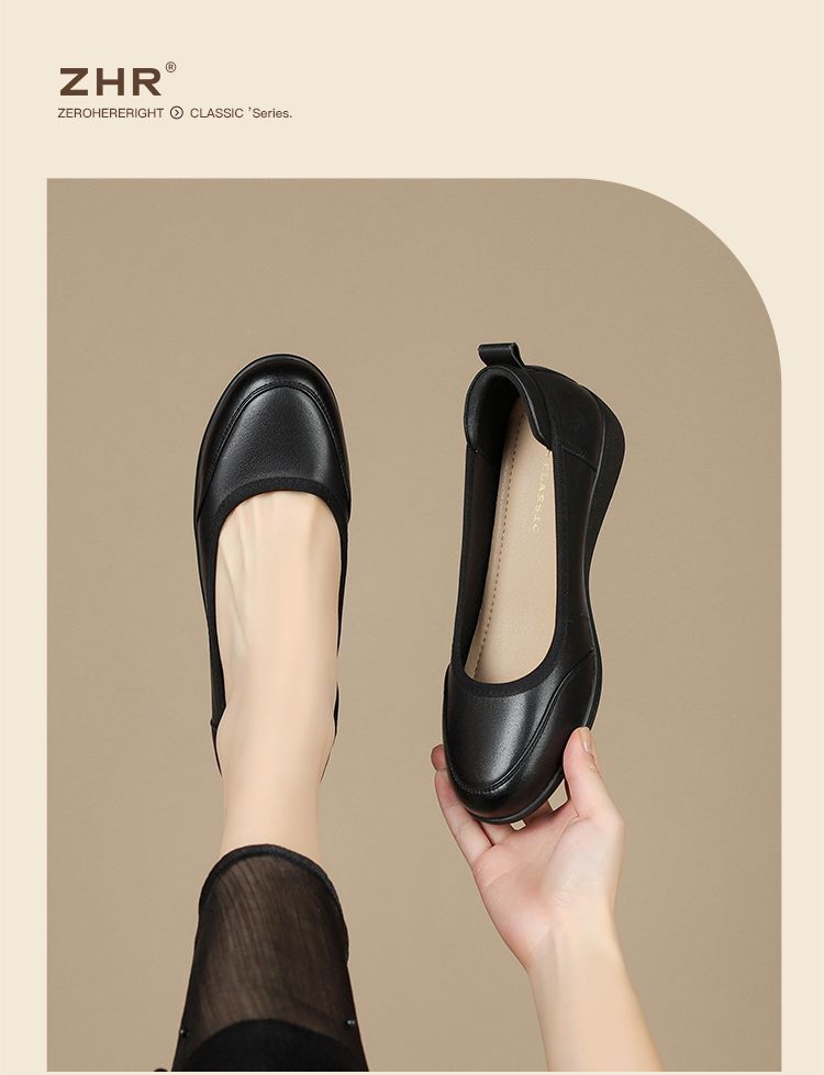 ZHR则则头层牛皮浅口单鞋软底一脚蹬妈妈单鞋真皮黑色小皮鞋通勤