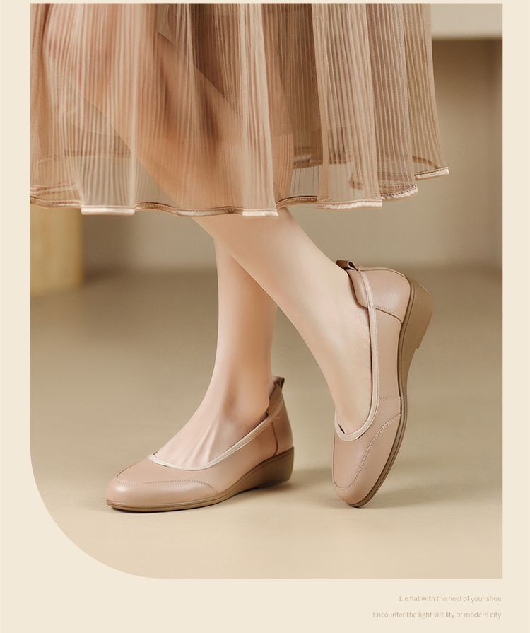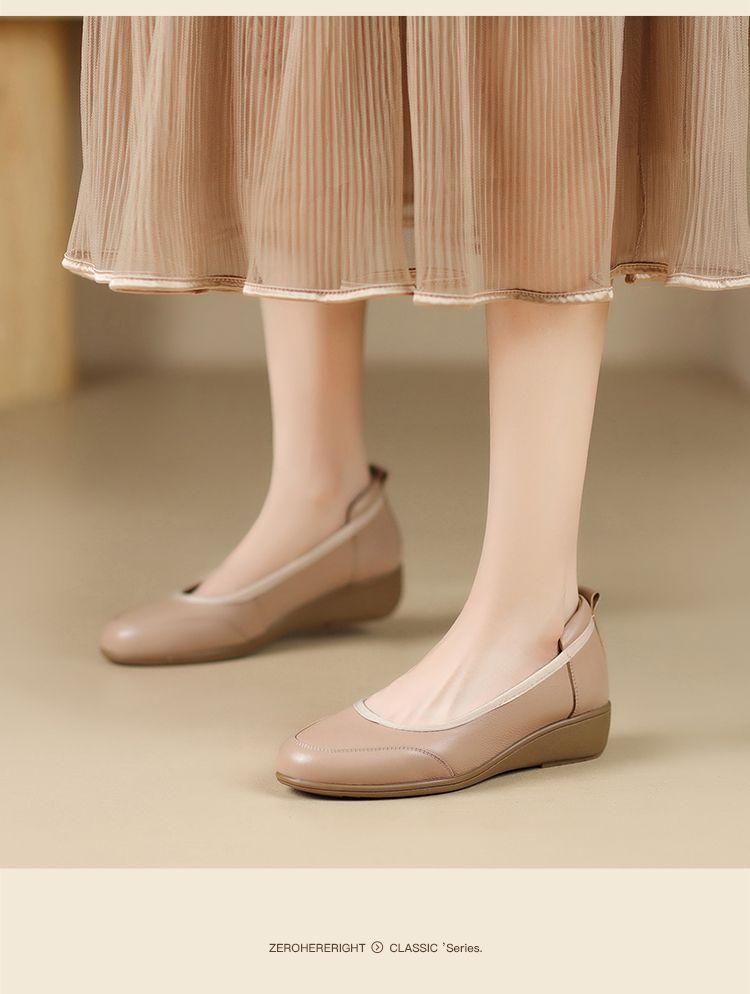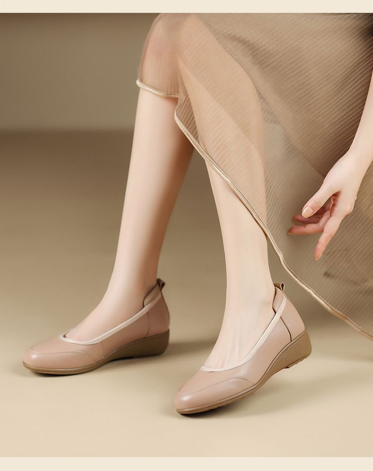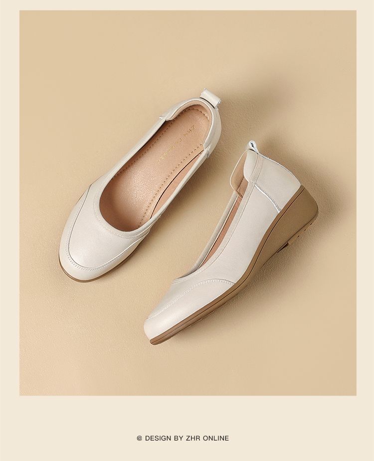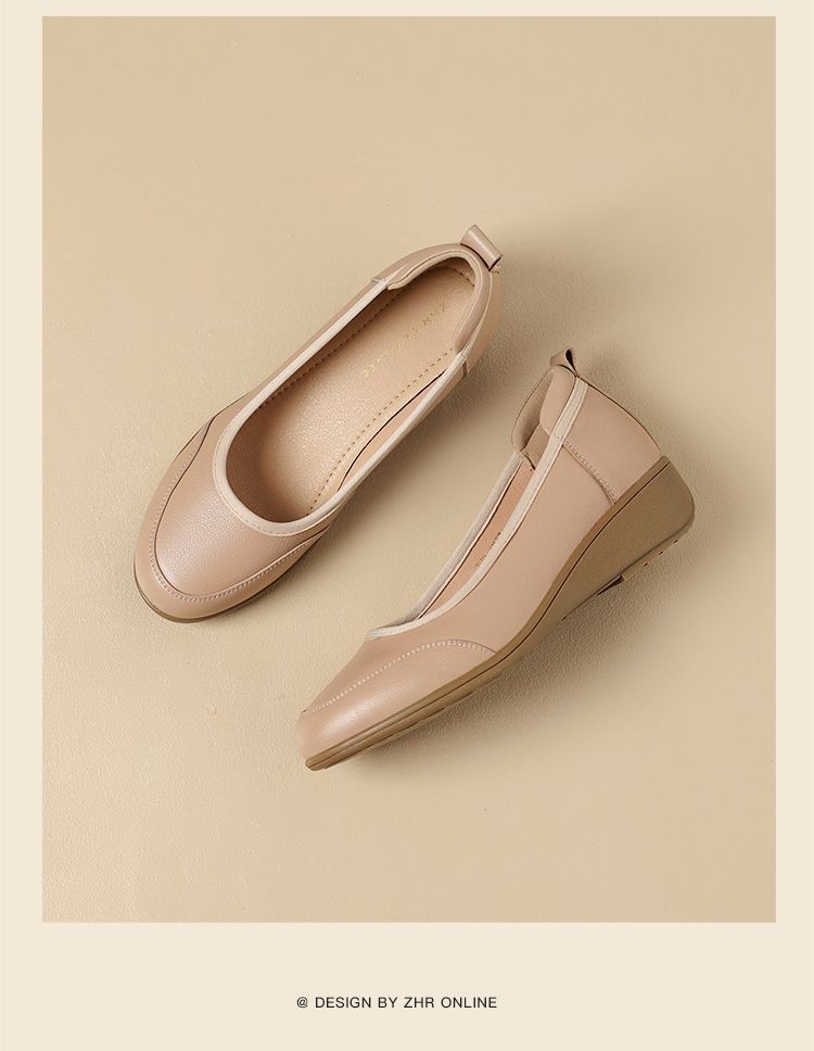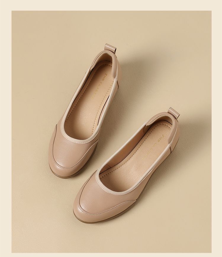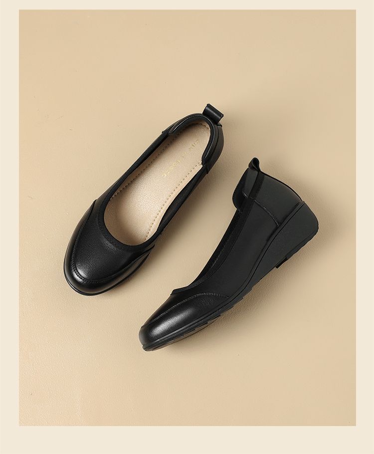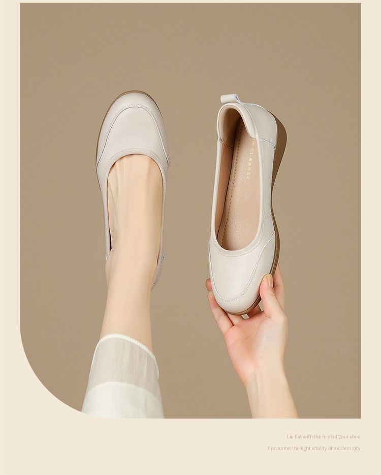 ZHR则则头层牛皮浅口单鞋软底一脚蹬妈妈单鞋真皮黑色小皮鞋通勤