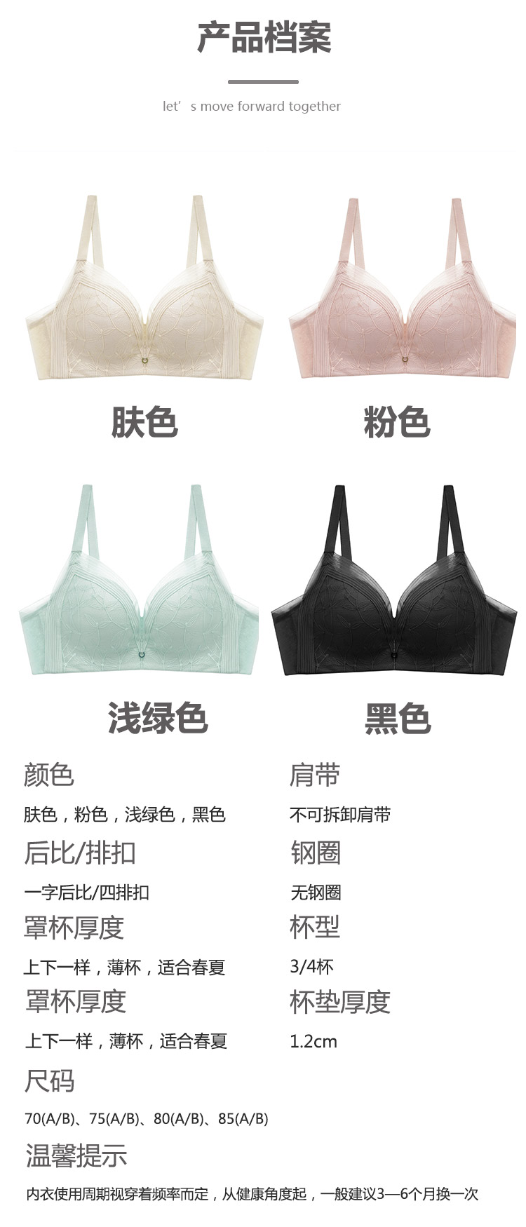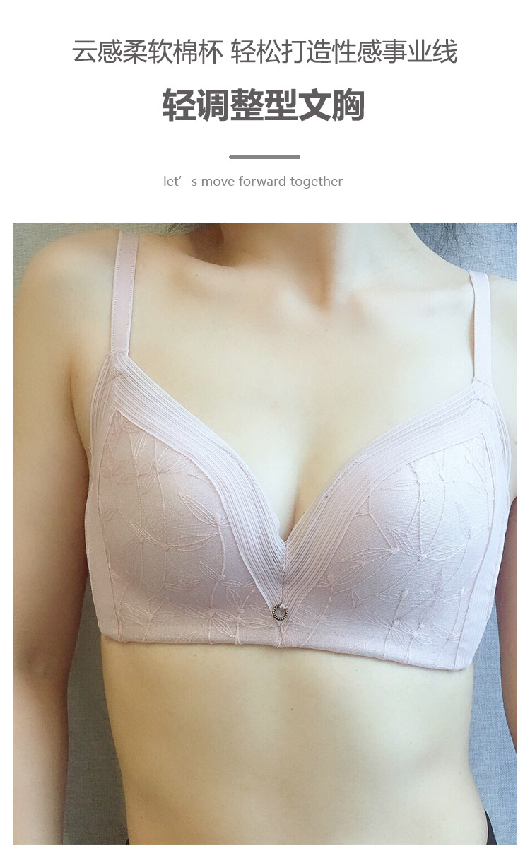 【百图lulu好物】【小胸聚拢内衣】莫代尔云感杯,侧翼通透,素叶纹刺绣 一字后比内衣