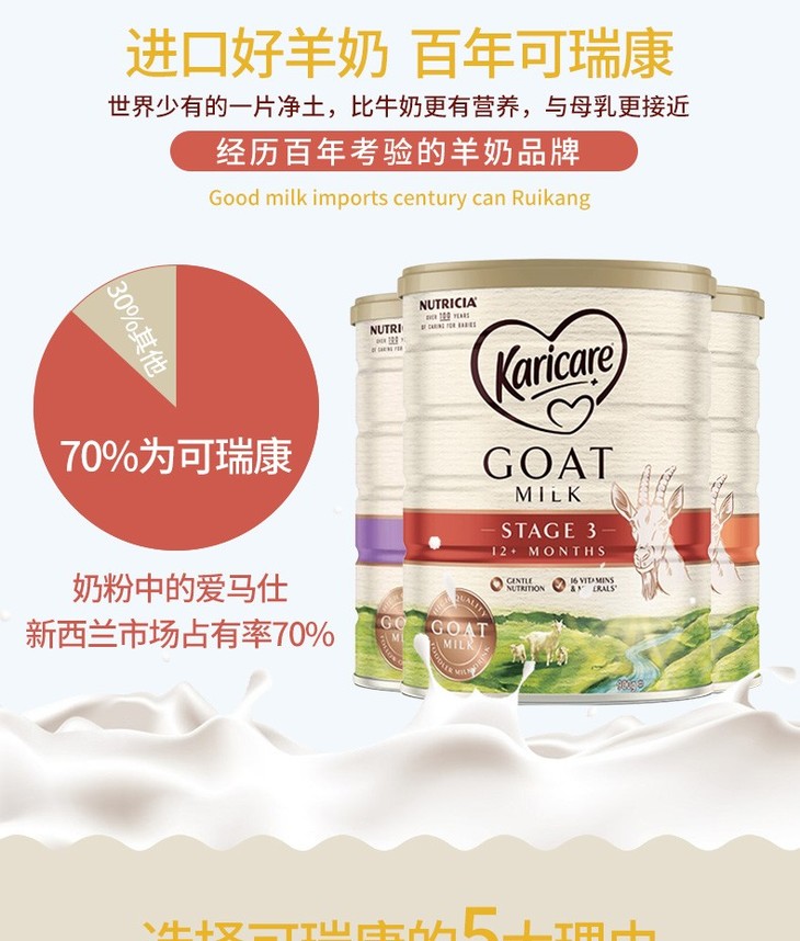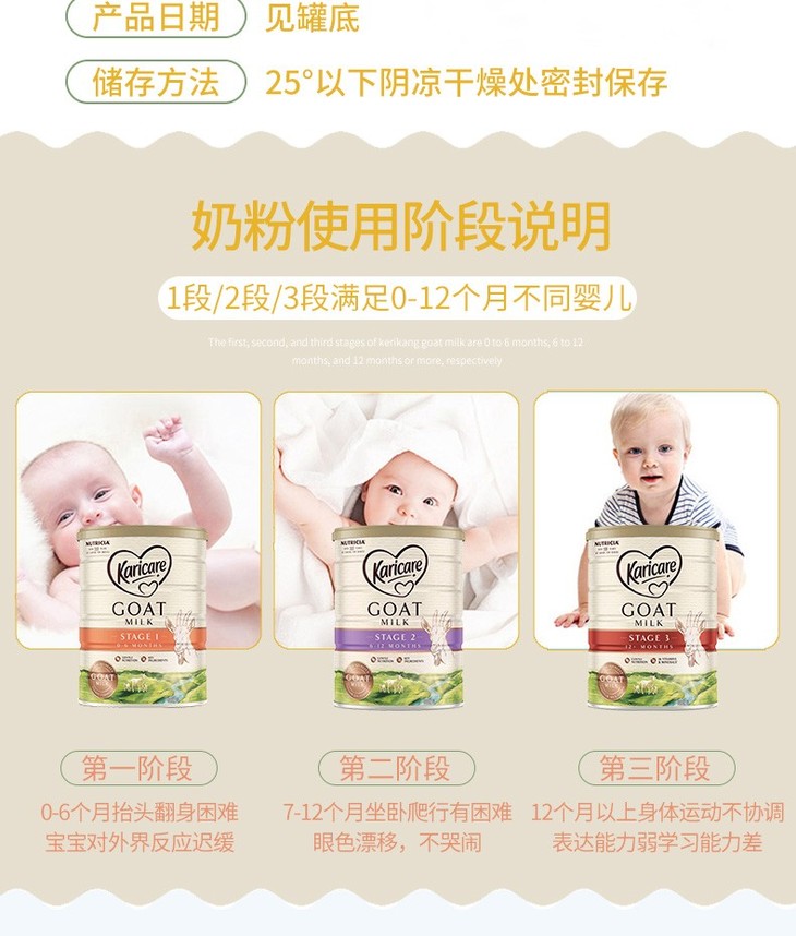 【BSC】羊奶 澳洲可瑞康(karicare)婴儿幼儿羊奶粉1段(0-6个月)不易过敏羊奶粉原装进口3罐/6罐起售