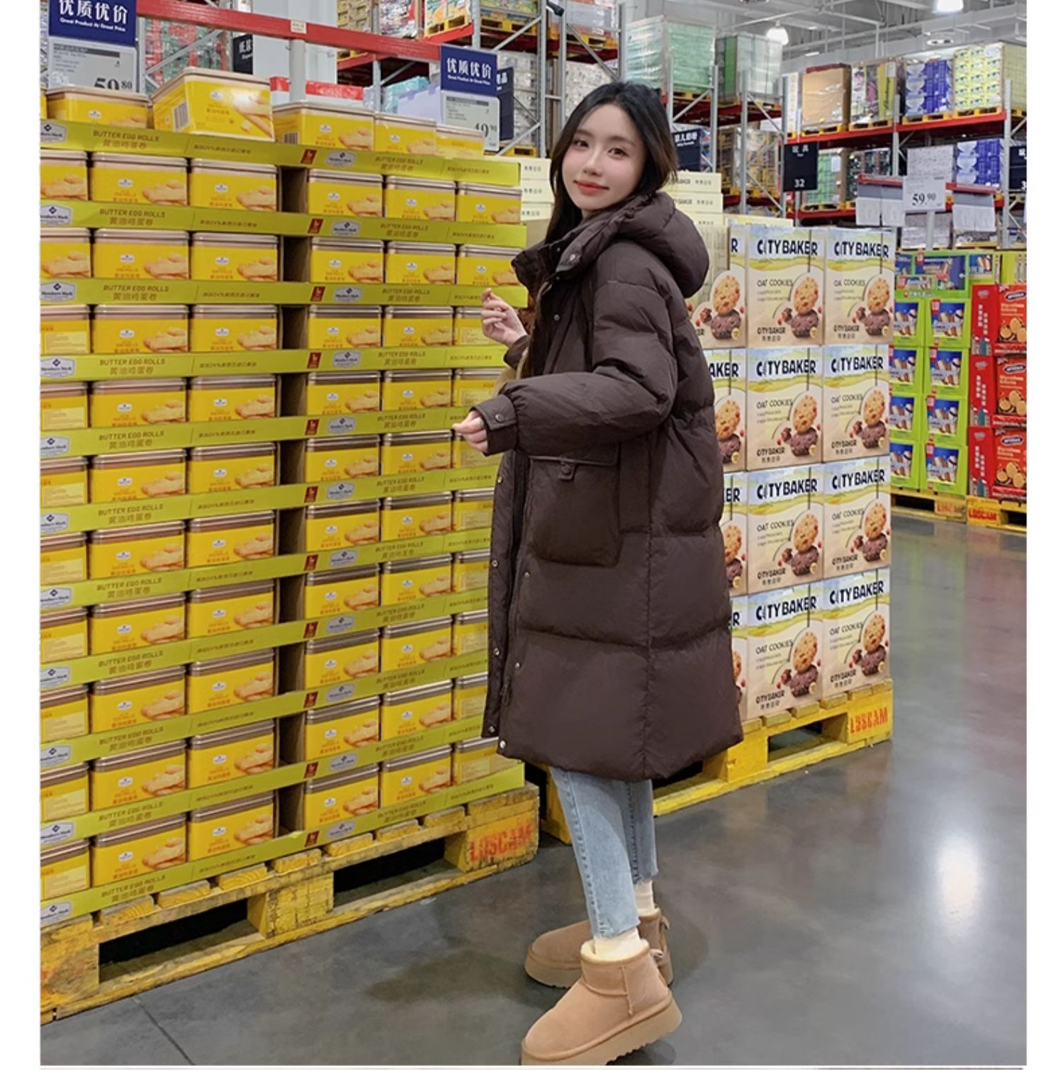 卉遇韩系三粒扣长款羽绒服HY-30★