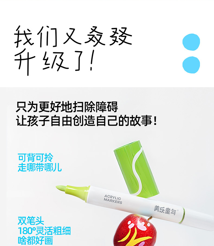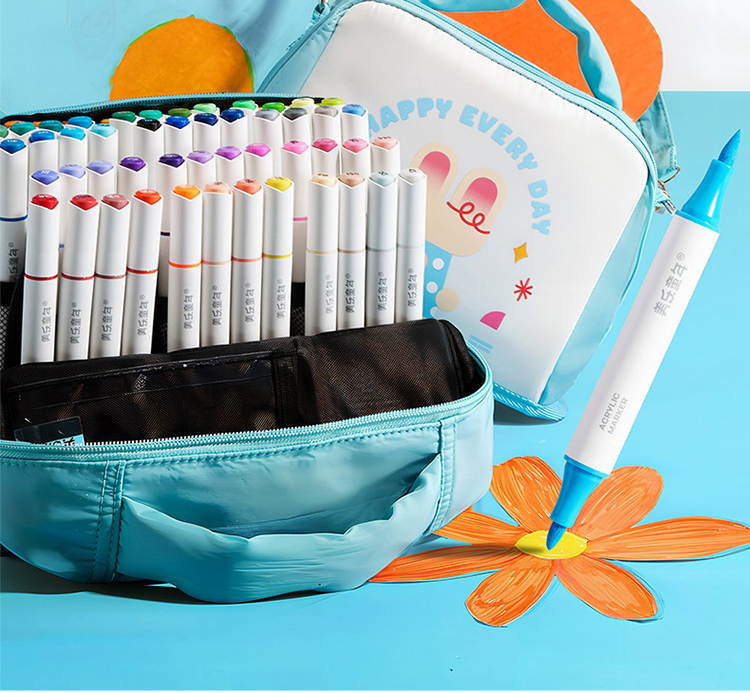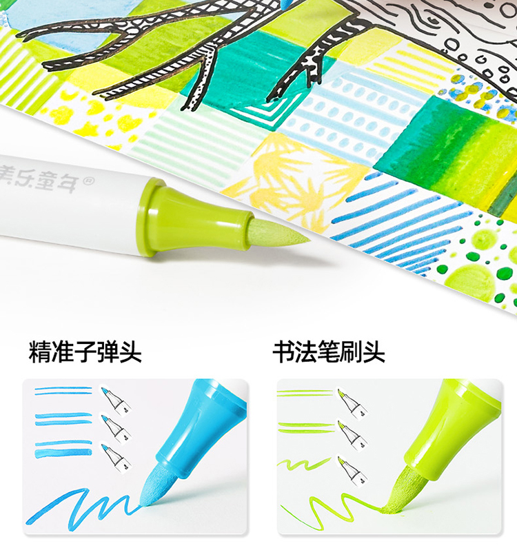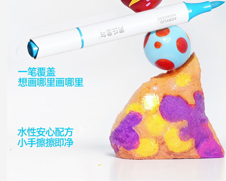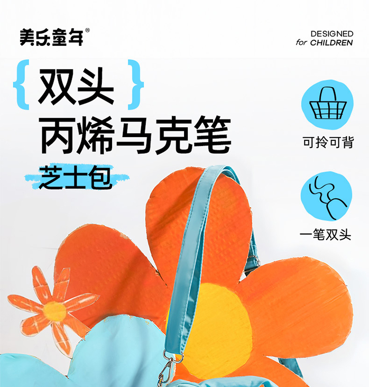 美乐童年芝士包双头丙烯马克笔学生专用美术彩绘笔不透色彩色画笔儿童无毒速干叠色水性涂鸦笔绘画软头水彩笔