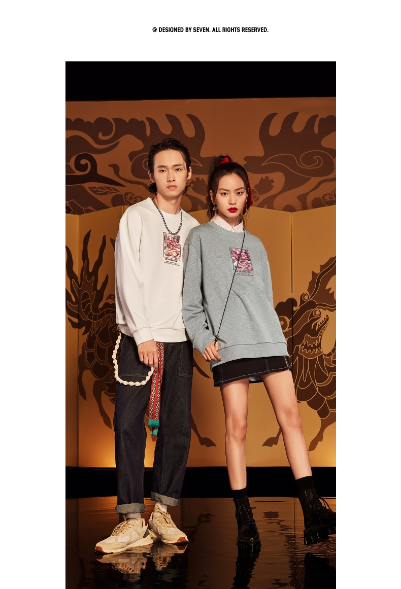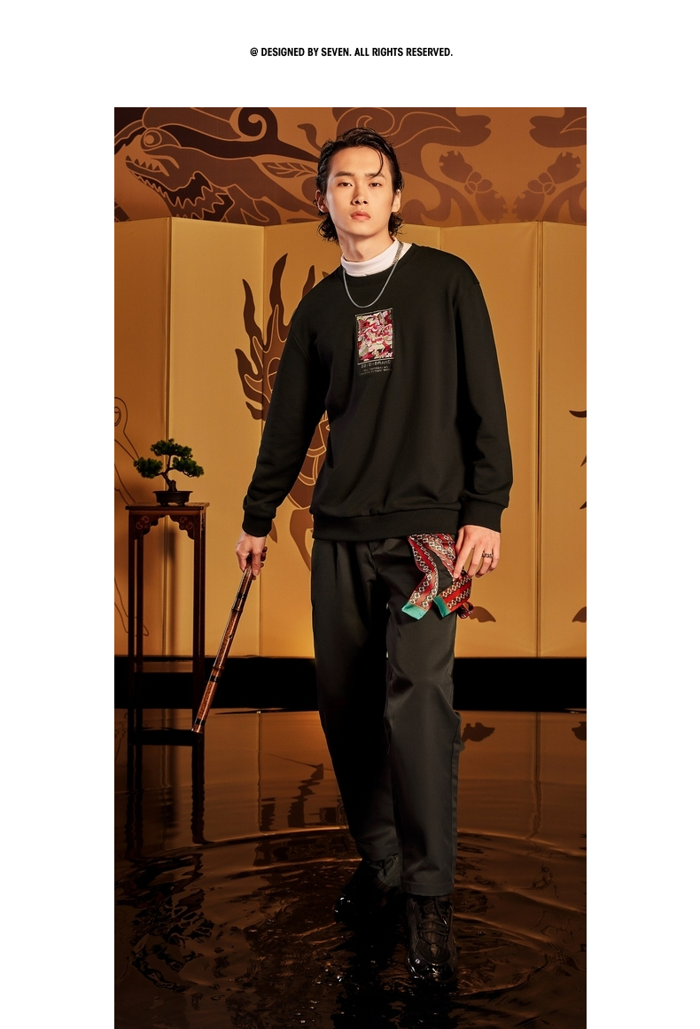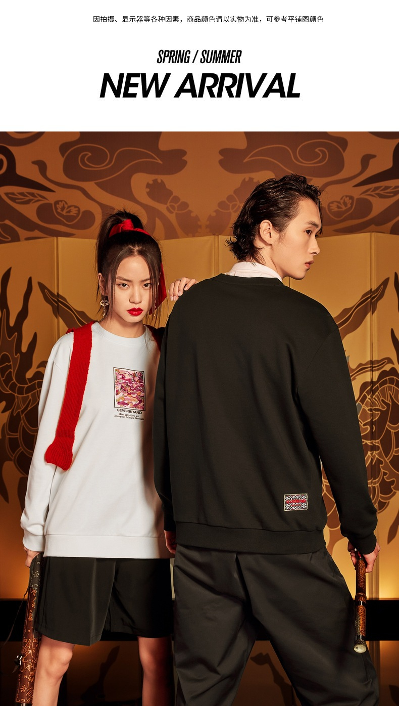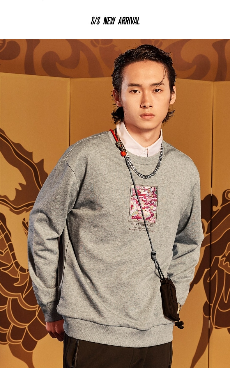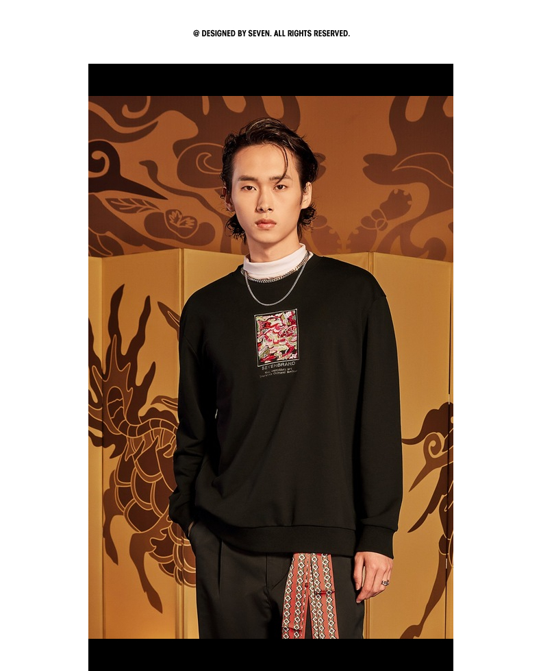 【特价】【新年麒麟祥瑞系列】柒牌卫衣男春秋款时尚国潮青年长袖圆领T恤 122W70030