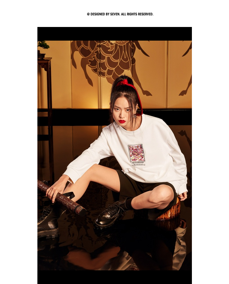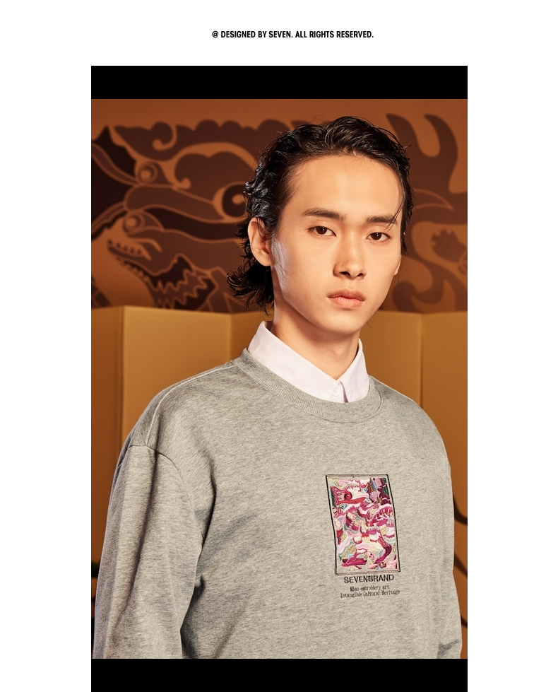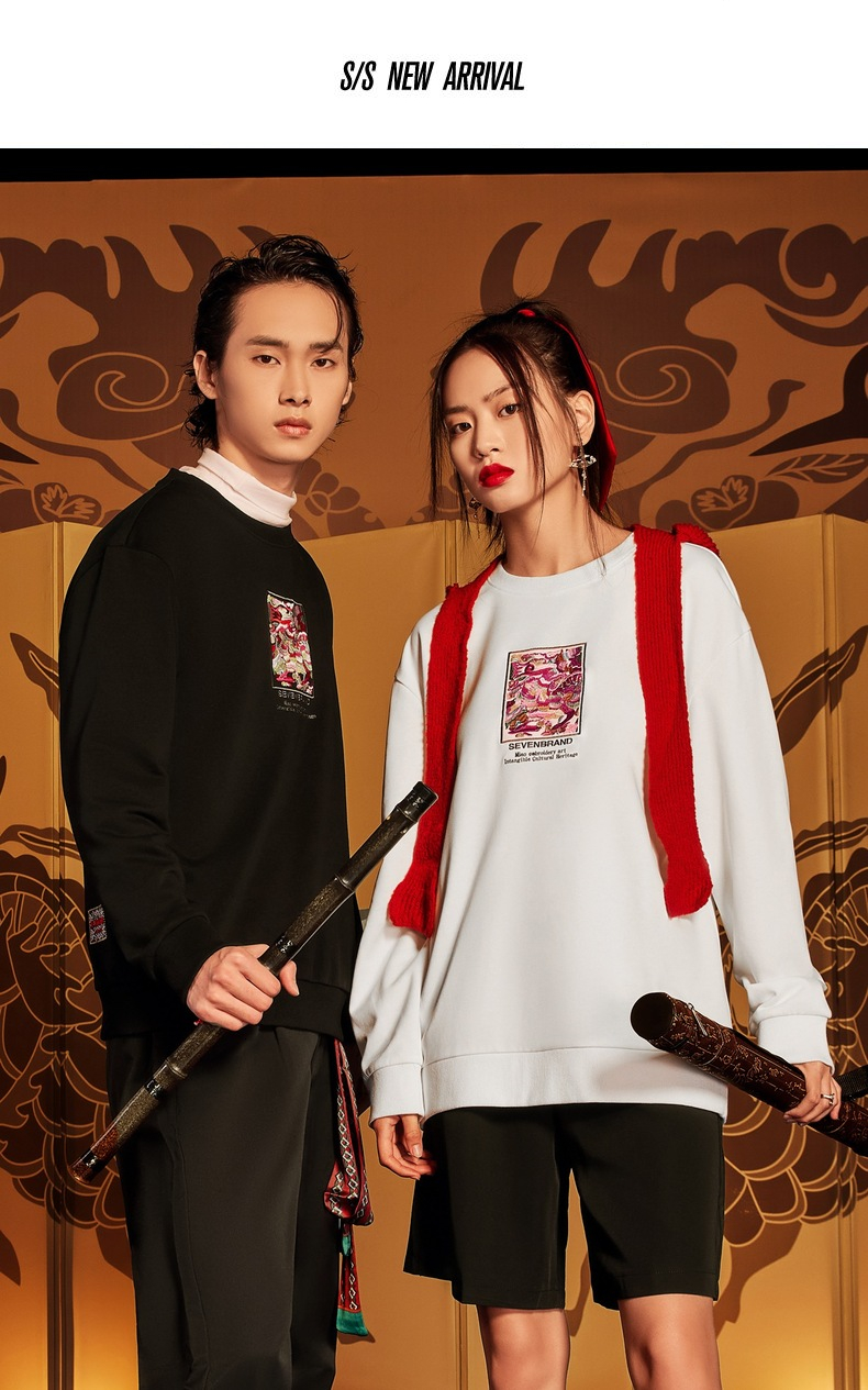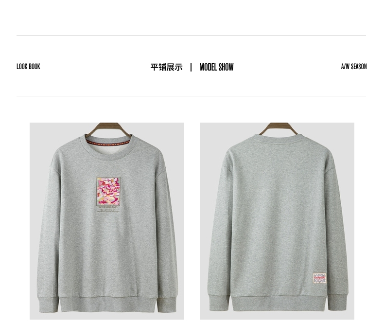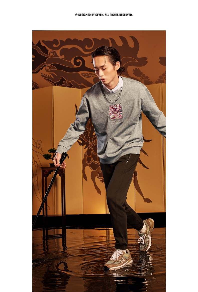 【特价】【新年麒麟祥瑞系列】柒牌卫衣男春秋款时尚国潮青年长袖圆领T恤 122W70030