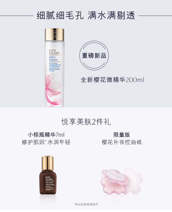 【现货】雅诗兰黛樱花微精华 原生液 补水提亮 细腻剔透 收缩毛孔去闭口水油平衡