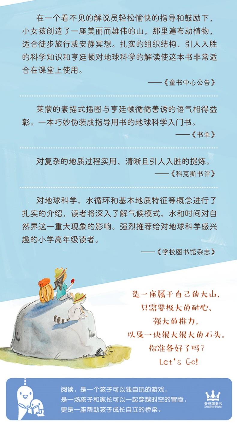 在本书中,作者用画外音互动的方式、轻松幽默的语言,手把手教你造一座山。你将学习如何将一块大陆挤压成山脉;冻结和融化冰川;雕刻沟壑、山谷、河流和高山湖泊;培育植物,并形成肥沃的土壤层;引入各种动物以保持健康的山地生态系统。这可是个大工程,也很激动人心!带上你的零食、装备,来迎接这项挑战吧!