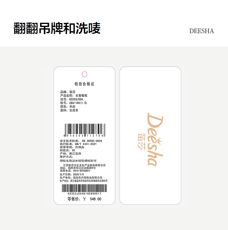 笛莎Deesha 女童童鞋2025秋新款低帮板鞋