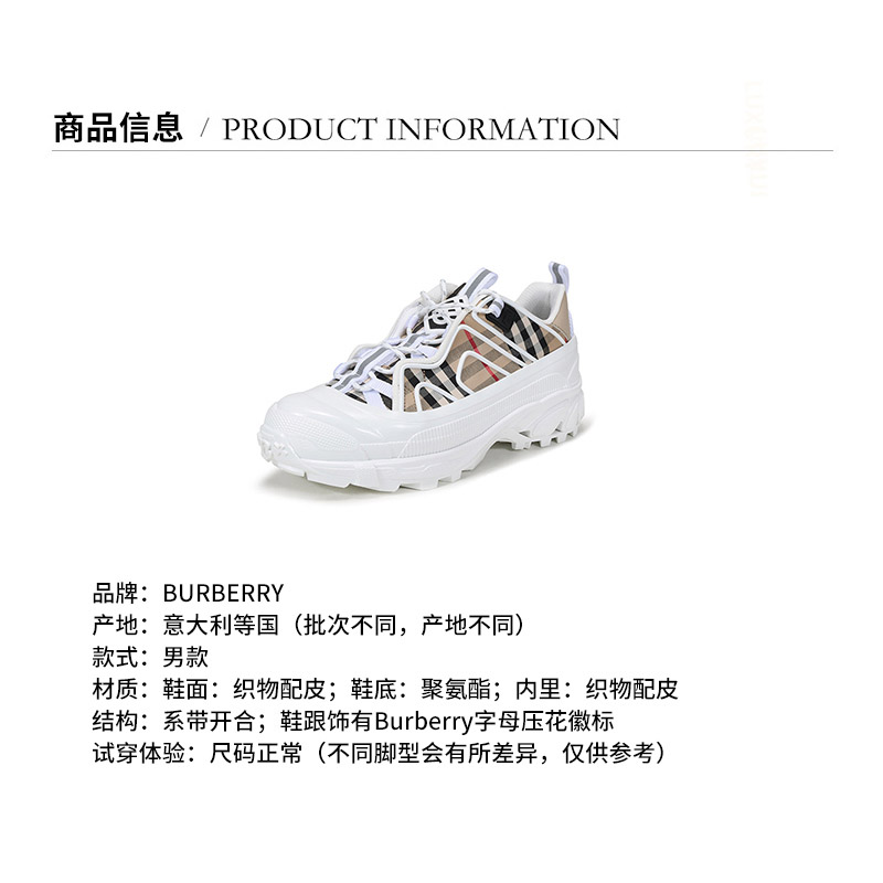 BURBERRY/博柏利 2021款 男款织物配皮Arthur系带休闲运动鞋 80372541