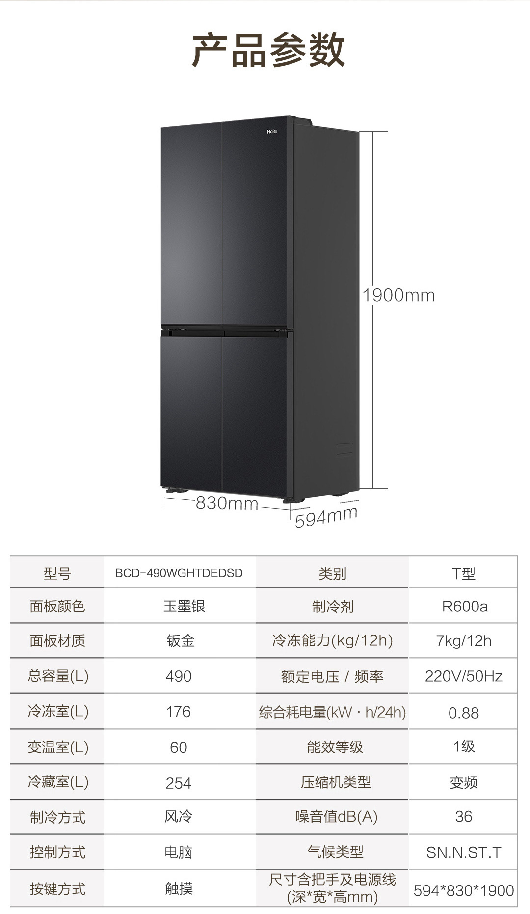 海尔(Haier)冰箱 BCD-490WGHTDEDSD