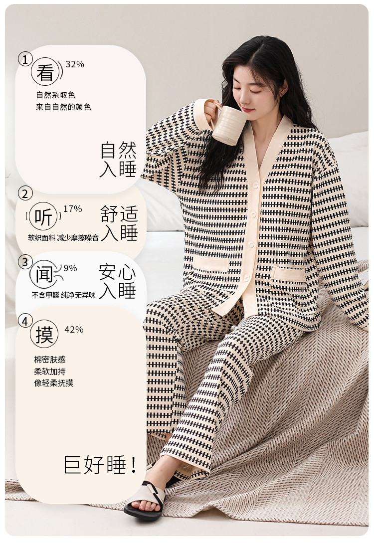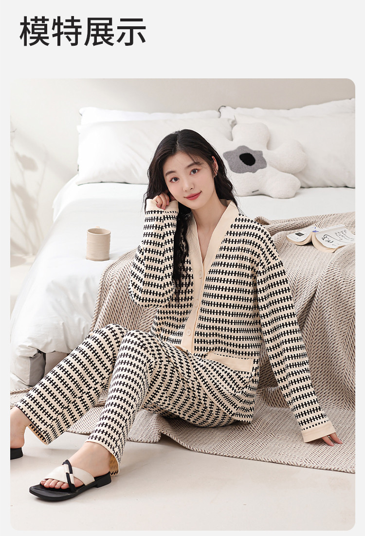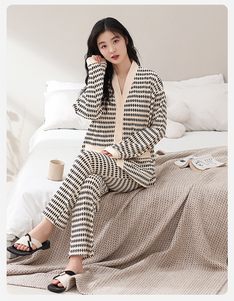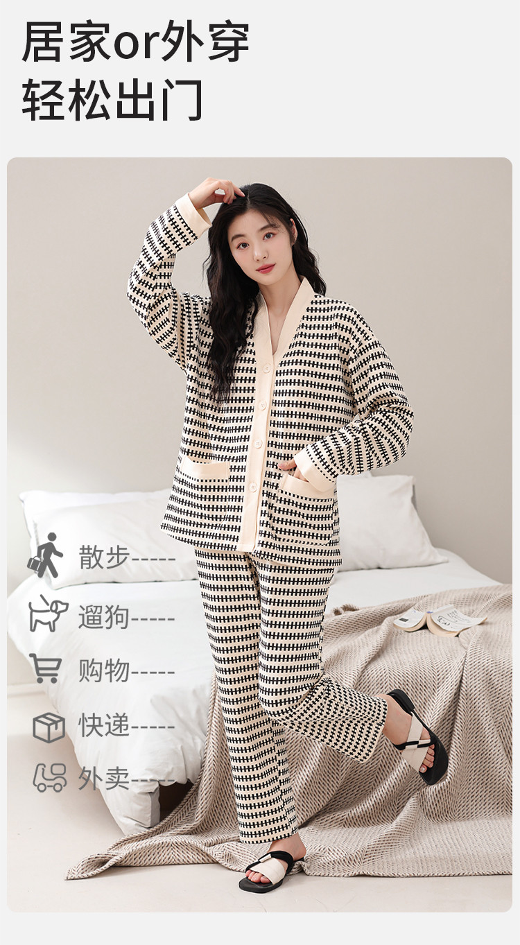 康妮雅女式长袖长裤开襟套装
