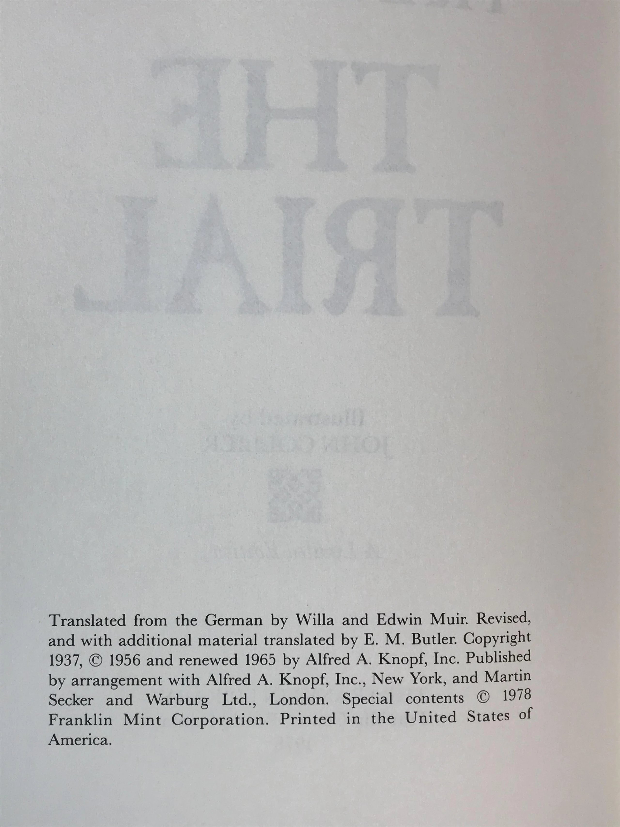 限量版!弗兰兹・卡夫卡《审判》 配插图 富兰克林图书馆豪华皮装本