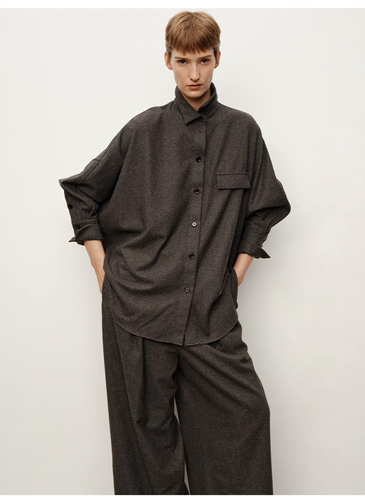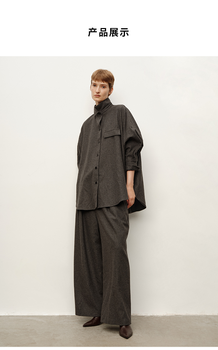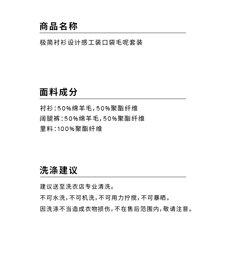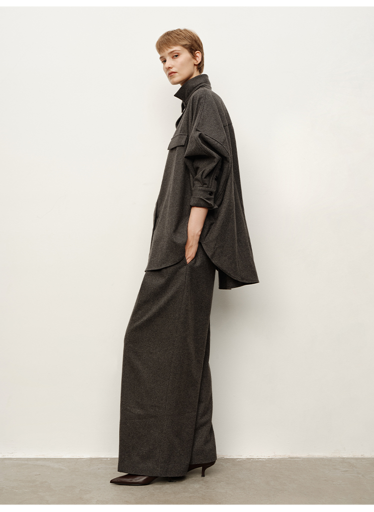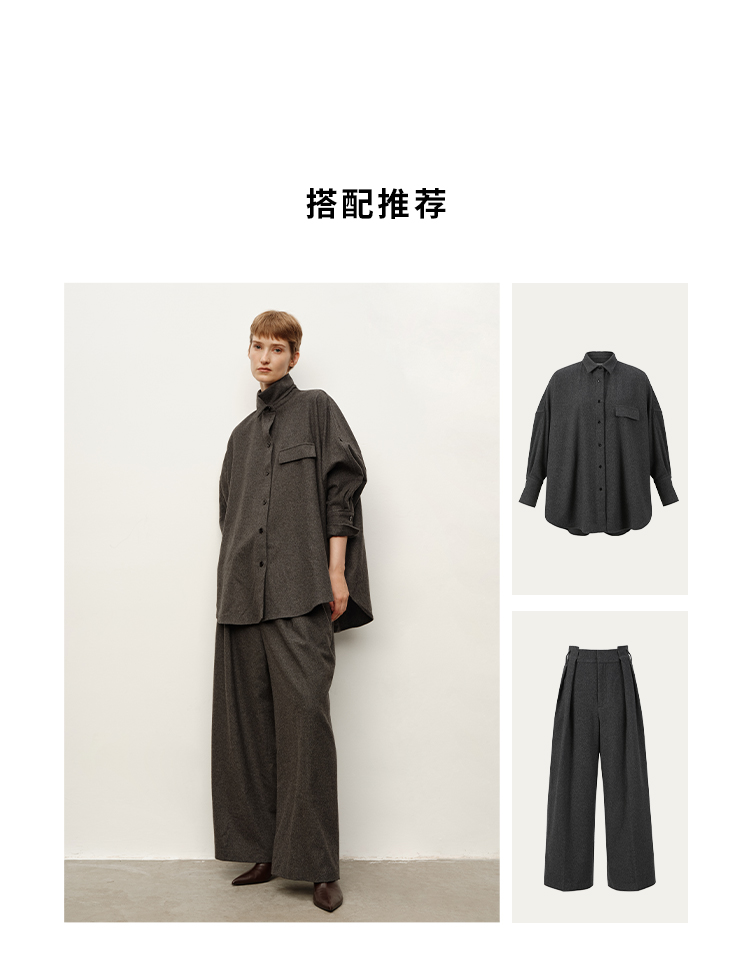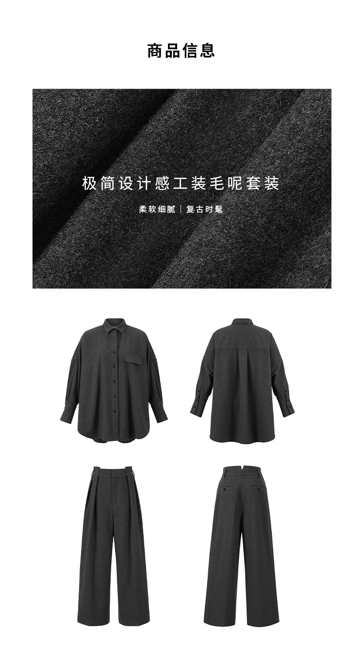 HIDEMI 极简衬衫设计感工装口袋毛呢套装 上衣/阔腿裤