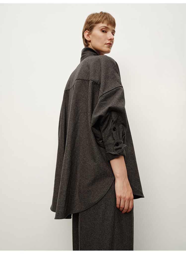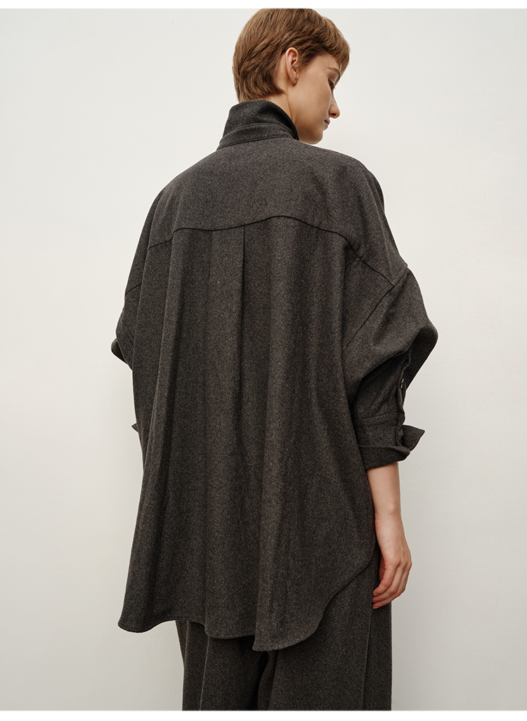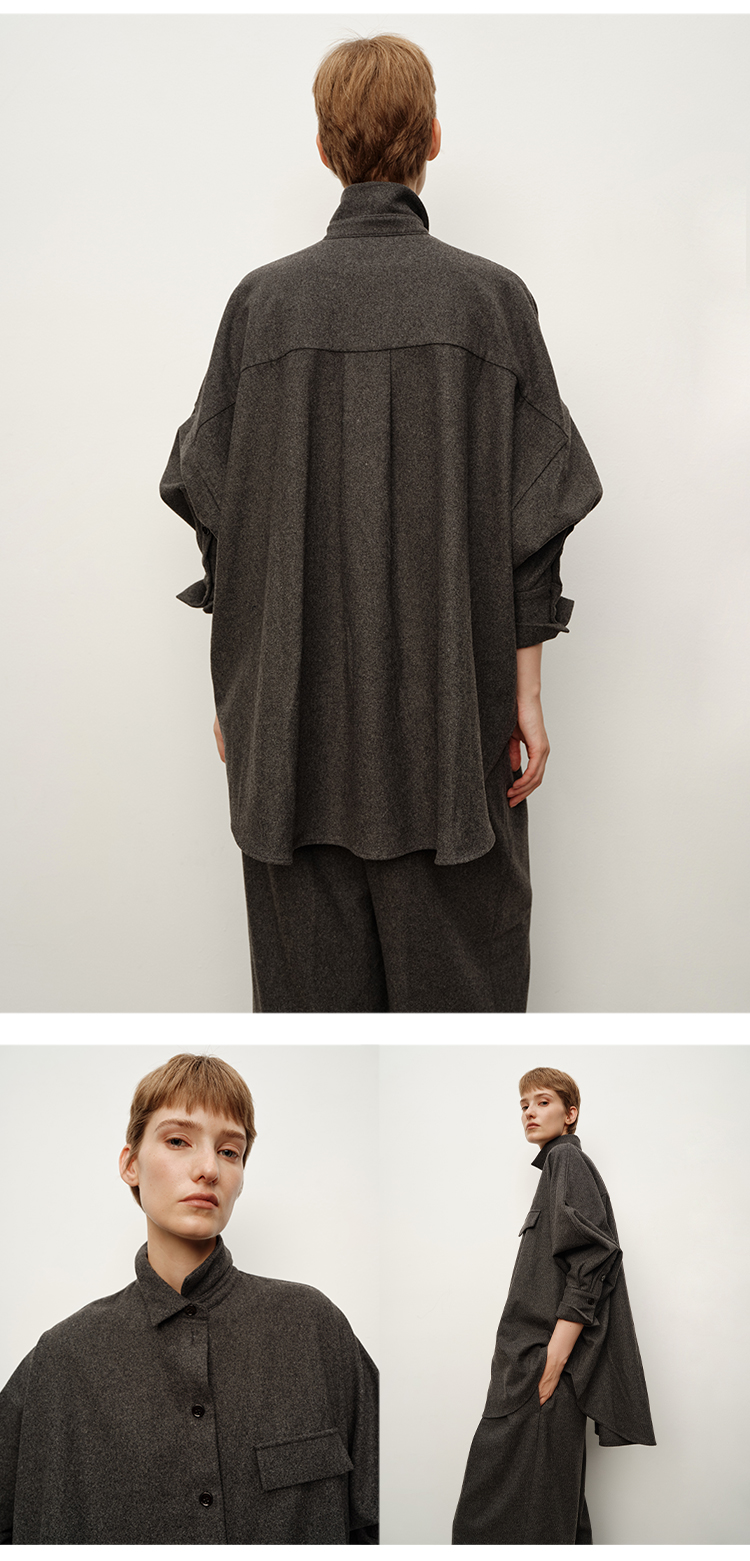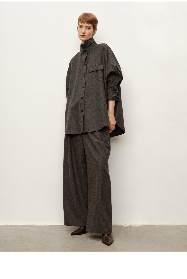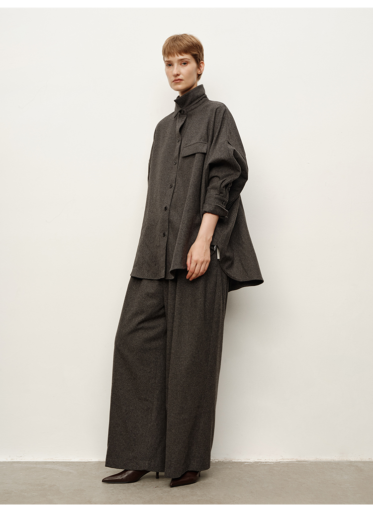 HIDEMI 极简衬衫设计感工装口袋毛呢套装 上衣/阔腿裤