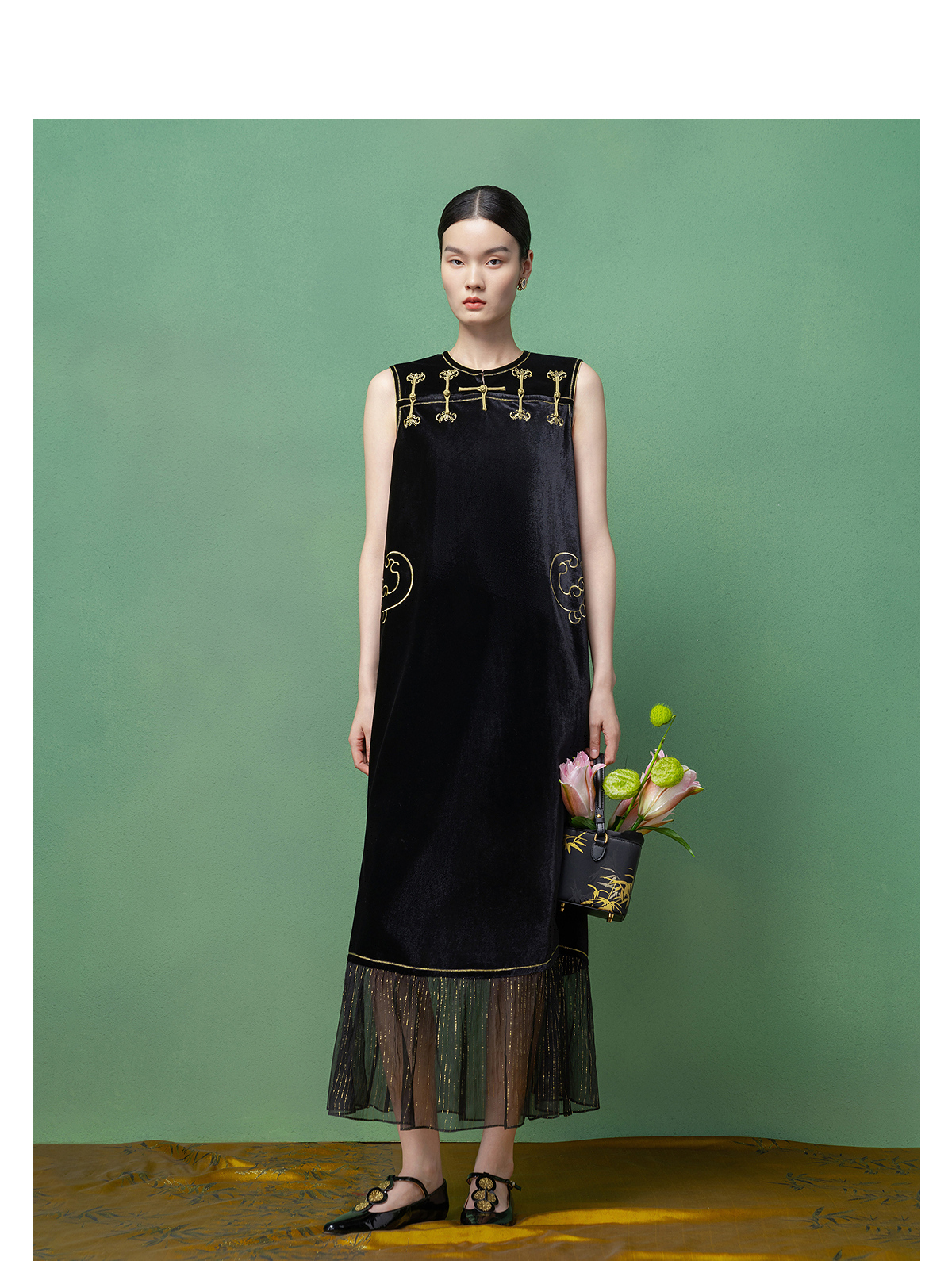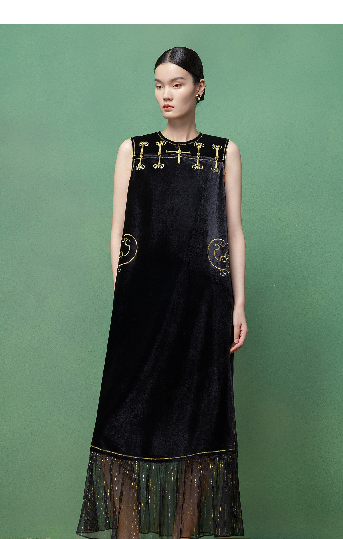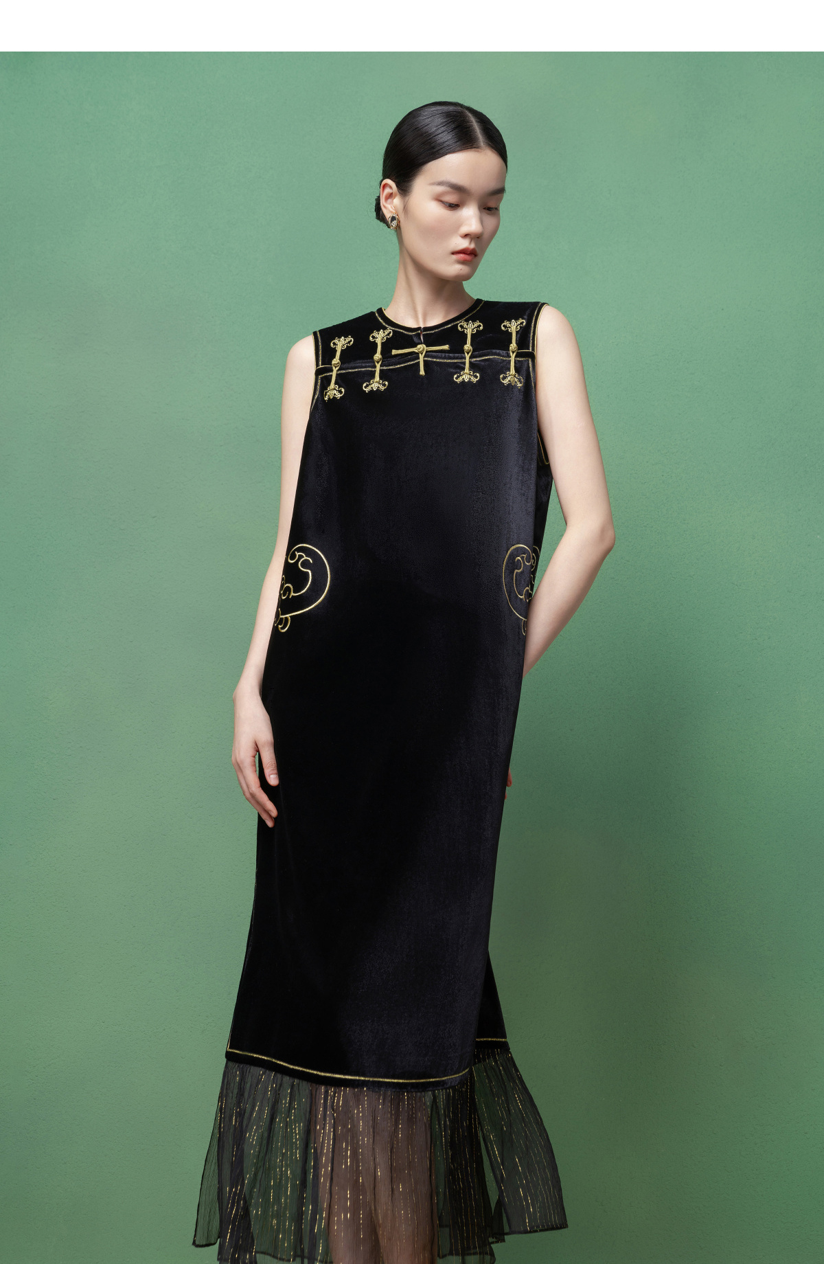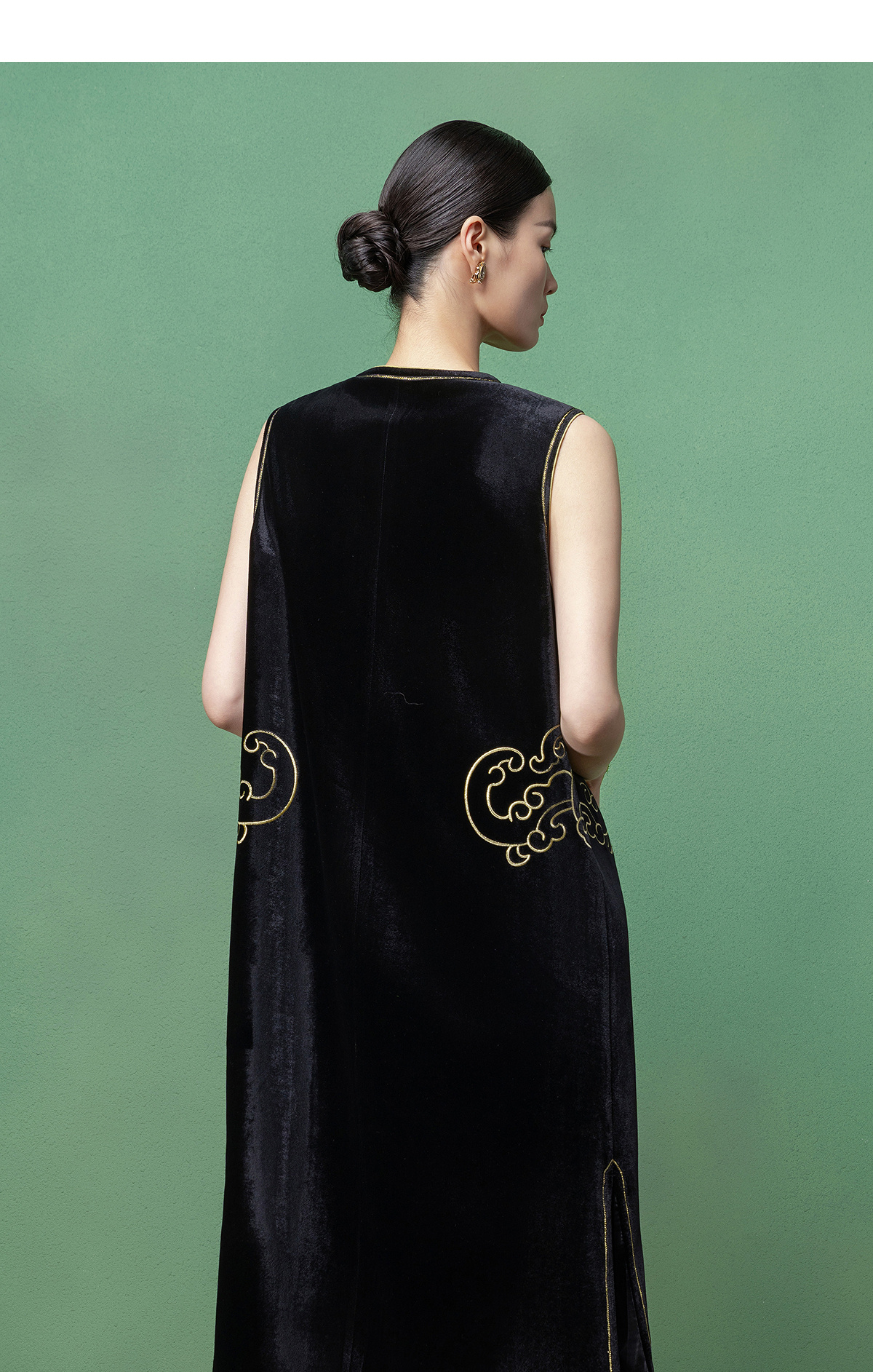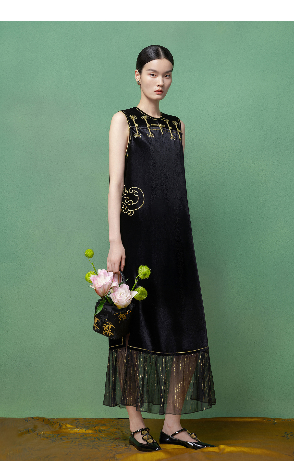 【林栖设计小店】真丝丝绒连衣裙拼金丝2026早春新款国风长裙1961147