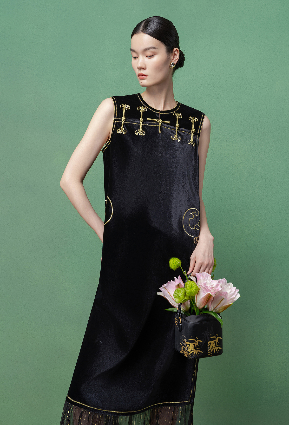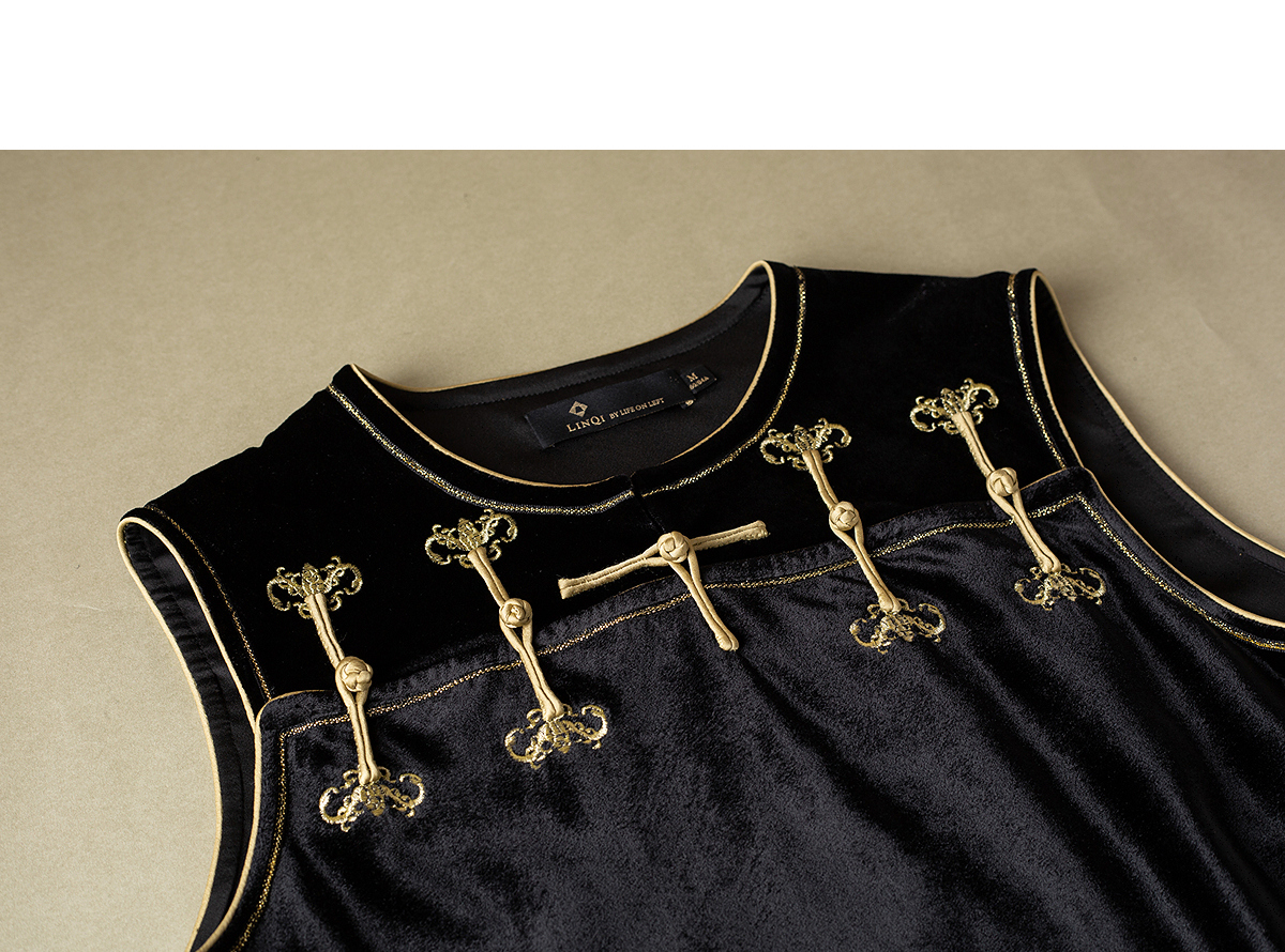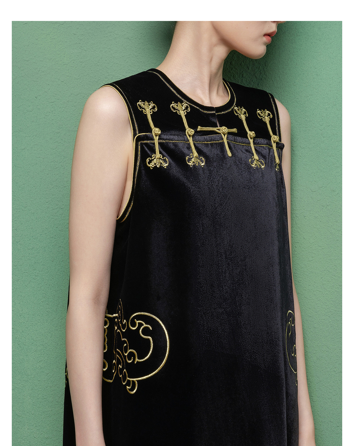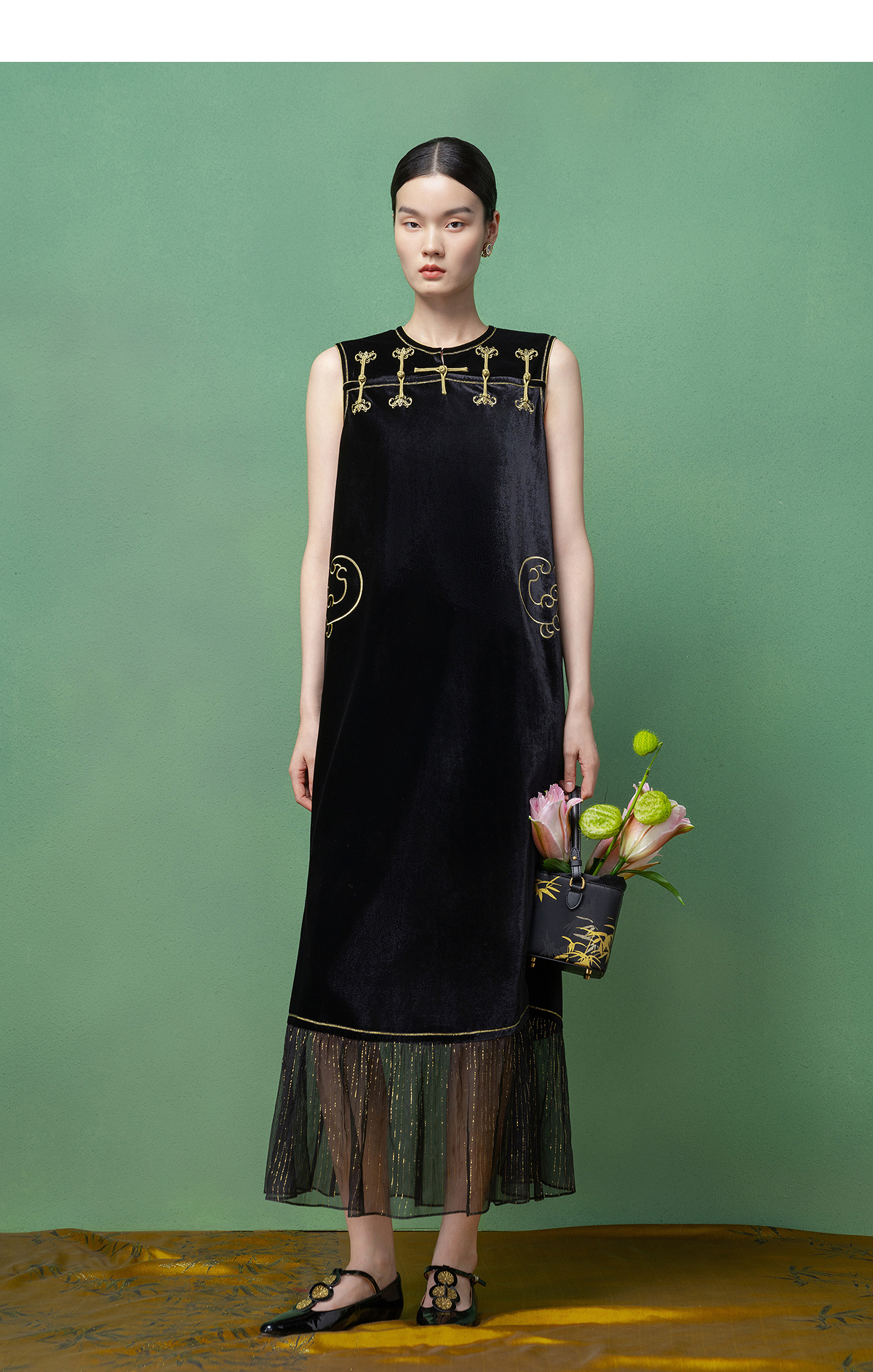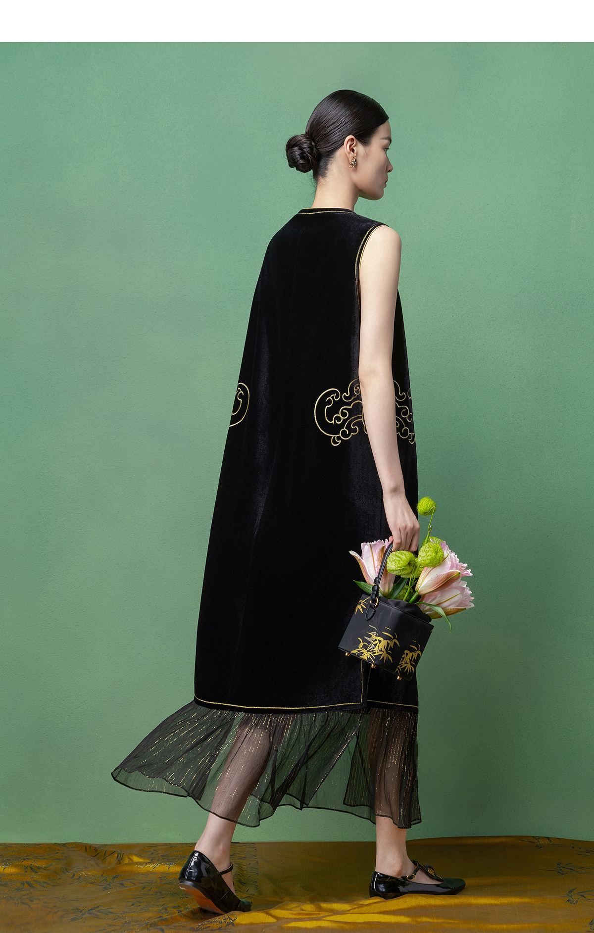【林栖设计小店】真丝丝绒连衣裙拼金丝2026早春新款国风长裙1961147
