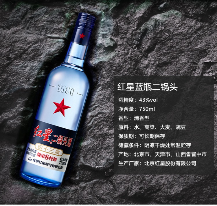 【红星】43度二锅头酒(绵柔8陈酿)750ml