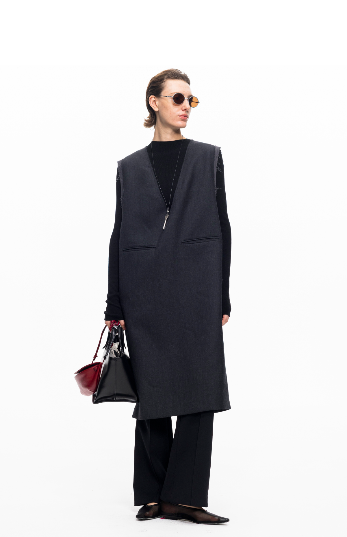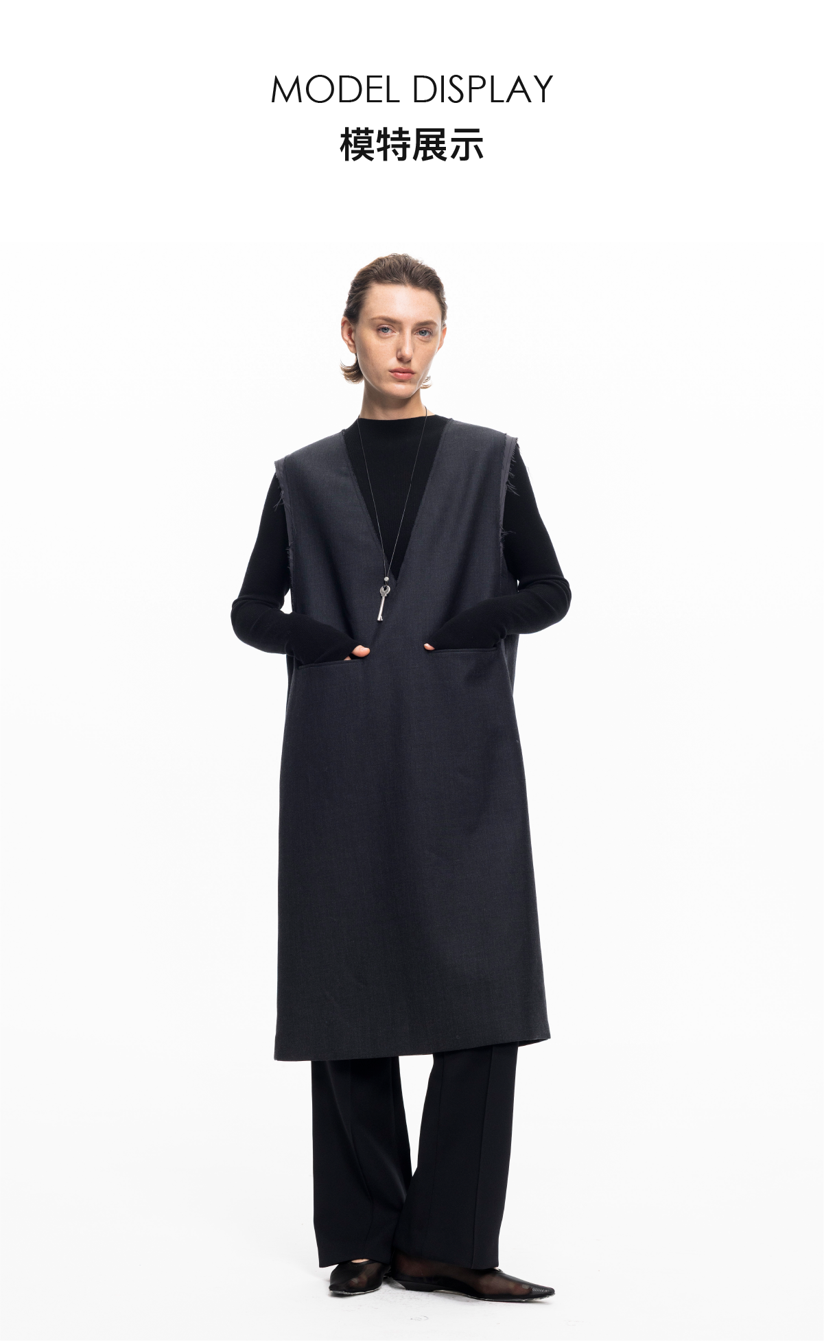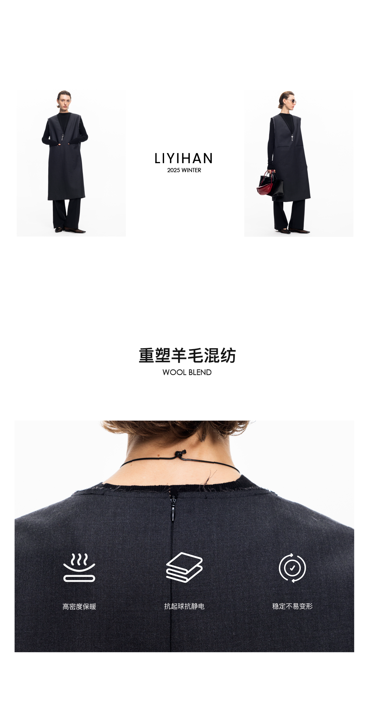 LIYIHAN 2025秋冬新款法式羊毛连衣裙灰色通勤中长裙子小众设计感