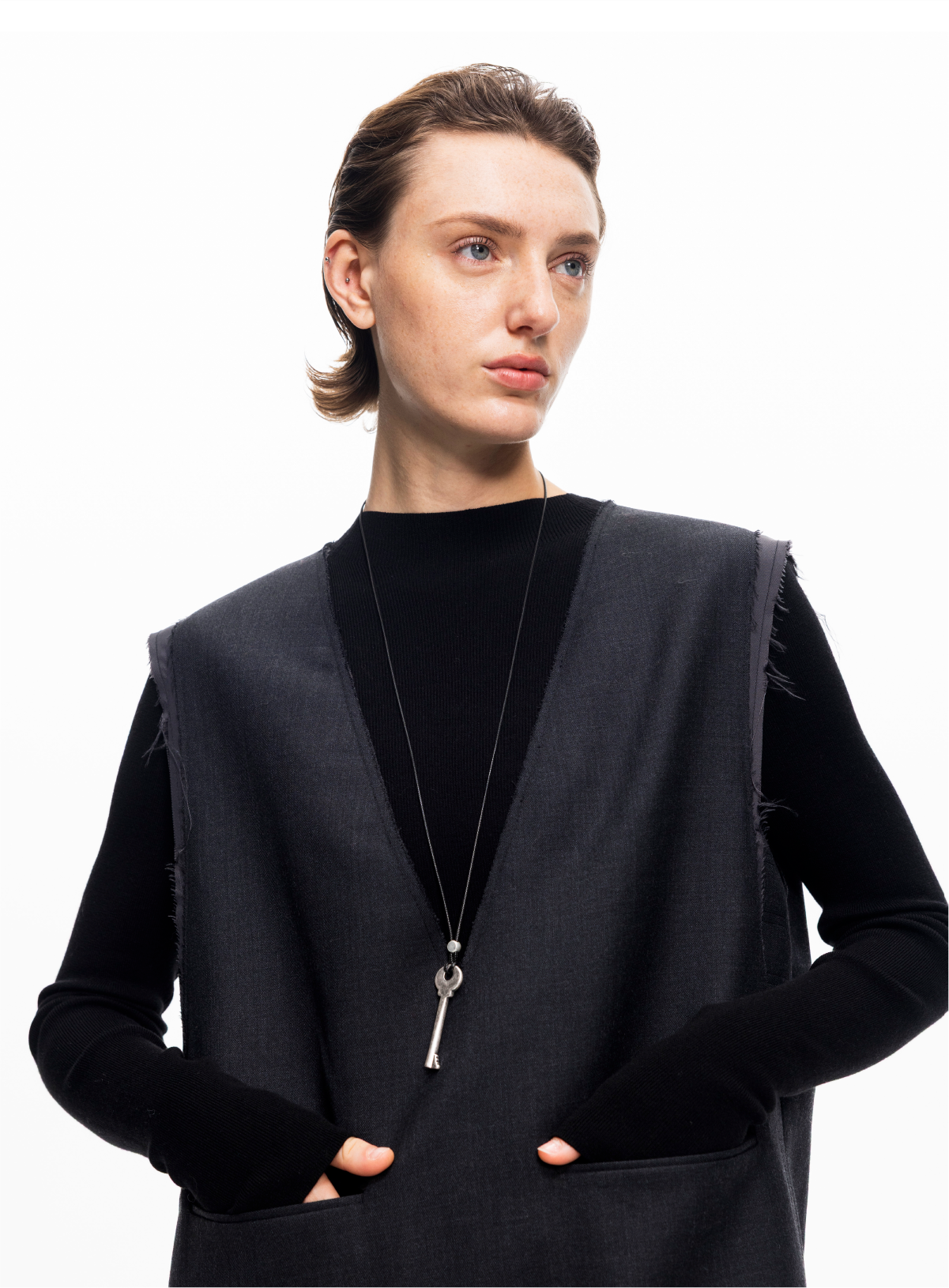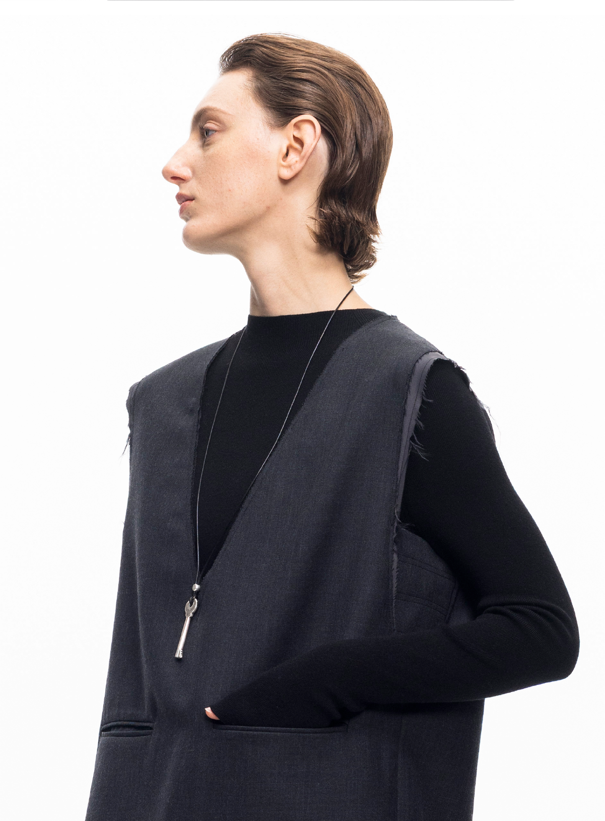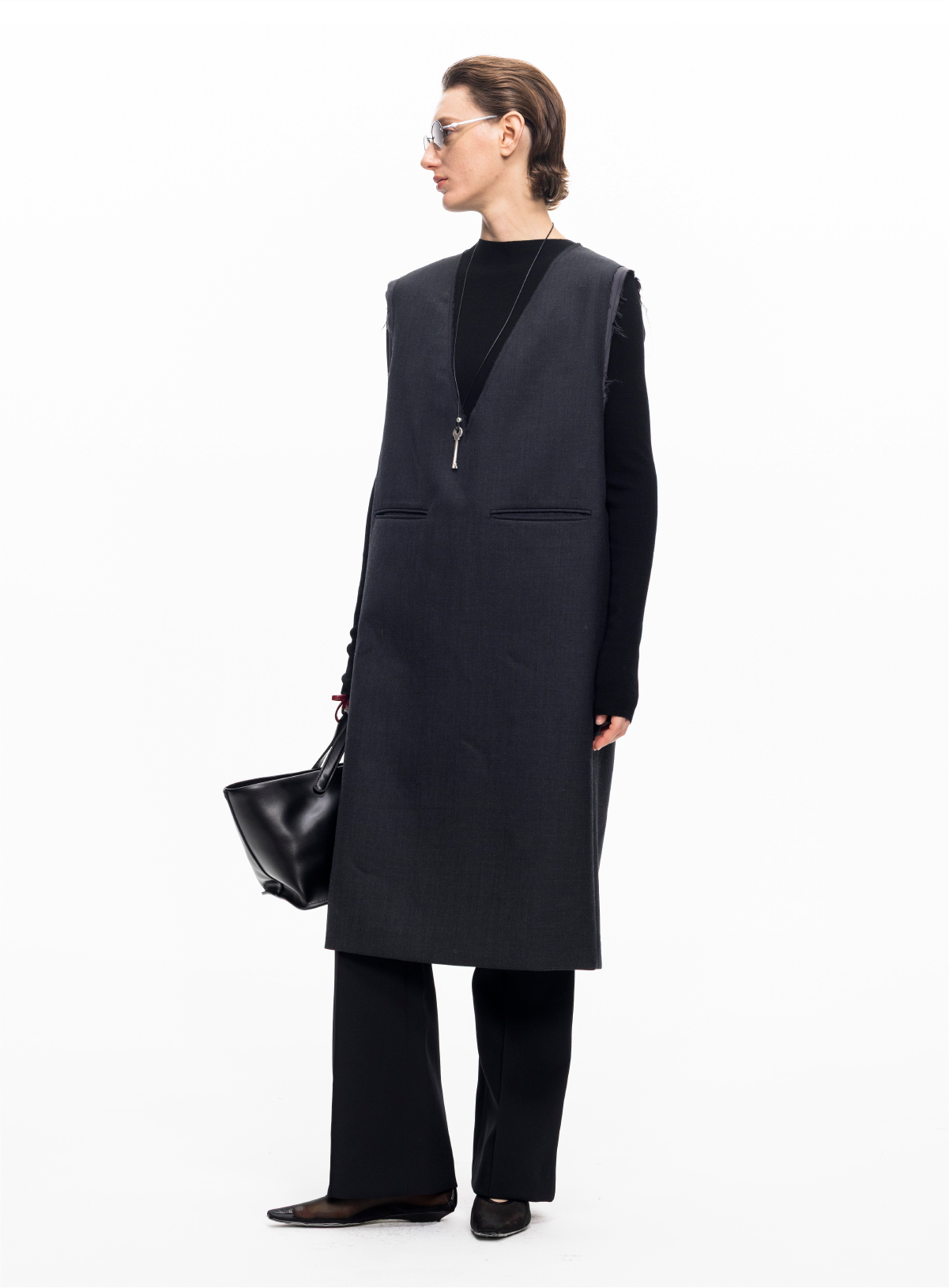 LIYIHAN 2025秋冬新款法式羊毛连衣裙灰色通勤中长裙子小众设计感