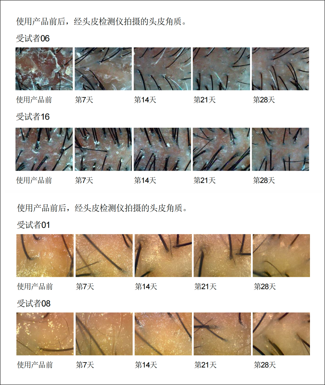 实验过程中,拍摄记录的受试者头皮角质,其去屑、控油效果也是肉眼可见↓
