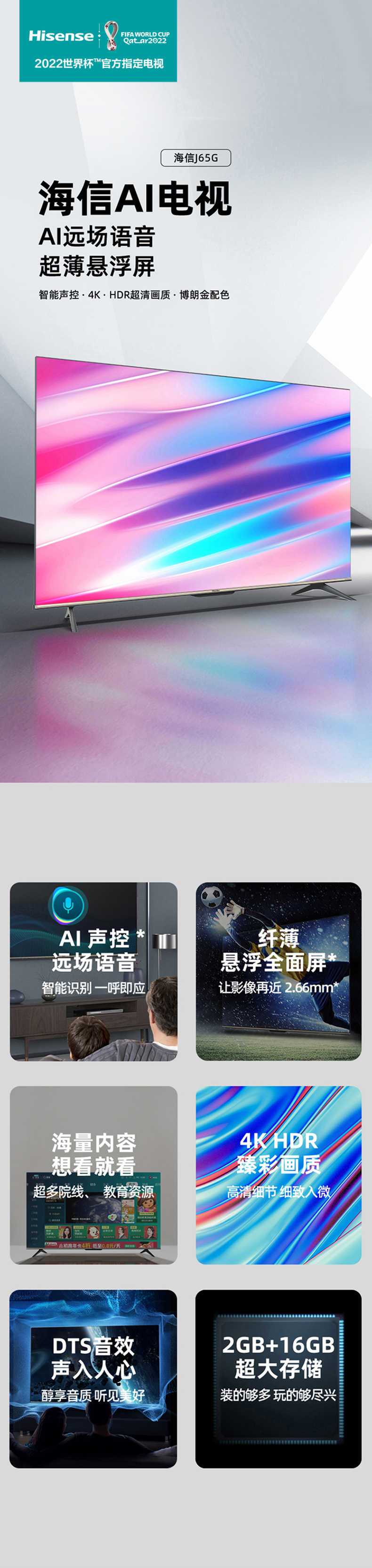 海信 55J65G 55英寸4K高清智慧屏 AI全面屏电视机【LY】