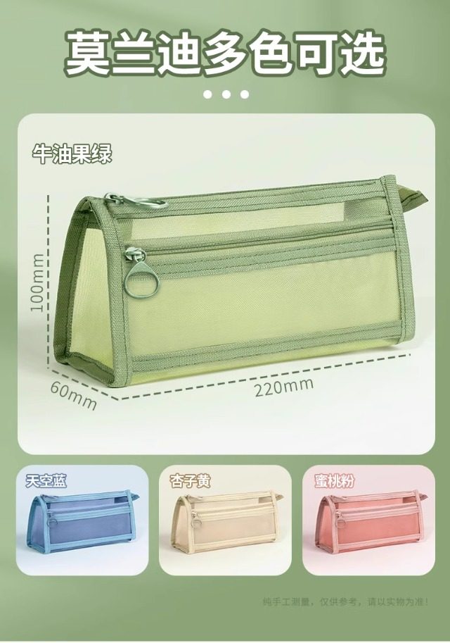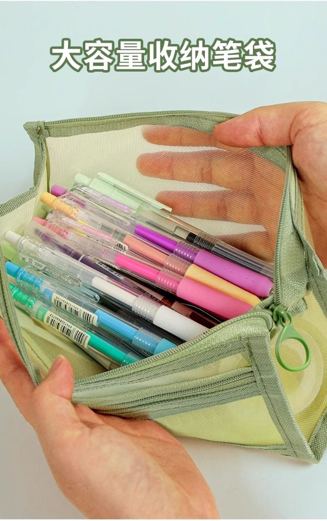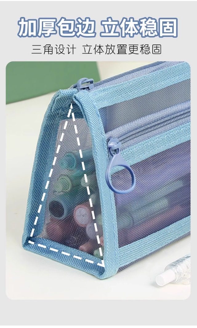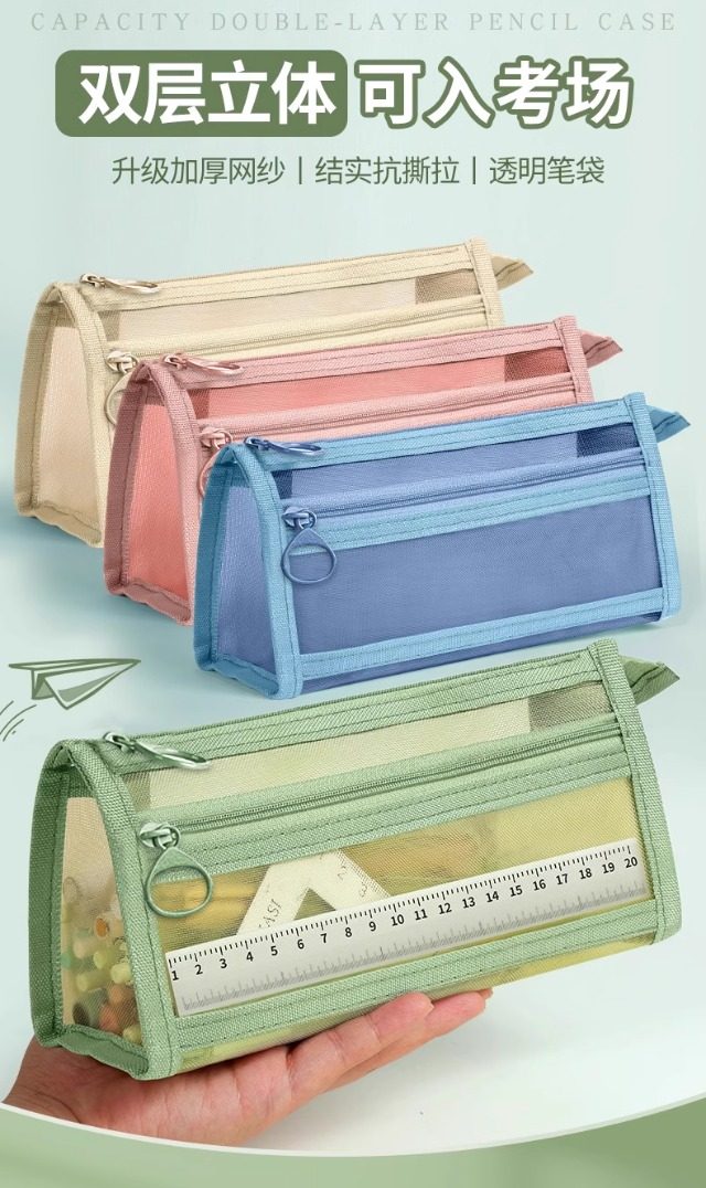 开学福利!【买一送一】透明笔袋考试专用文具袋网纱三角学生儿童铅笔袋双层立体大容量文具盒男女孩款2024简约便携收纳袋粉色白色