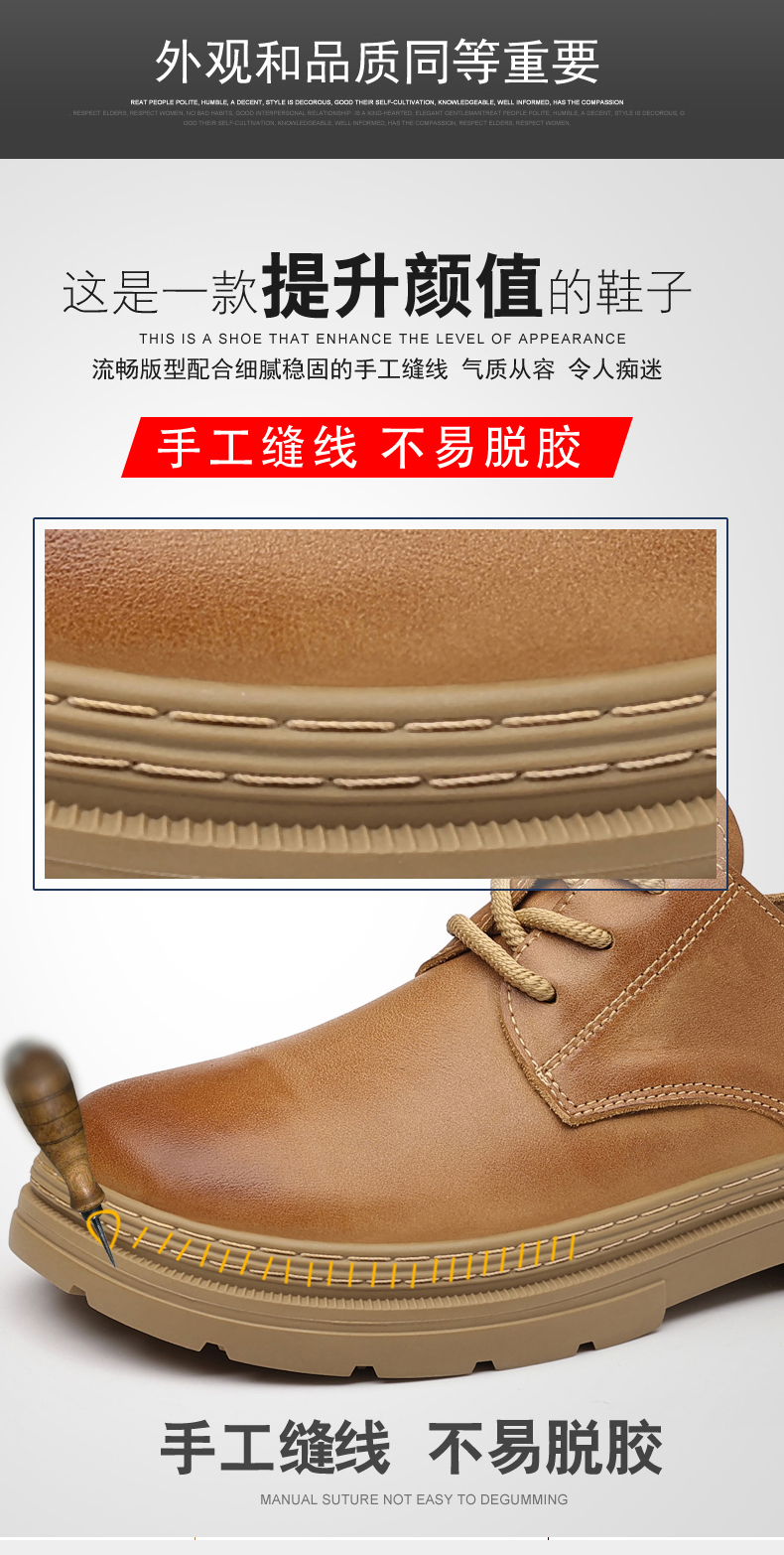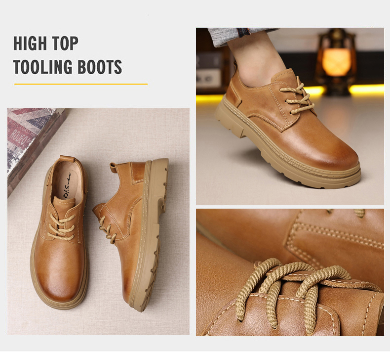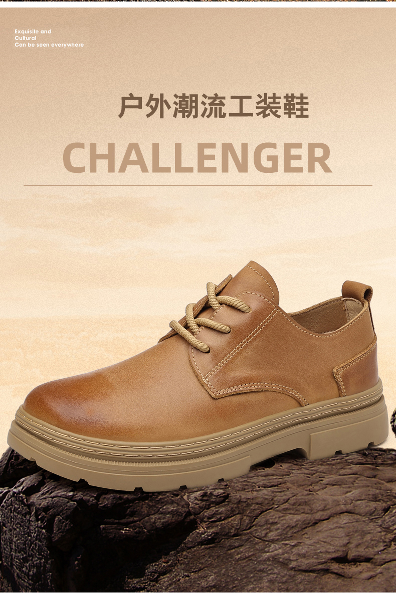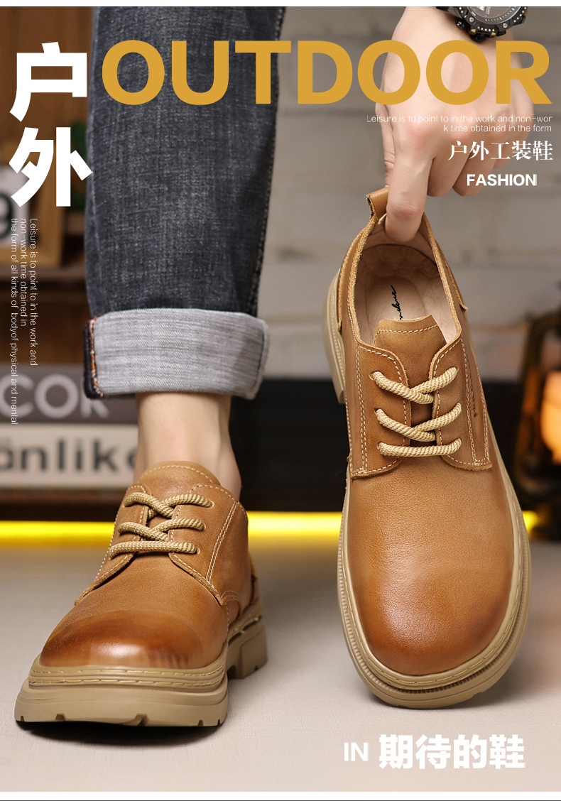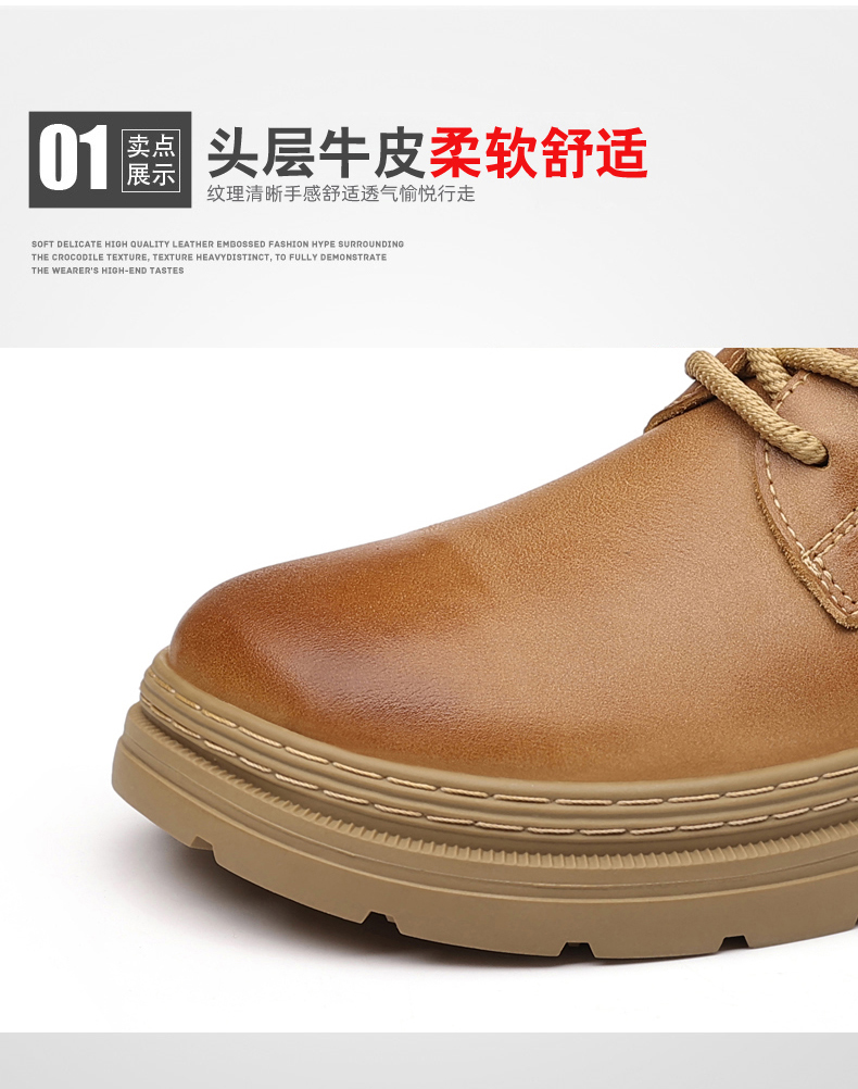 圣得西男鞋冬季新款男士青年户外潮流头层牛皮圆头系带工装鞋2462964110