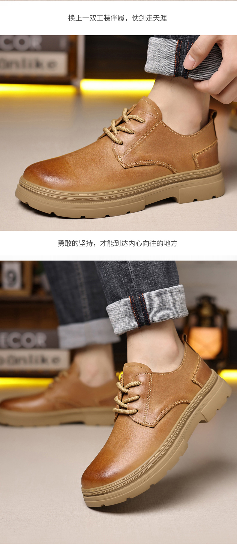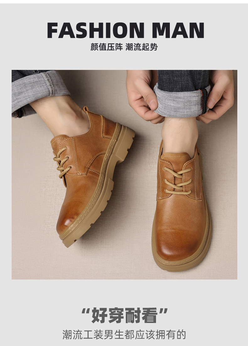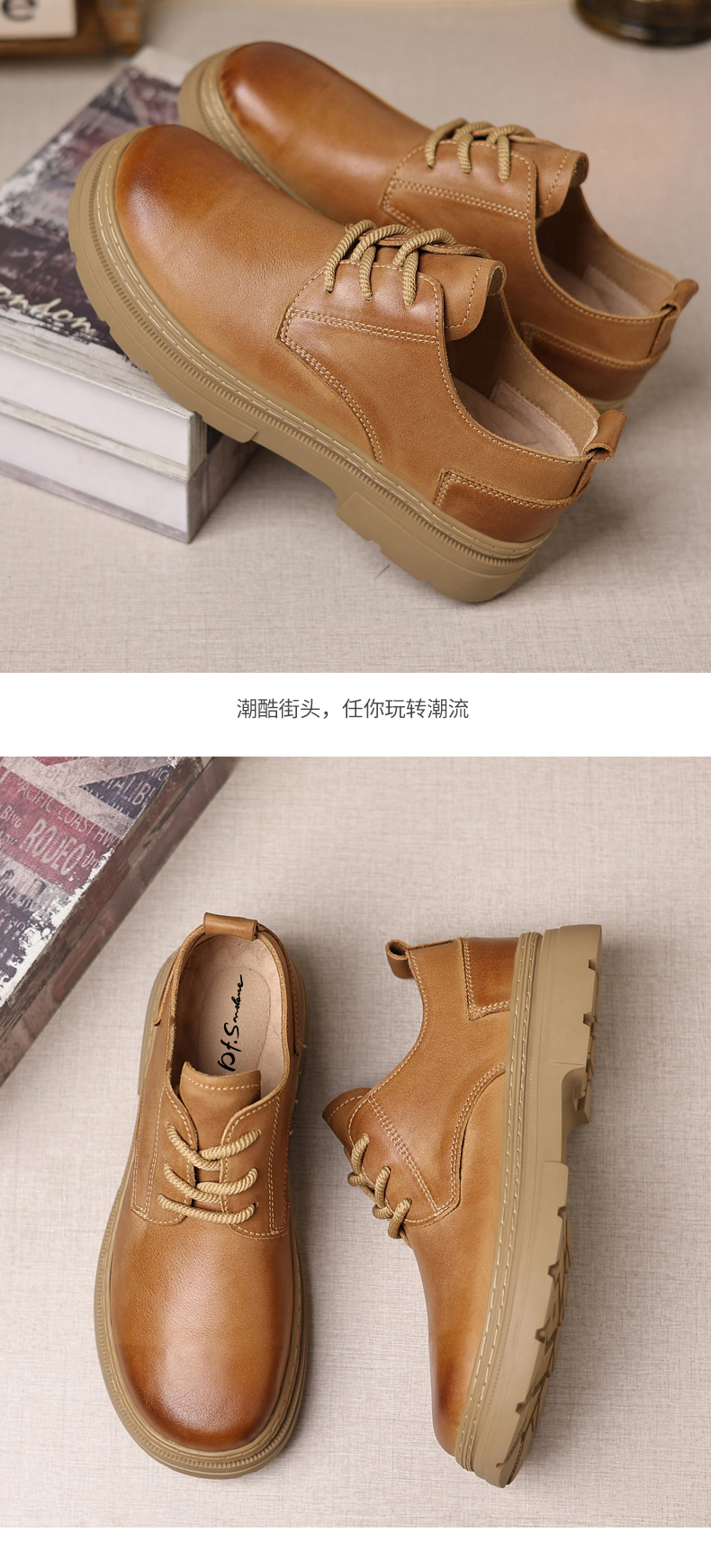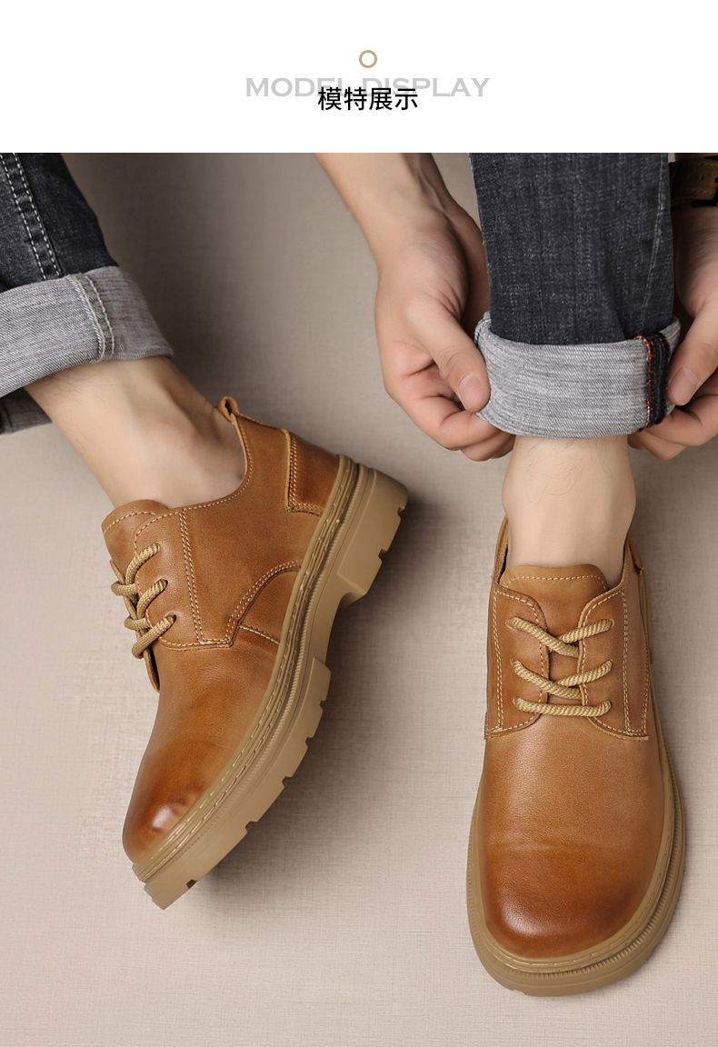圣得西圆头系带防滑耐穿复古商务质感休闲皮鞋男2452963059