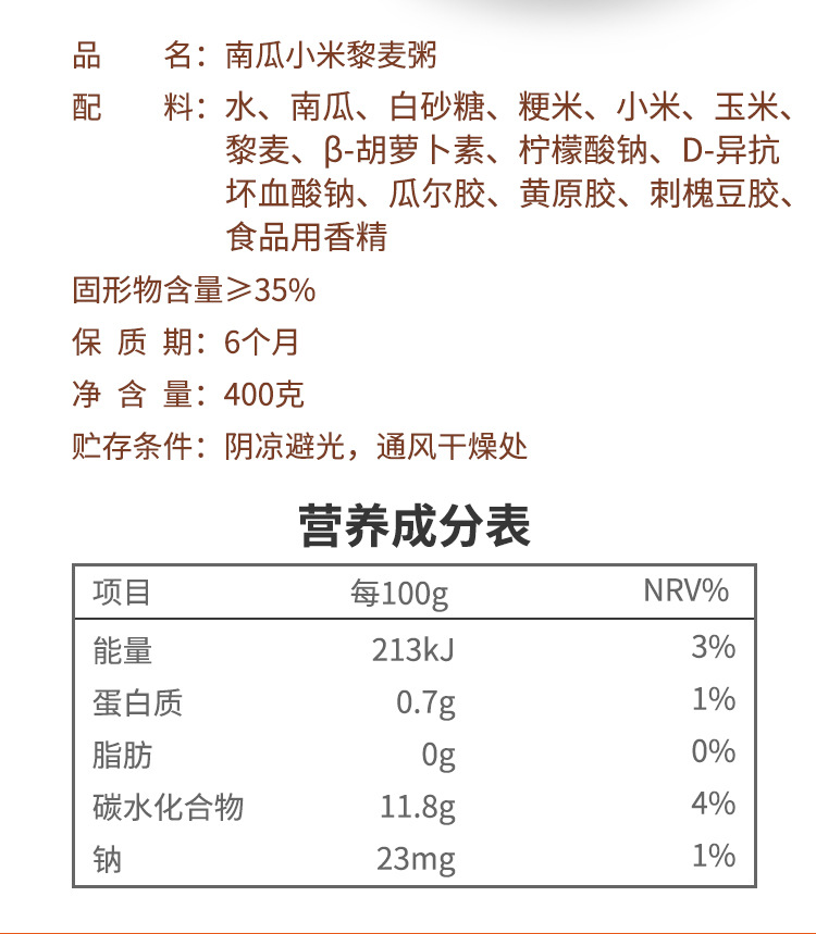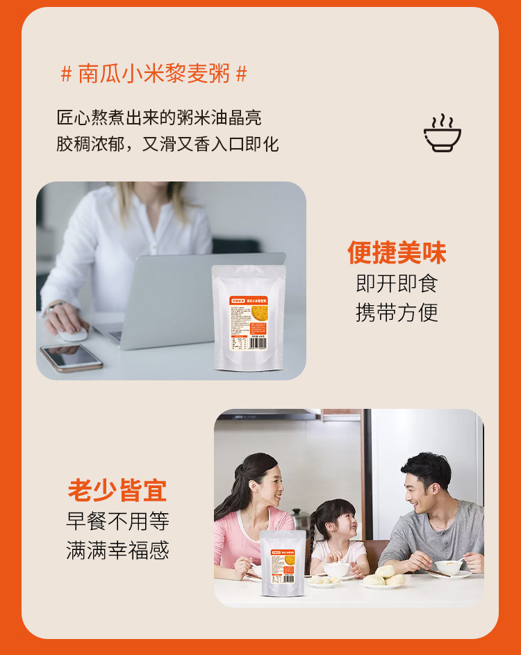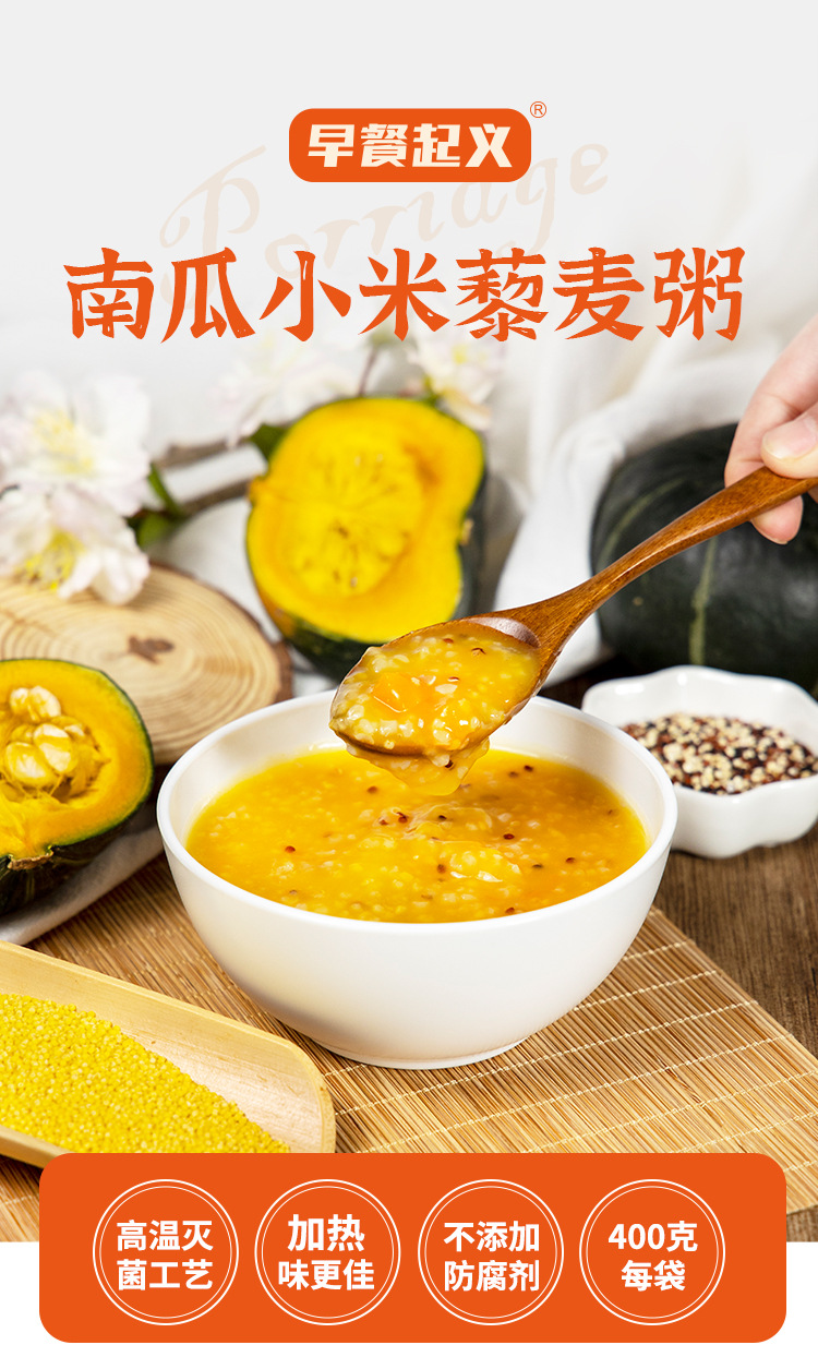 【第二件立减10元!南瓜小米藜麦粥】用心挑选好食材,粗细搭配, 膳食平衡营养丰富,全家都可享用,方便粥速食粥400克/袋L