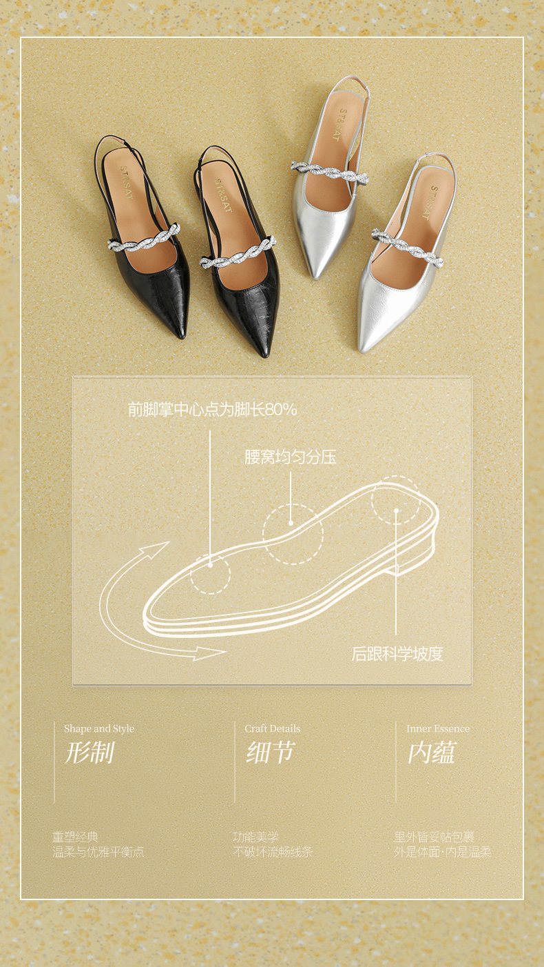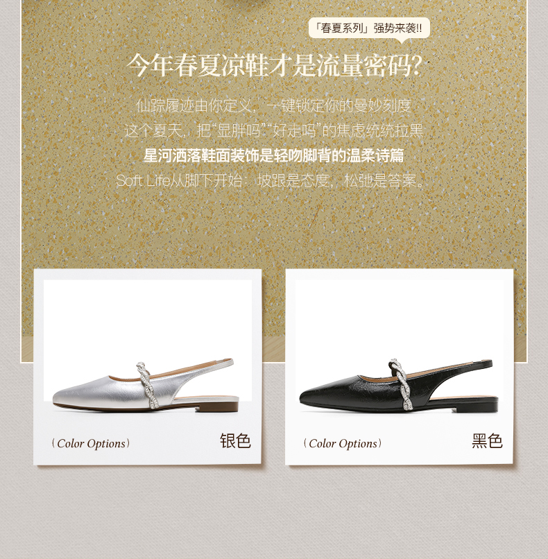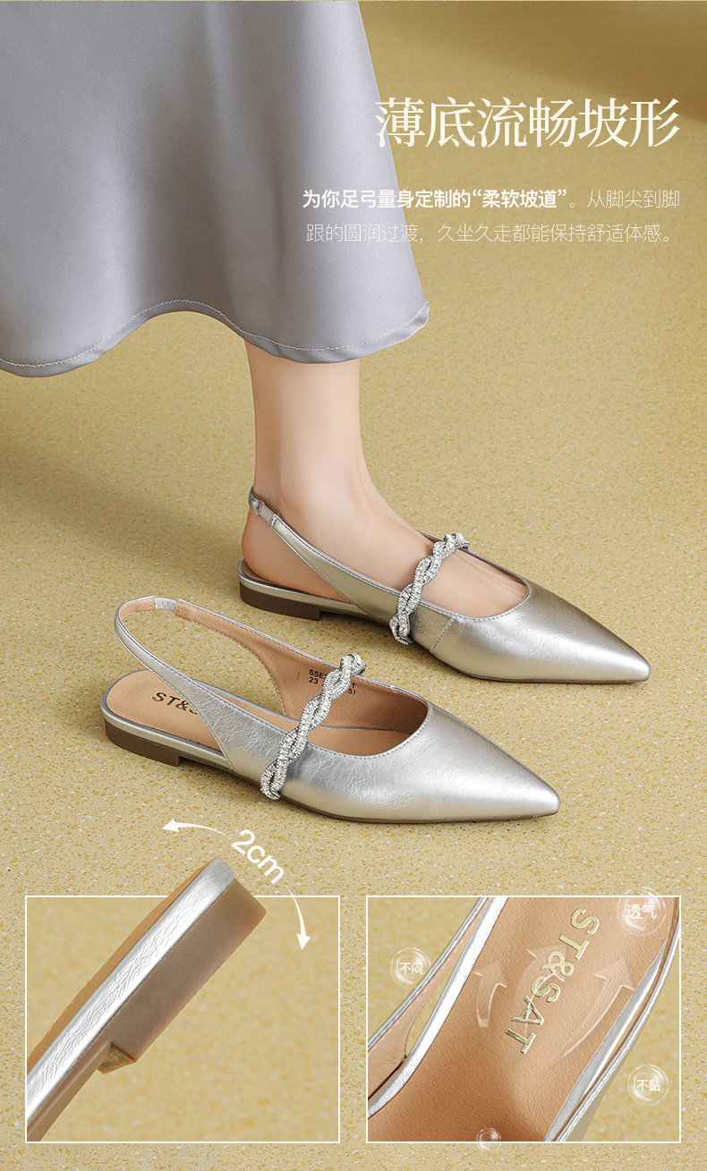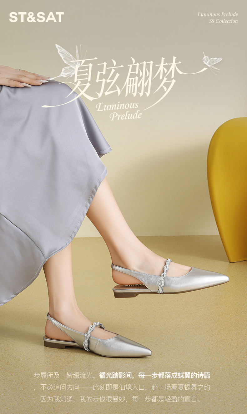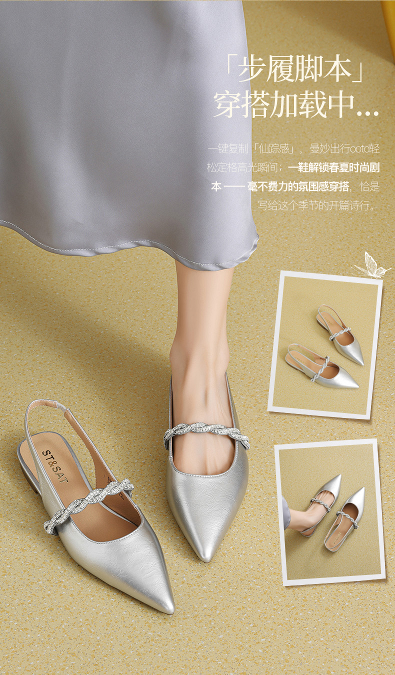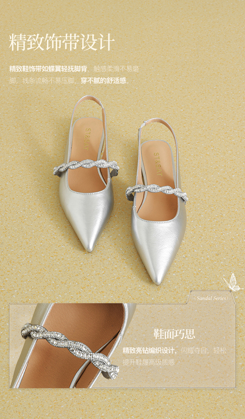 星期六26夏新款法式尖头气质钻带中后空SSE2114CNT