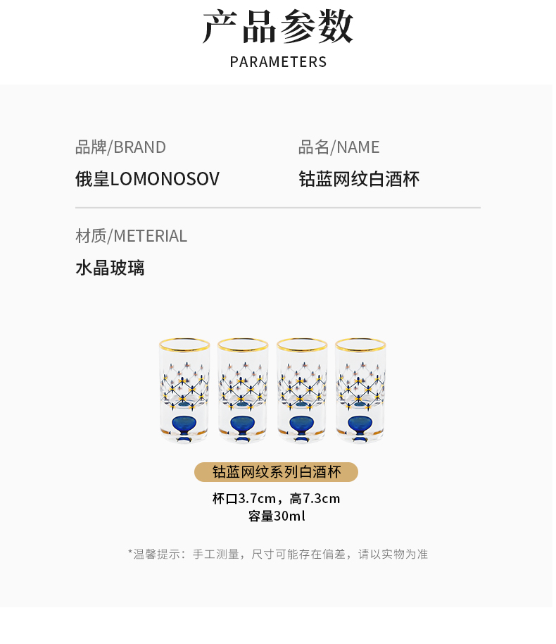 俄皇LOMONOSOV钴蓝网纹系列酒杯礼盒