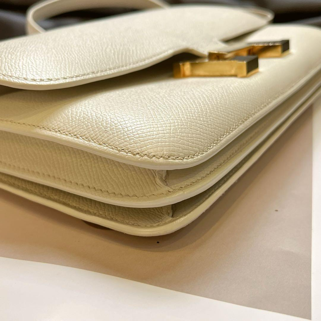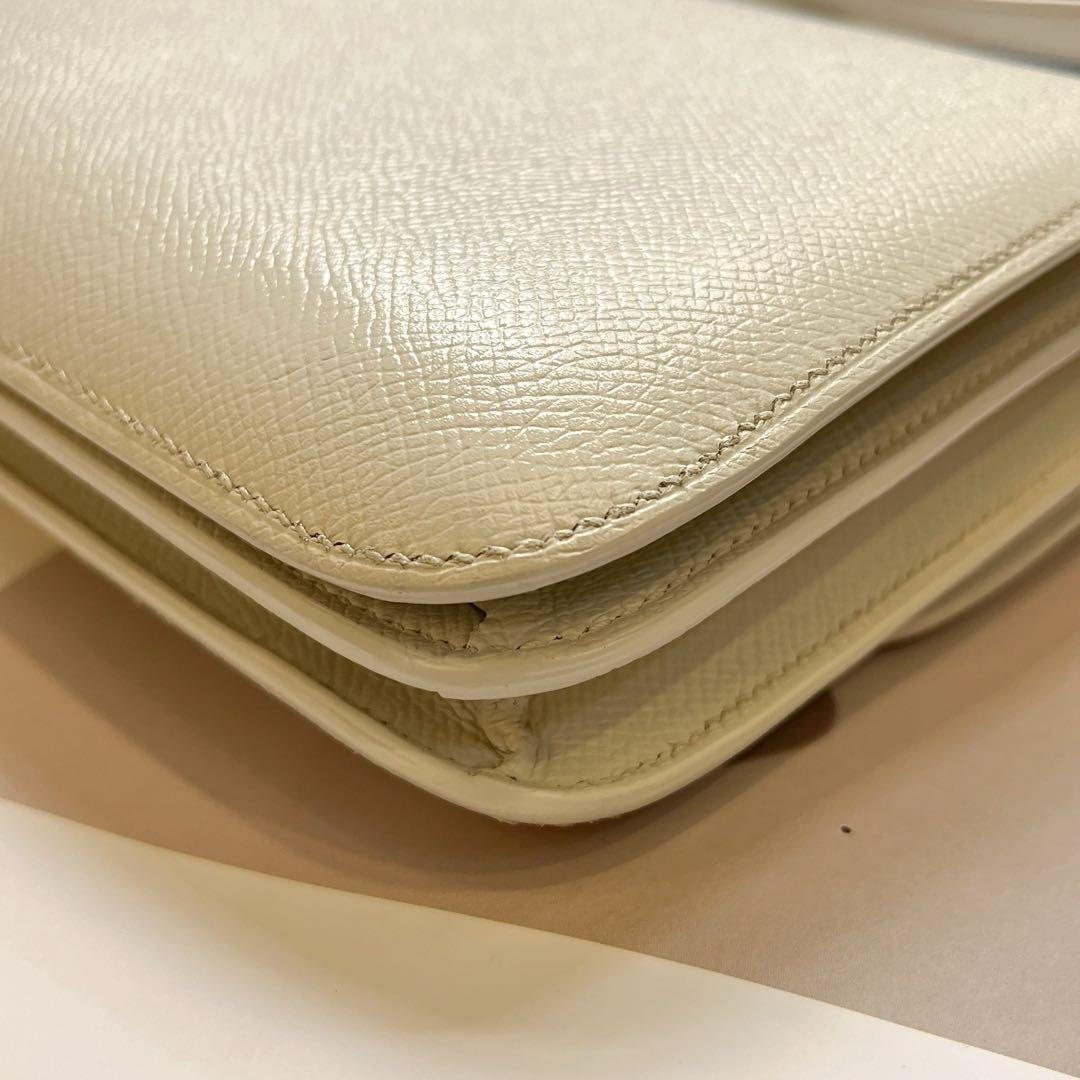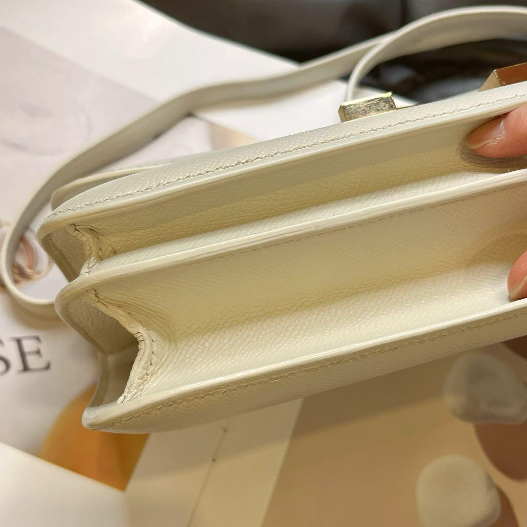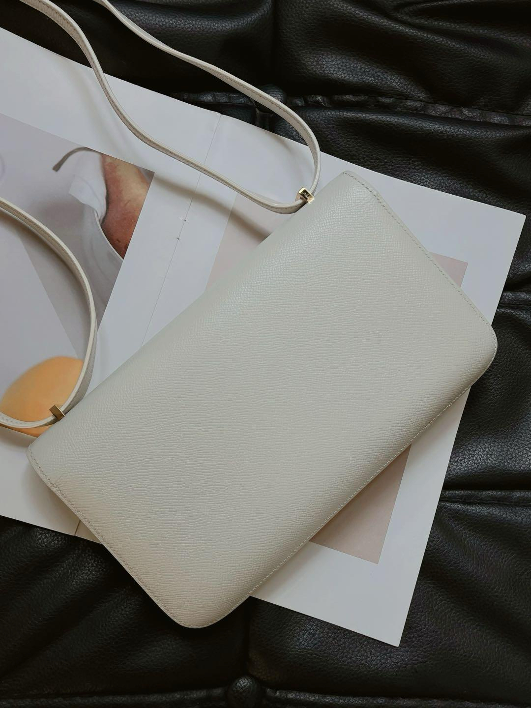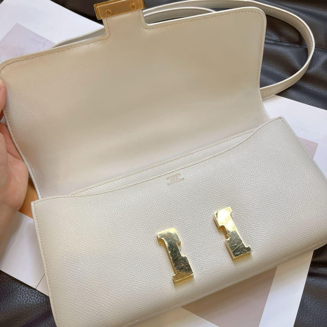 【商品詳情】正品二手 爱马仕 elan 康康26 横版 白金 E皮 斜挎包🥪 95新 26x15 方块R刻。logo五金有轻微使用摩擦感。整包护理过状态好