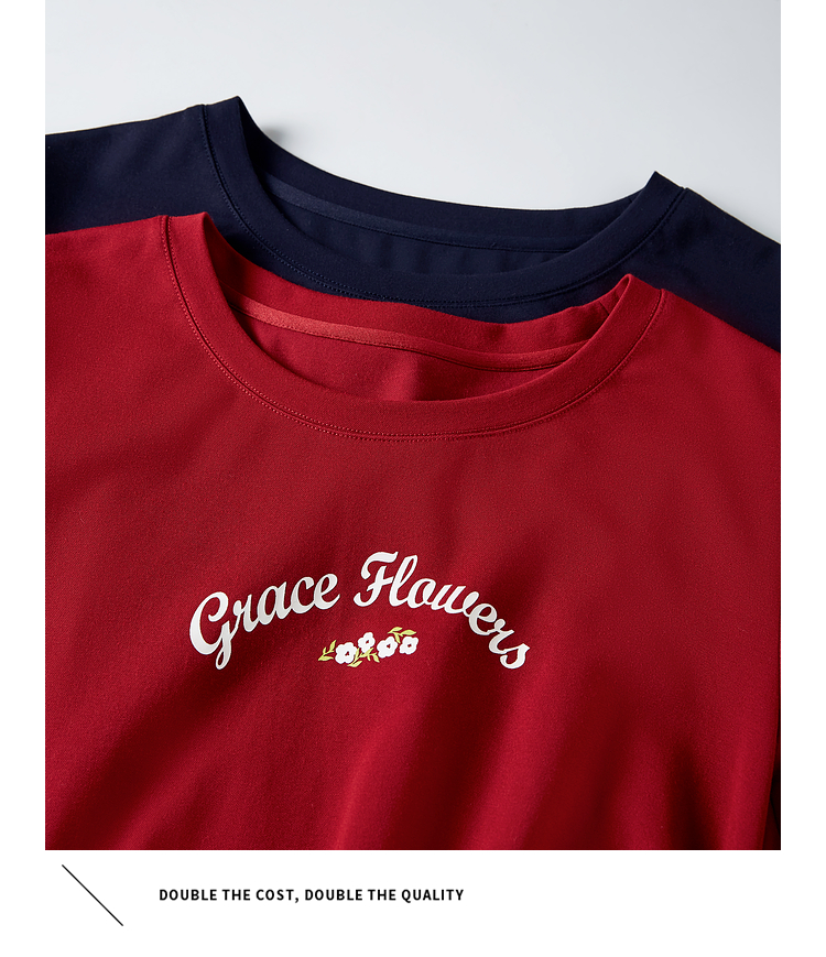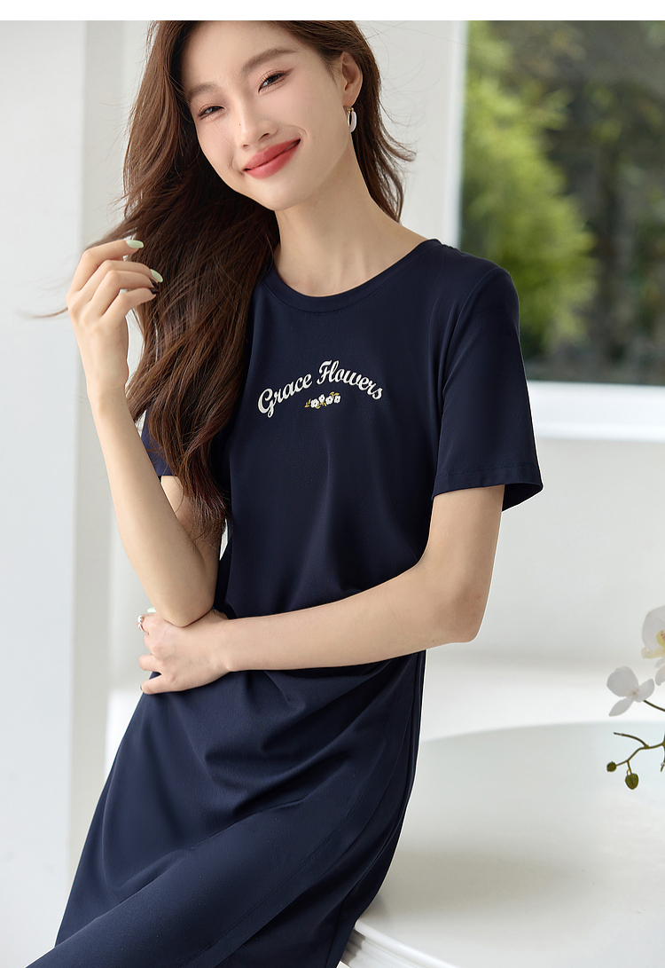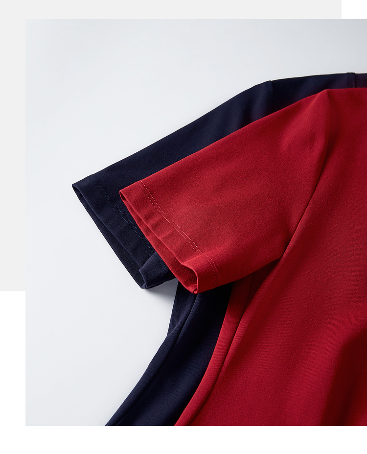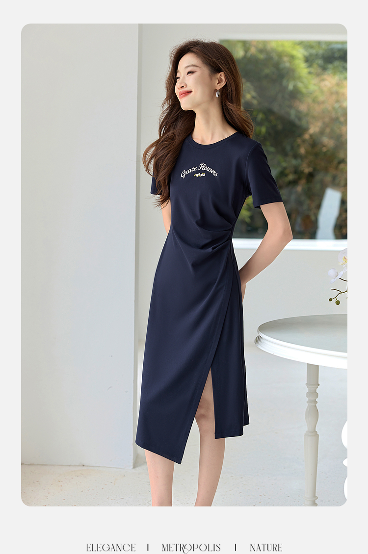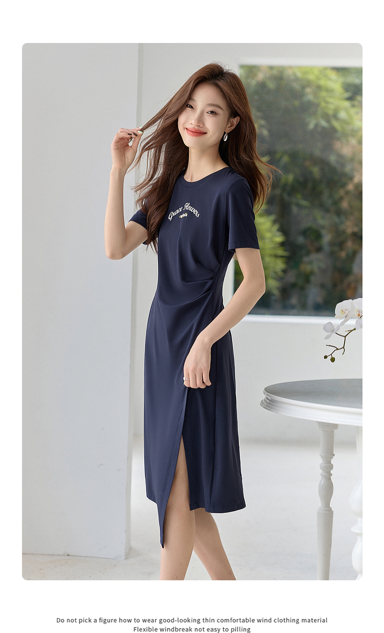【专属特价】熙世界休闲红色连衣裙夏天新款美式印花短袖修身显瘦开叉T恤裙