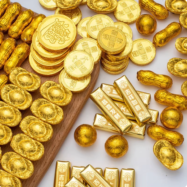 500g/袋 巧克力元宝/花生/金条/金球/金币 代可可脂巧克力装饰新年零食