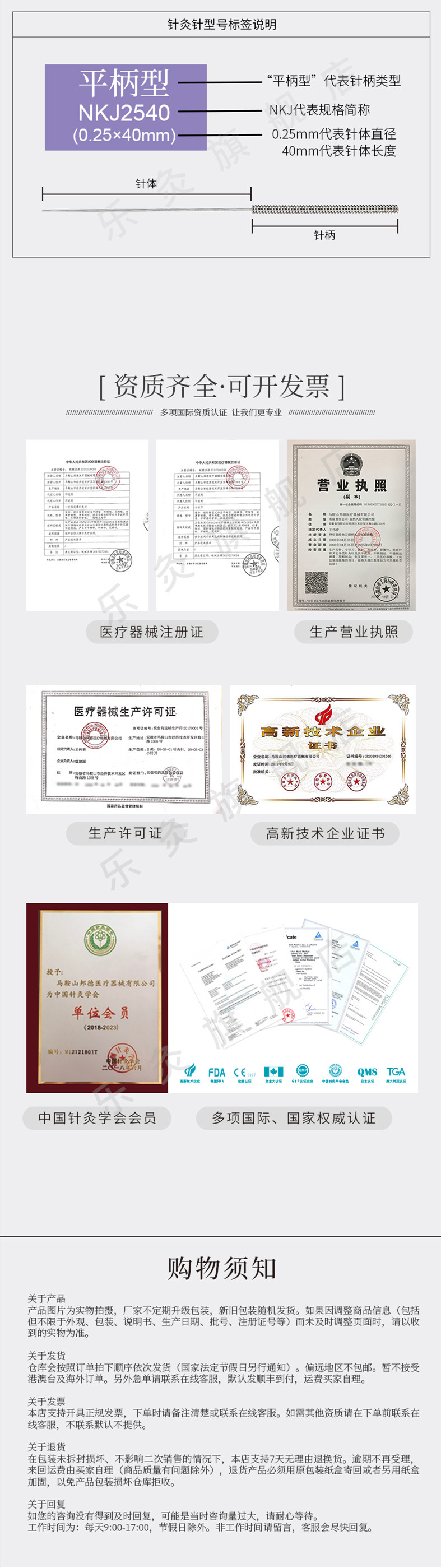 一次性无菌针灸针供具有资格的专业针灸医生使用。