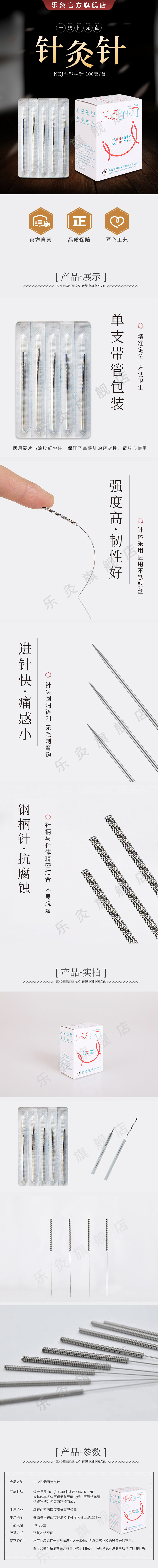 【10盒1000支】乐灸牌一次性无菌针灸针 平柄型 NKJ100支/盒