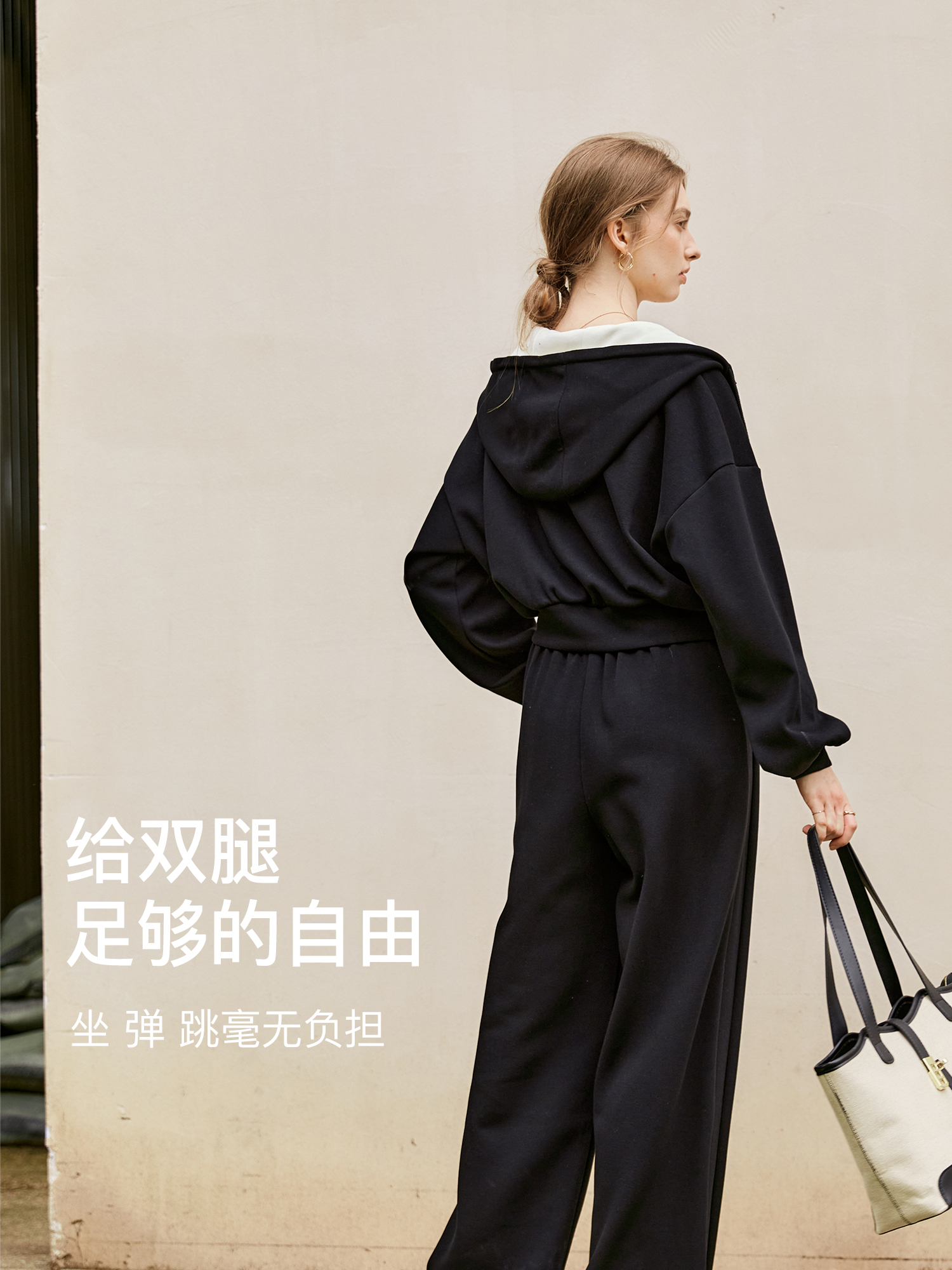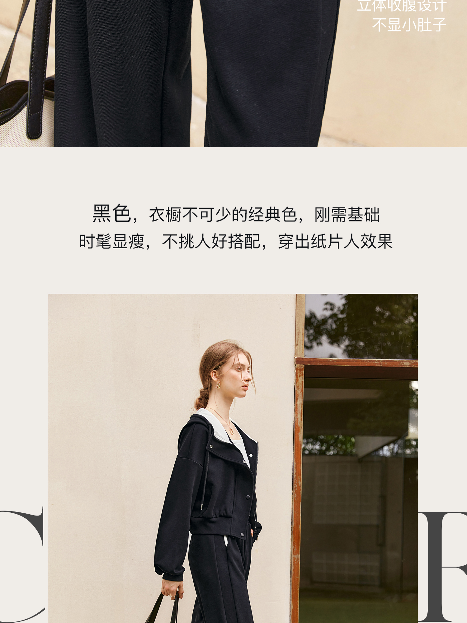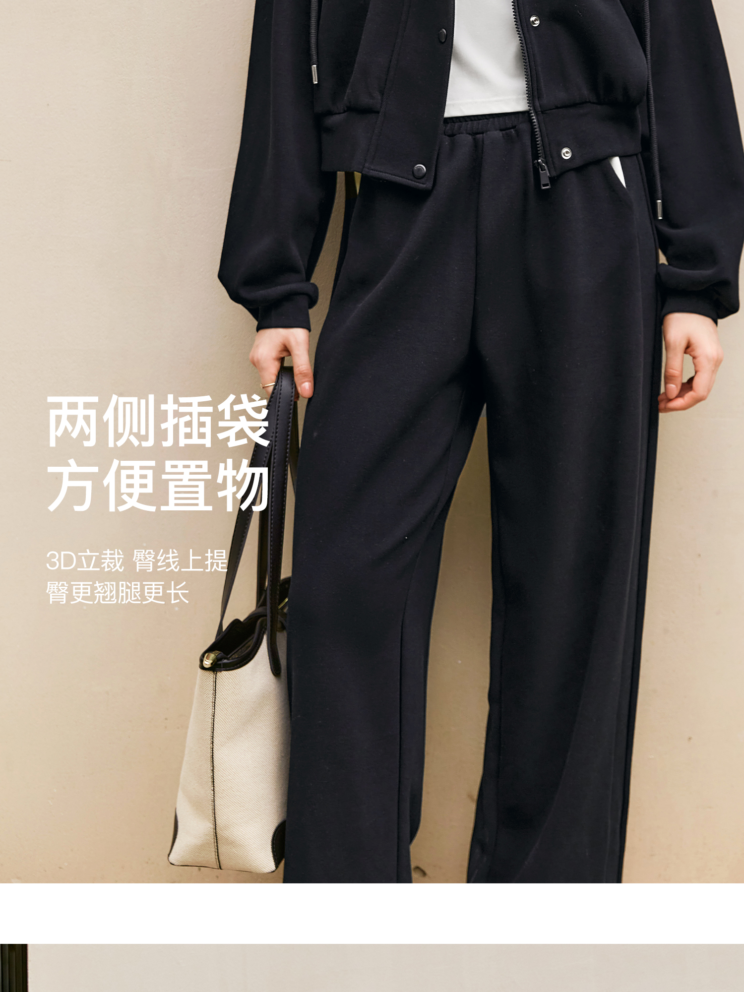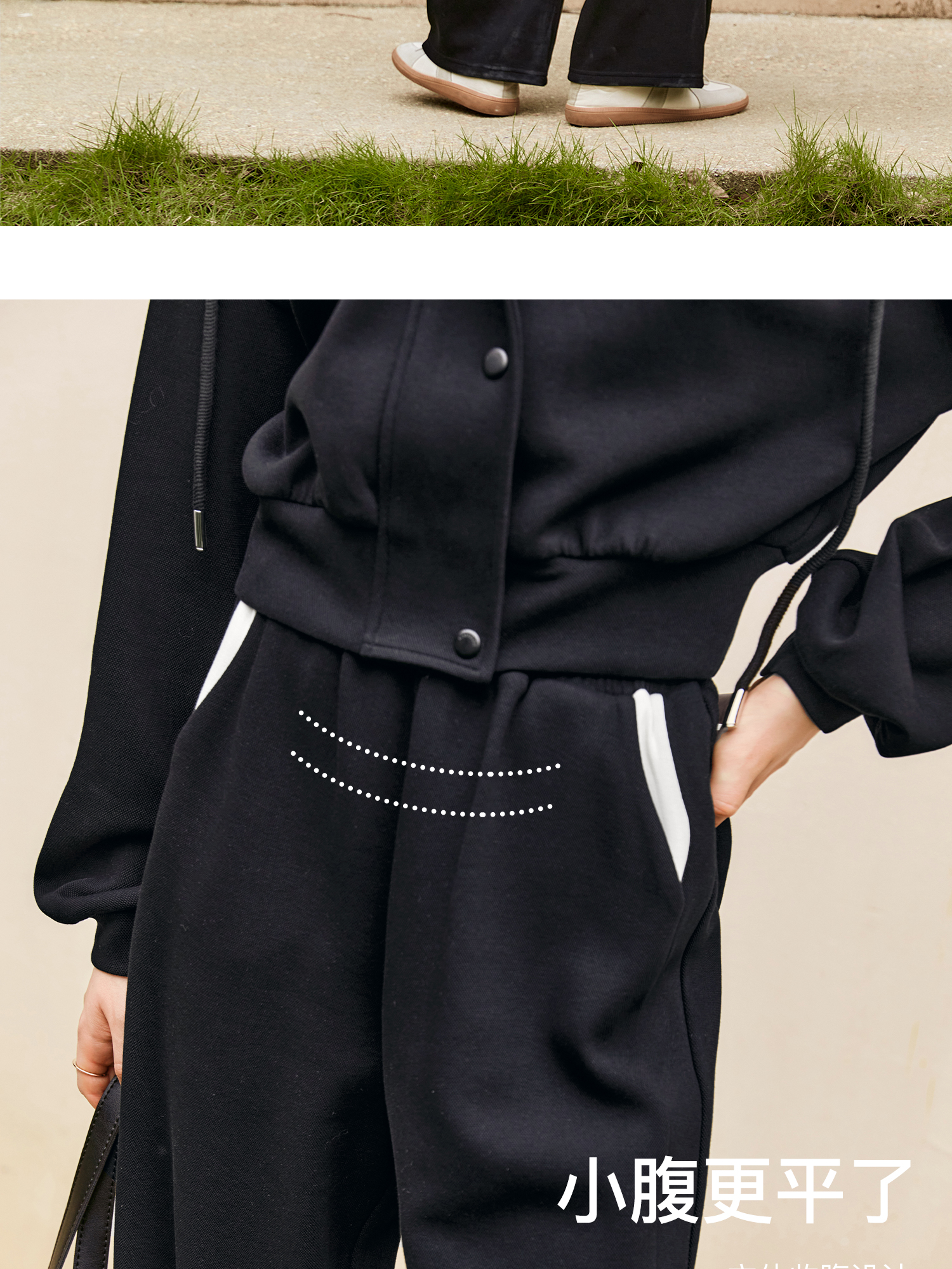 OLrain欧芮儿时尚轻运动黑色套装两件套女秋季2024年新款连帽休闲