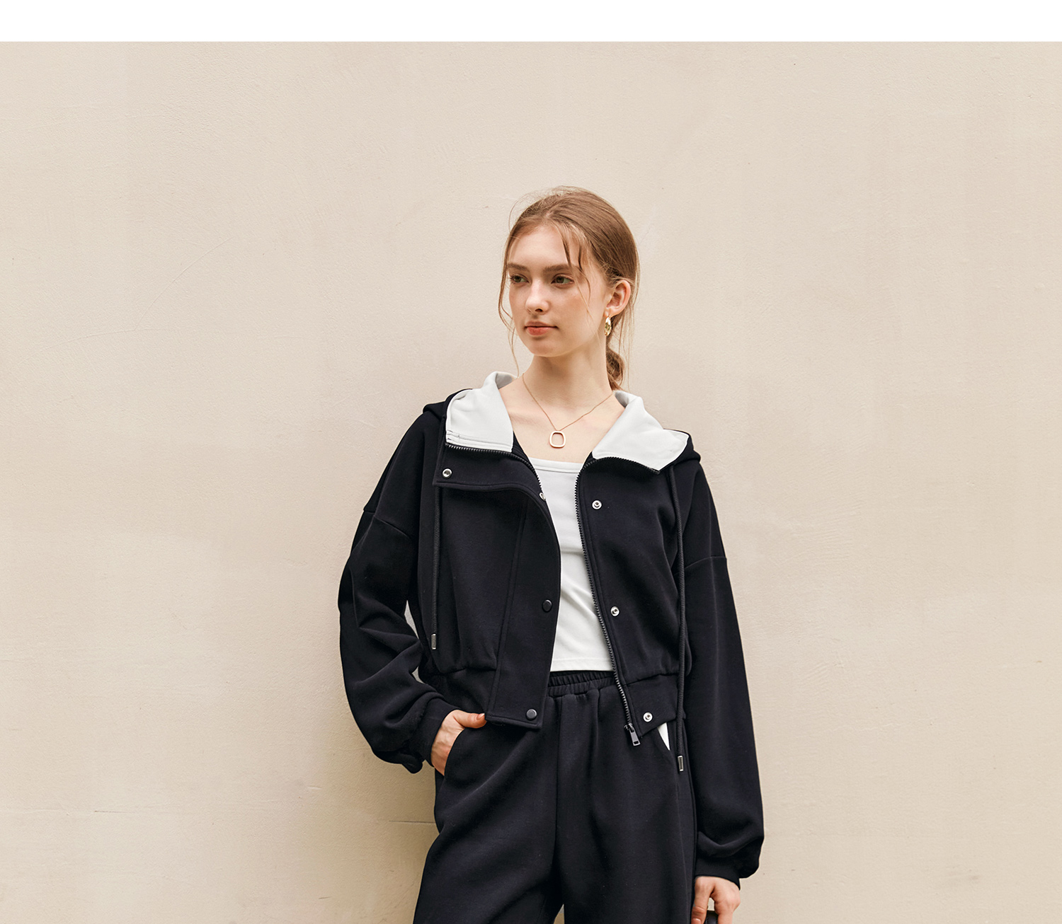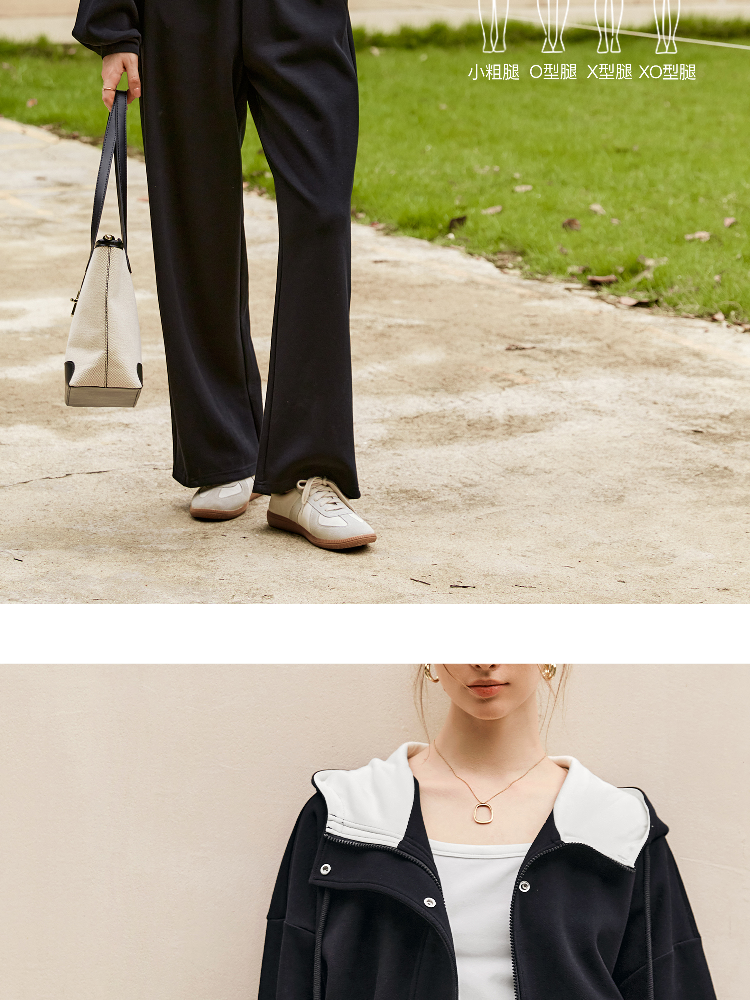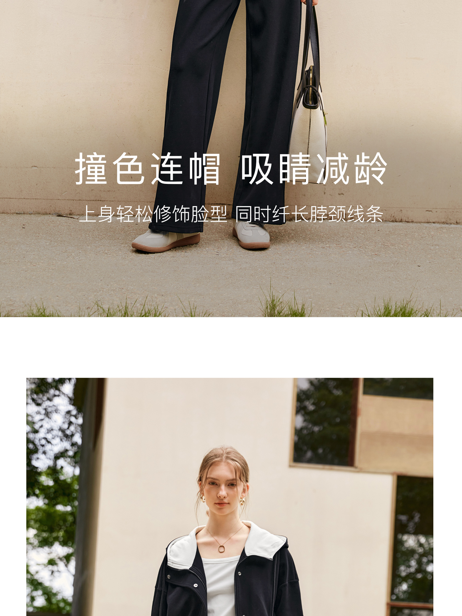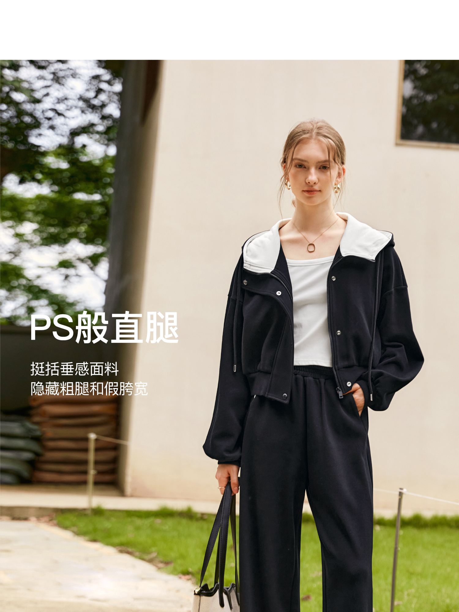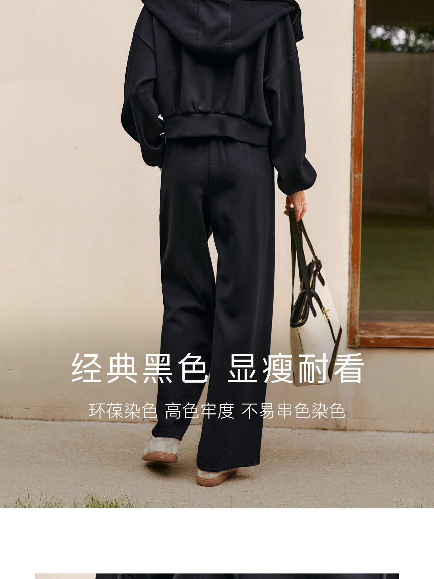 OLrain欧芮儿时尚轻运动黑色套装两件套女秋季2024年新款连帽休闲