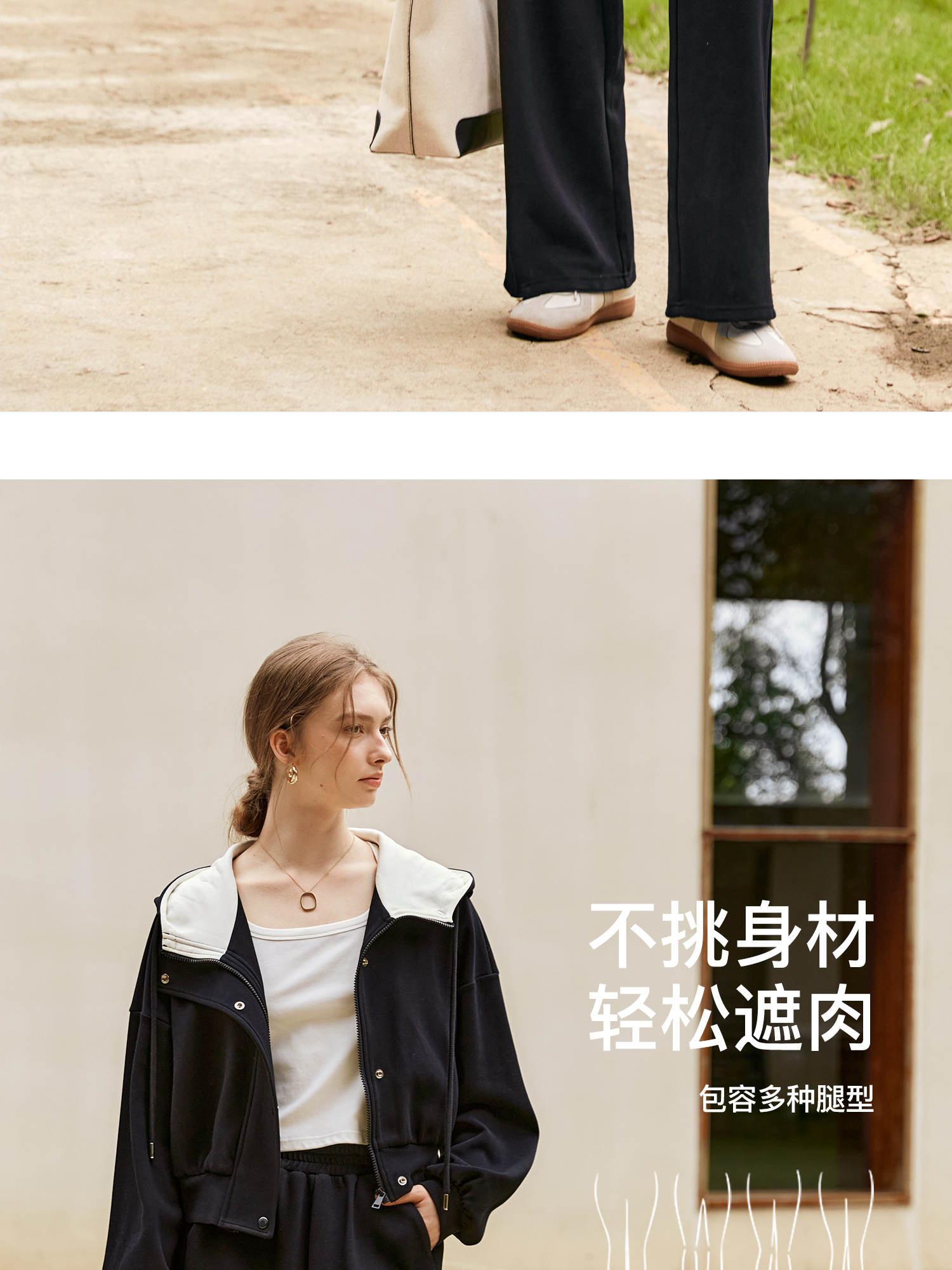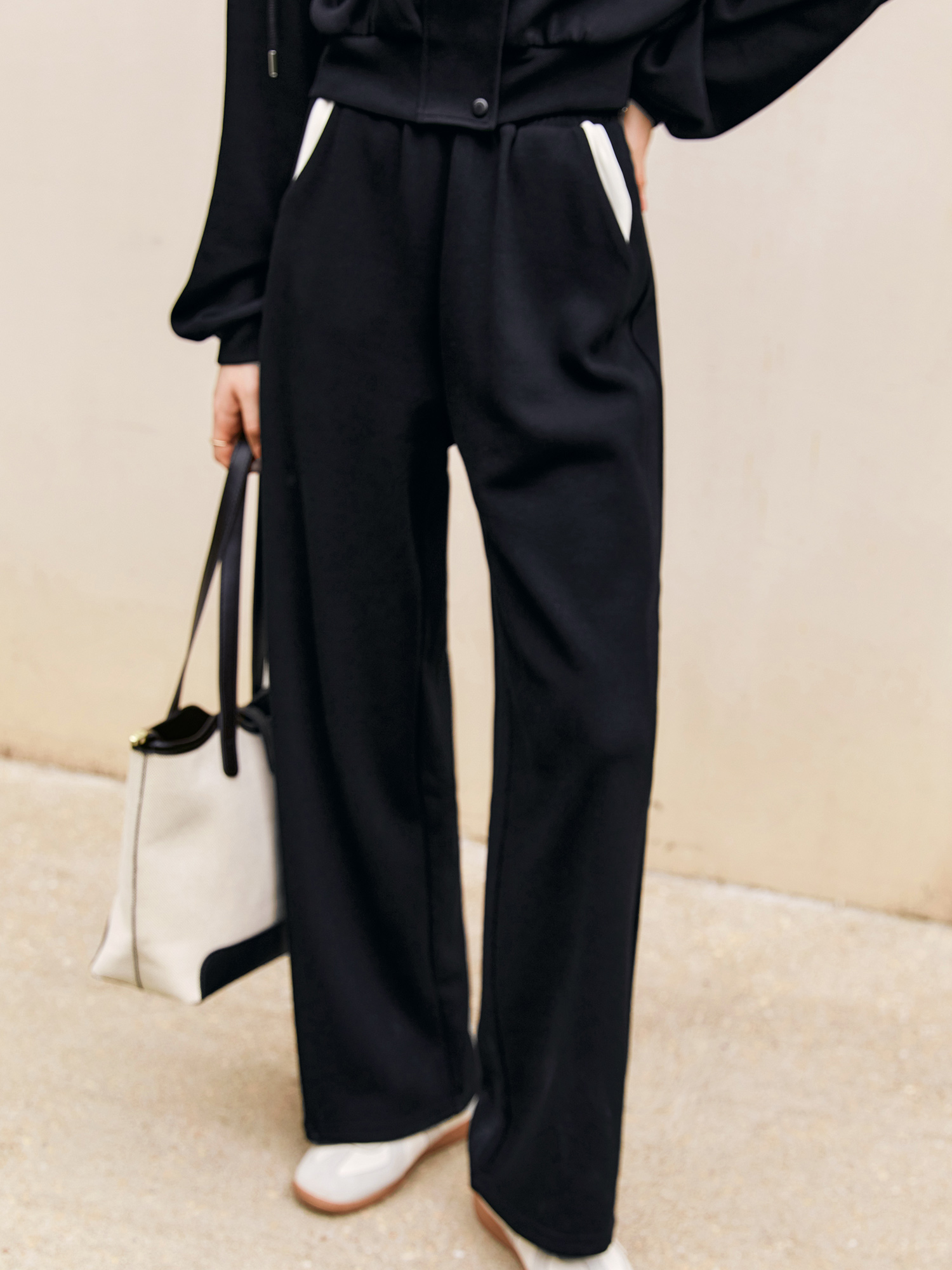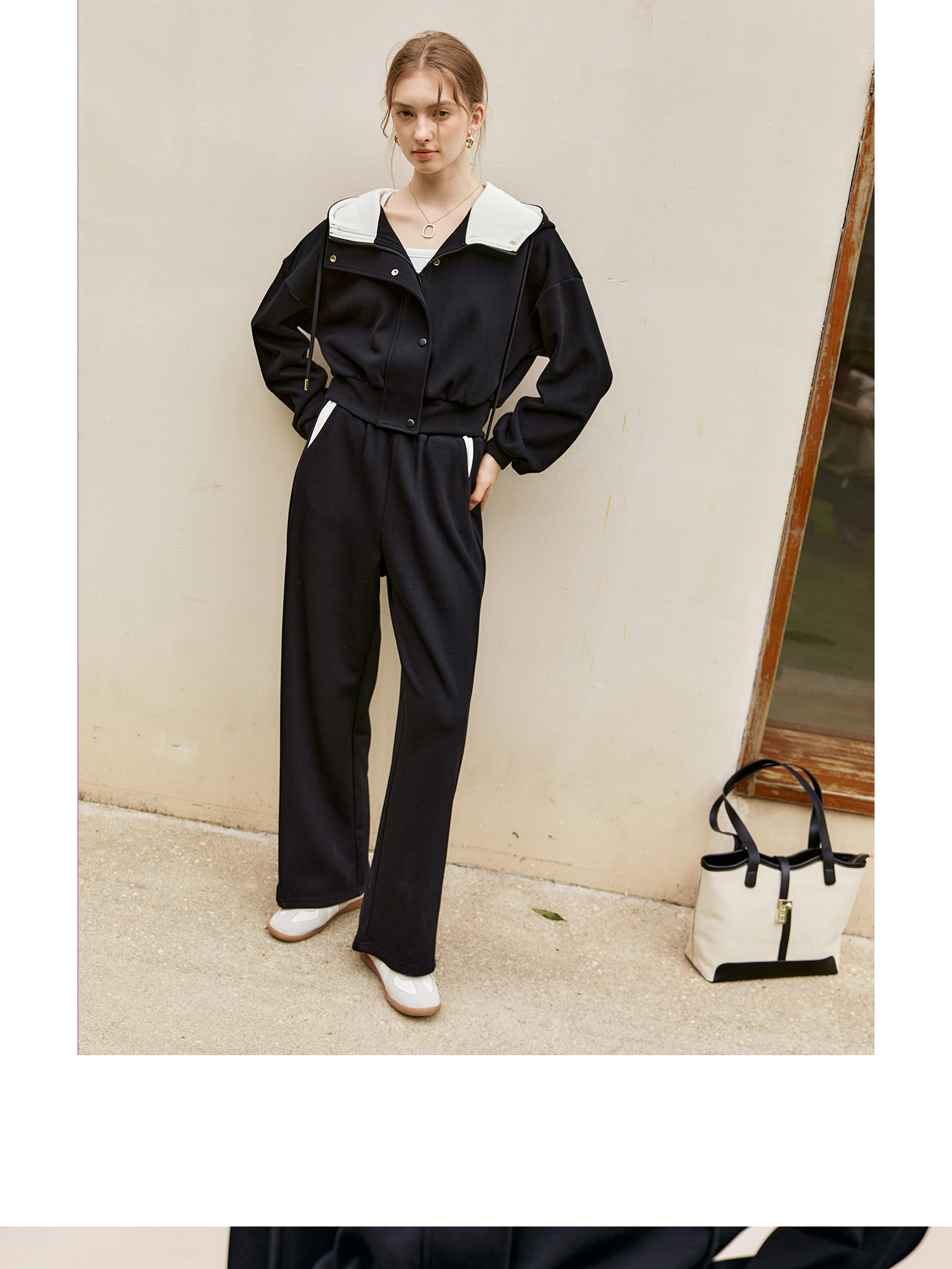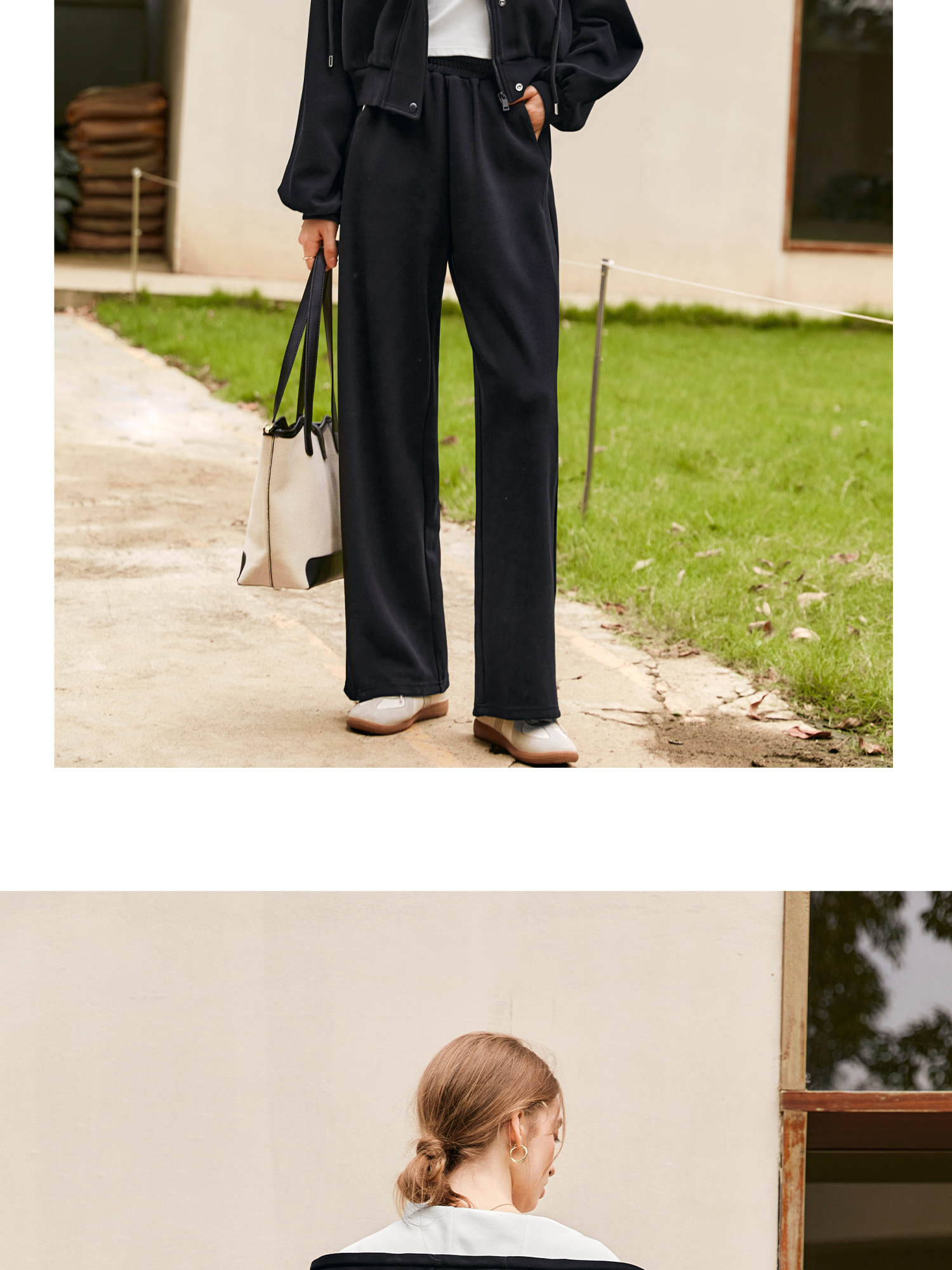 OLrain欧芮儿时尚轻运动黑色套装两件套女秋季2024年新款连帽休闲